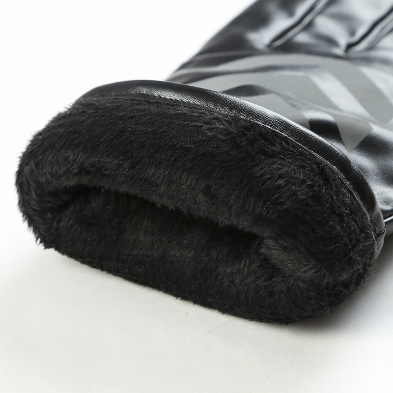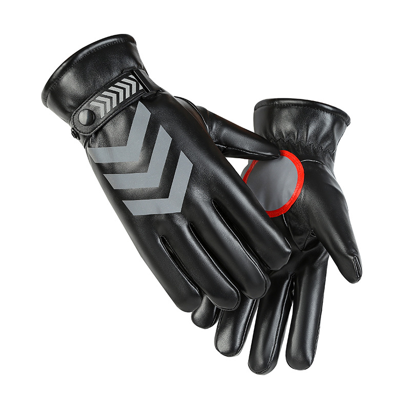 冬季PU皮保暖手套男士防寒加绒加厚夜间指挥反光条手套防风棉手套