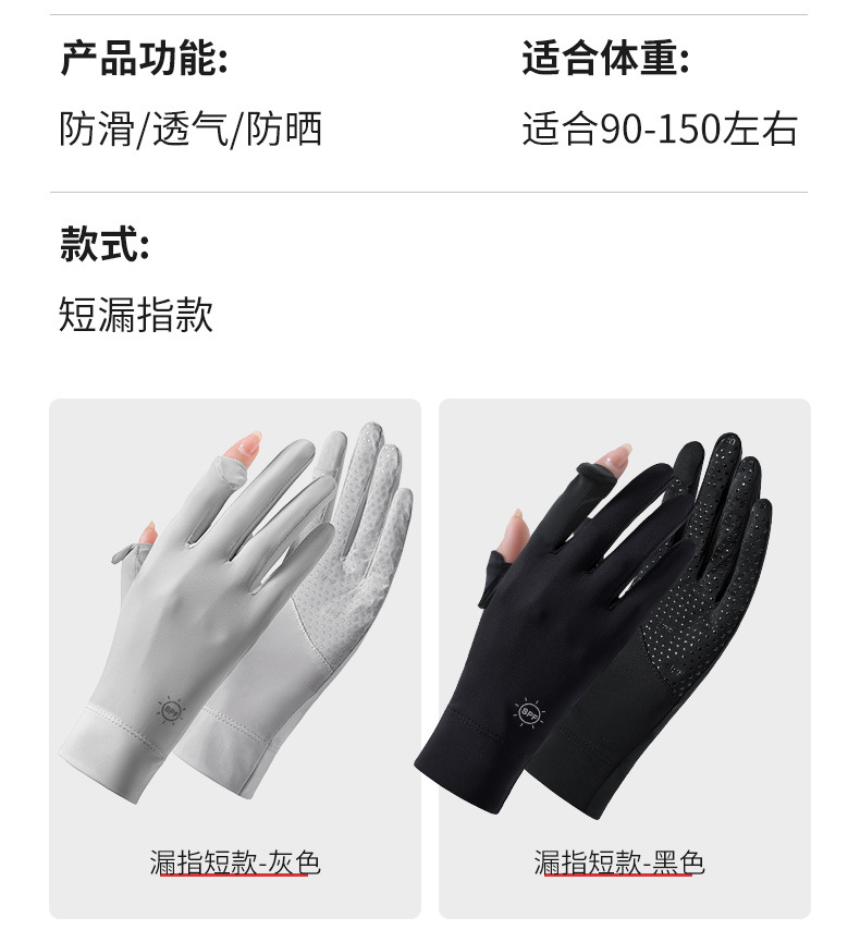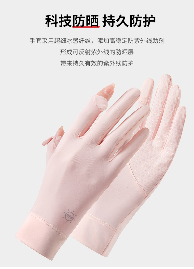 防晒手套夏季透气薄款冰丝防紫外线触屏骑行户外运动防滑手套女