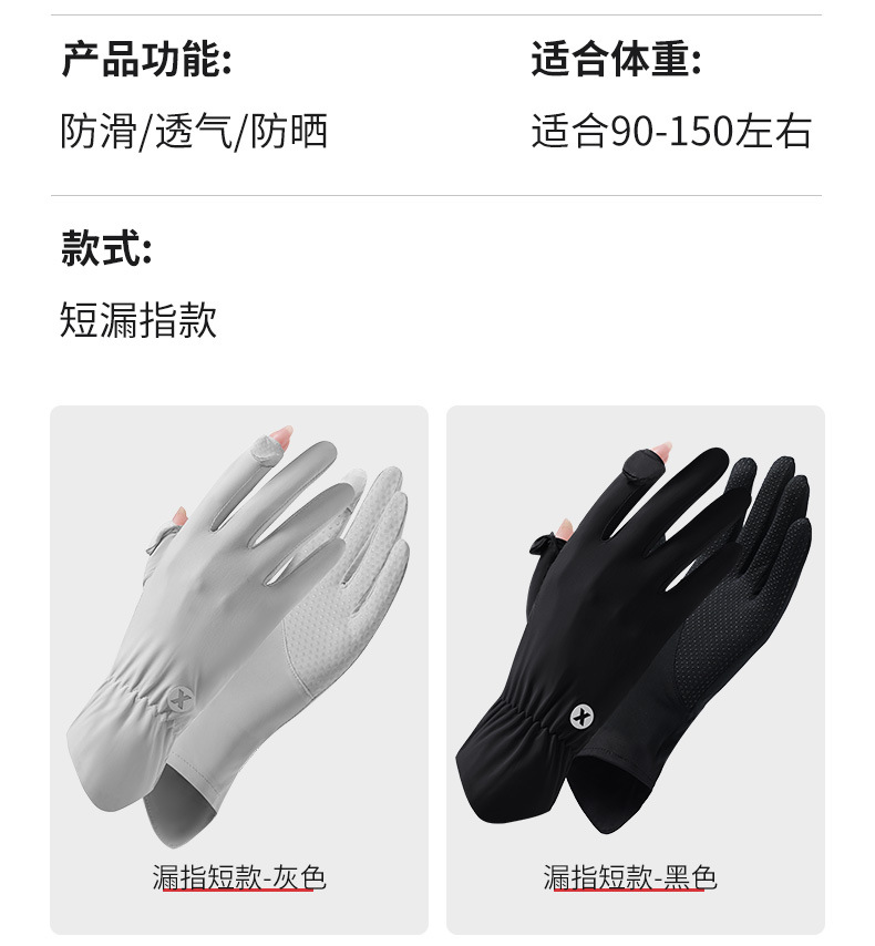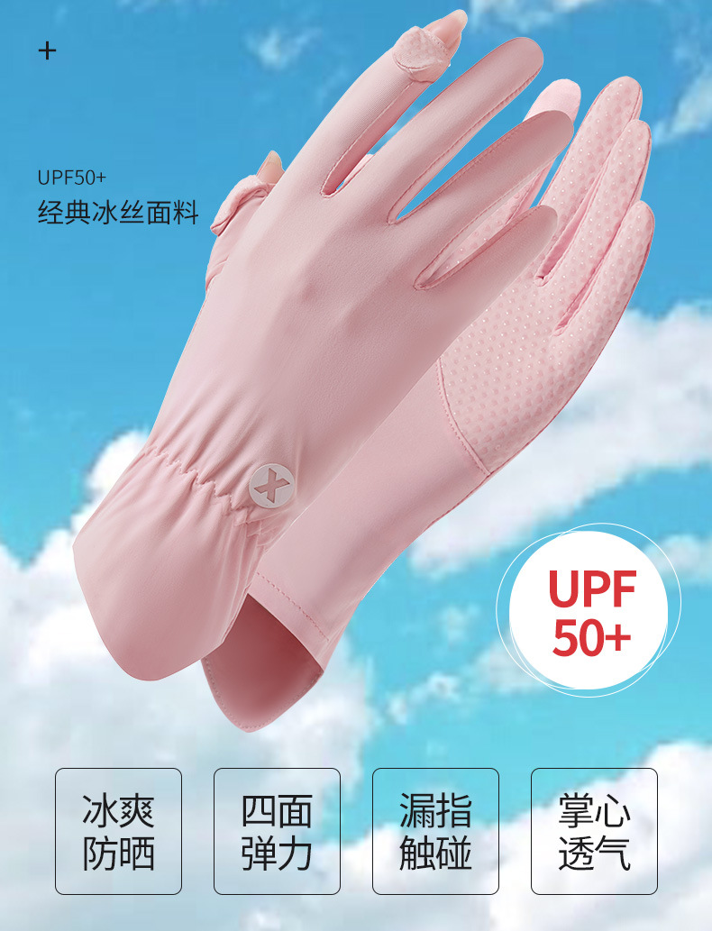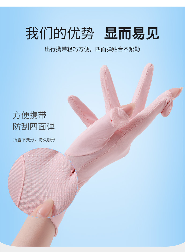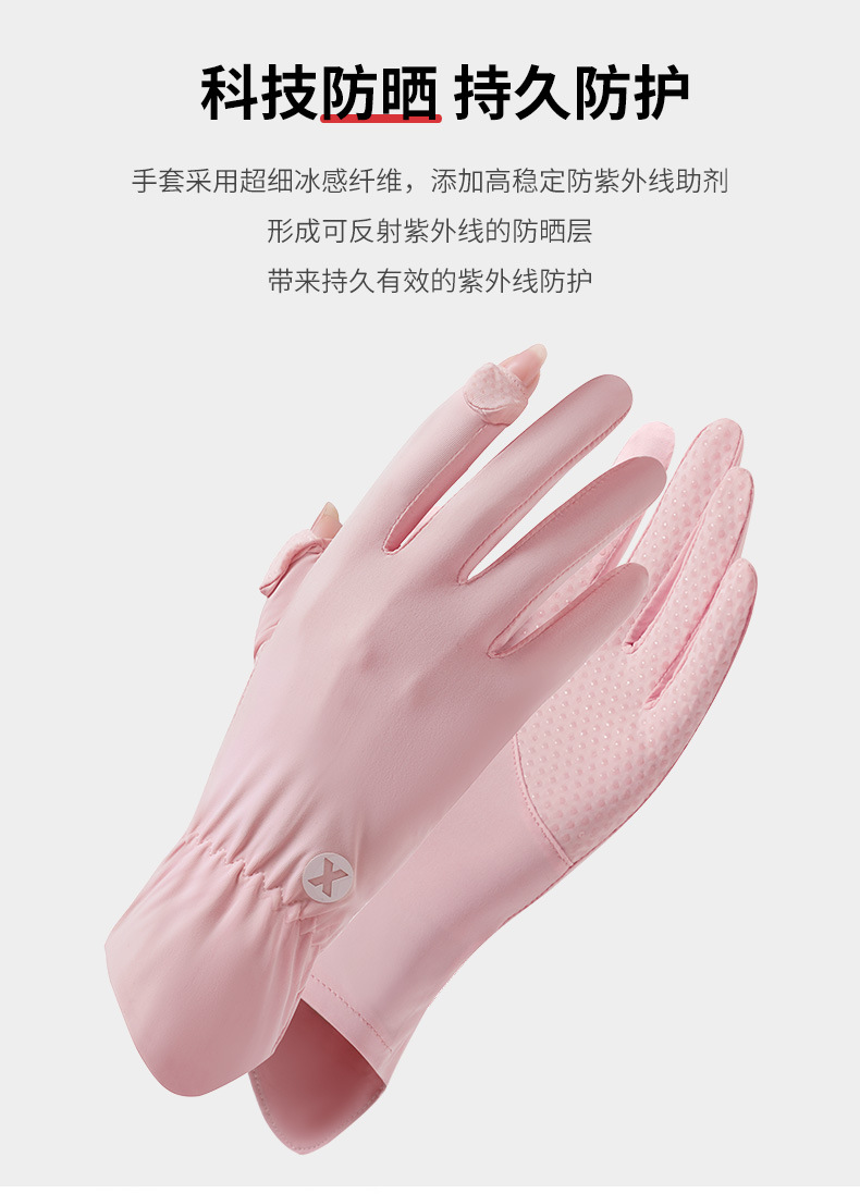 防晒手套女士夏季凉感户外防紫外线薄款防滑运动骑行冰丝漏指手套
