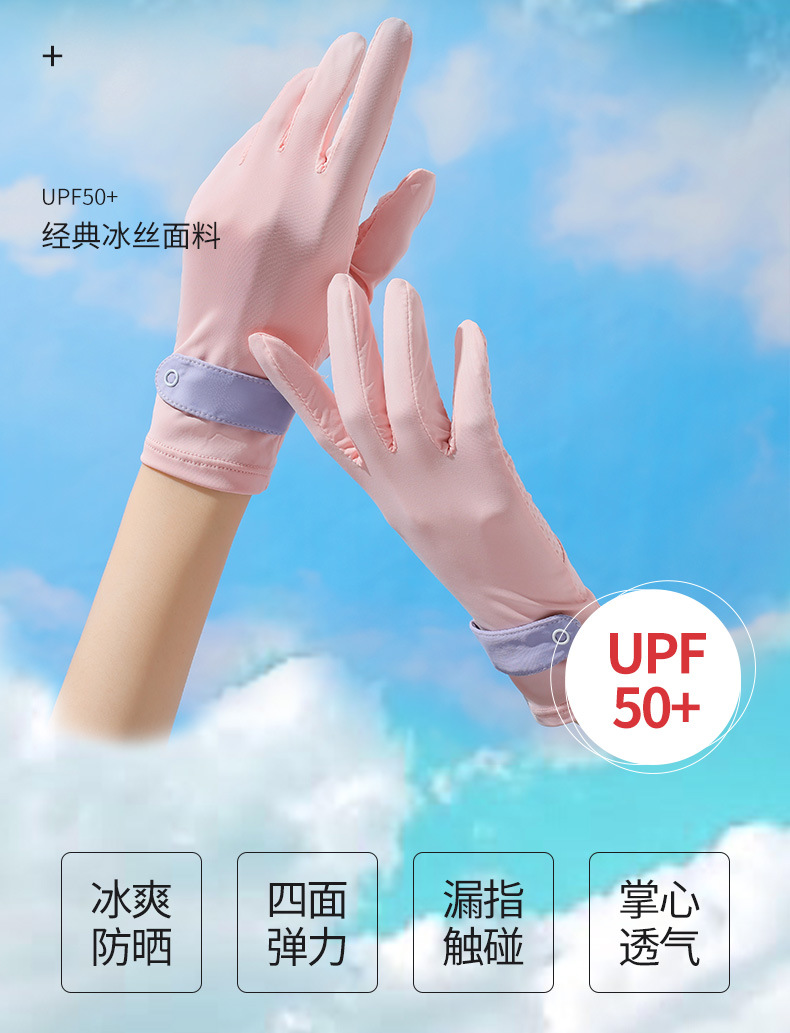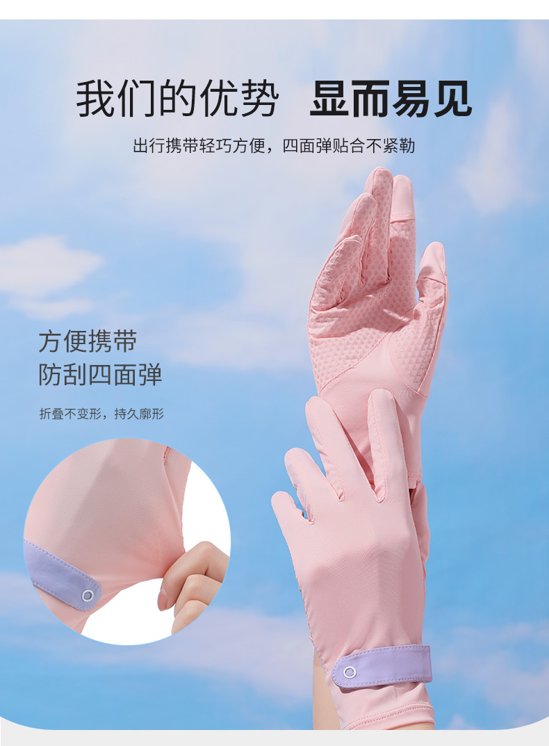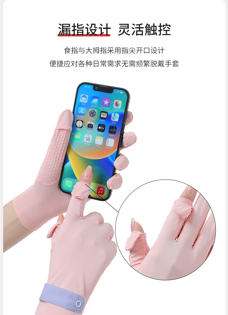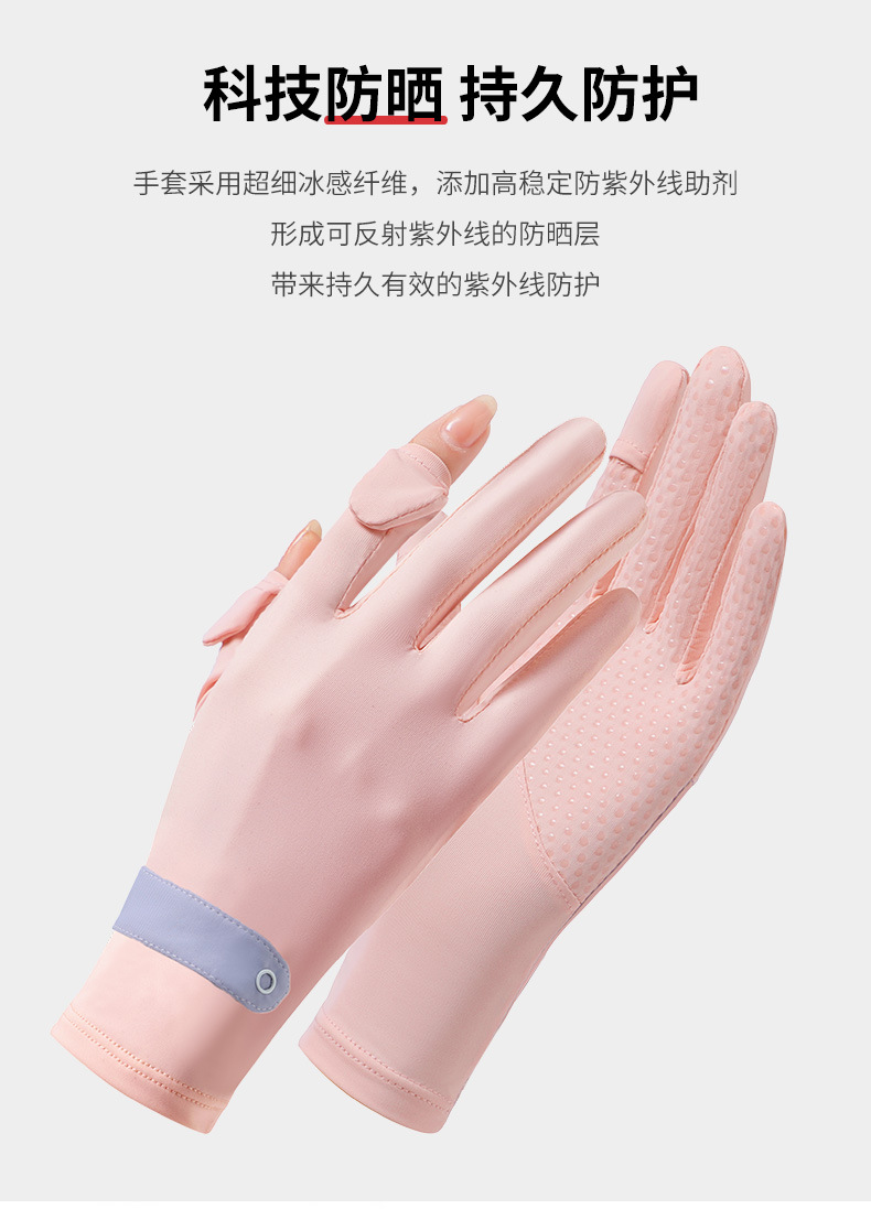 户外冰丝防晒手套女夏凉感防晒薄款透气防滑运动骑行纯色漏指手套