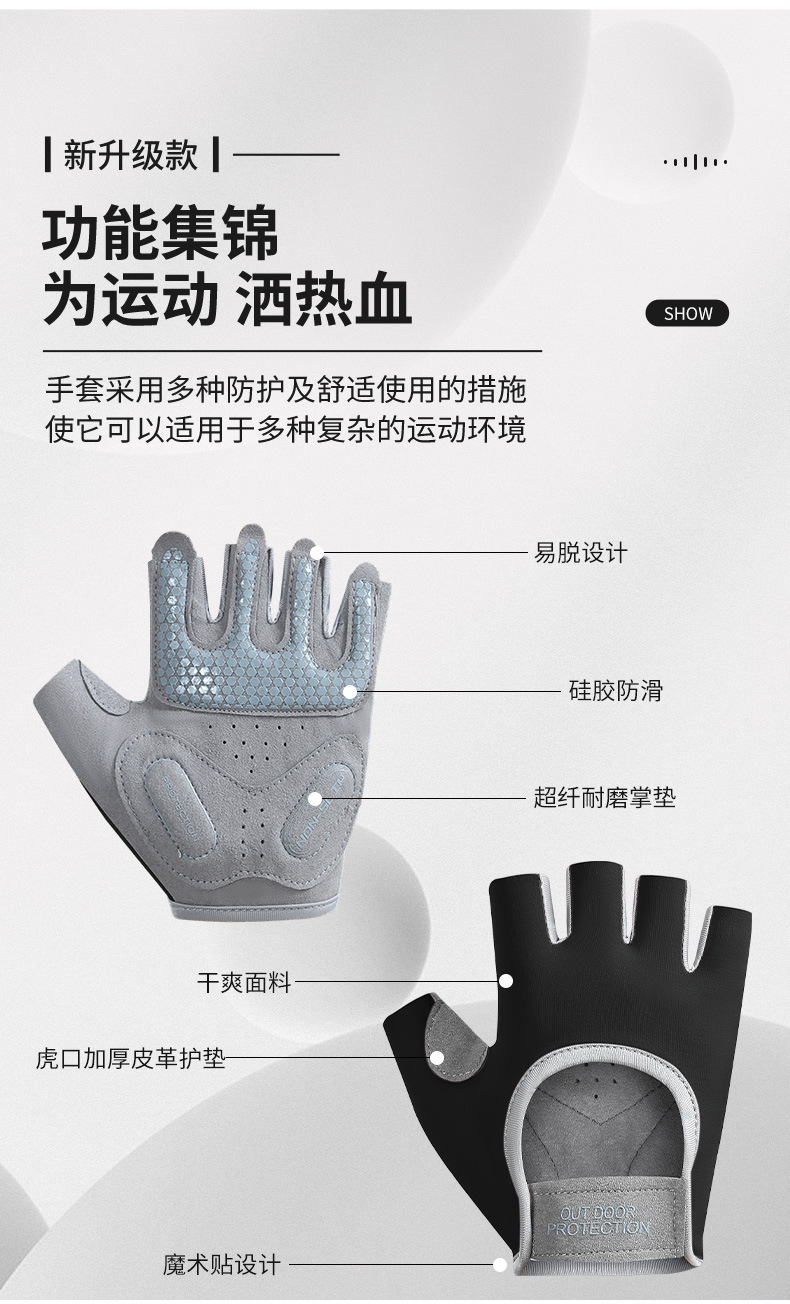 骑行手套男女户外运动防晒骑行登山器械健身耐磨防滑钓鱼半指手套