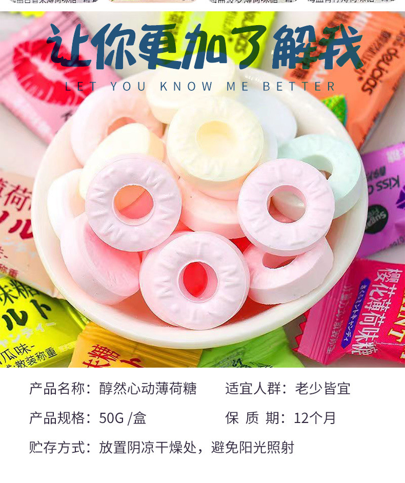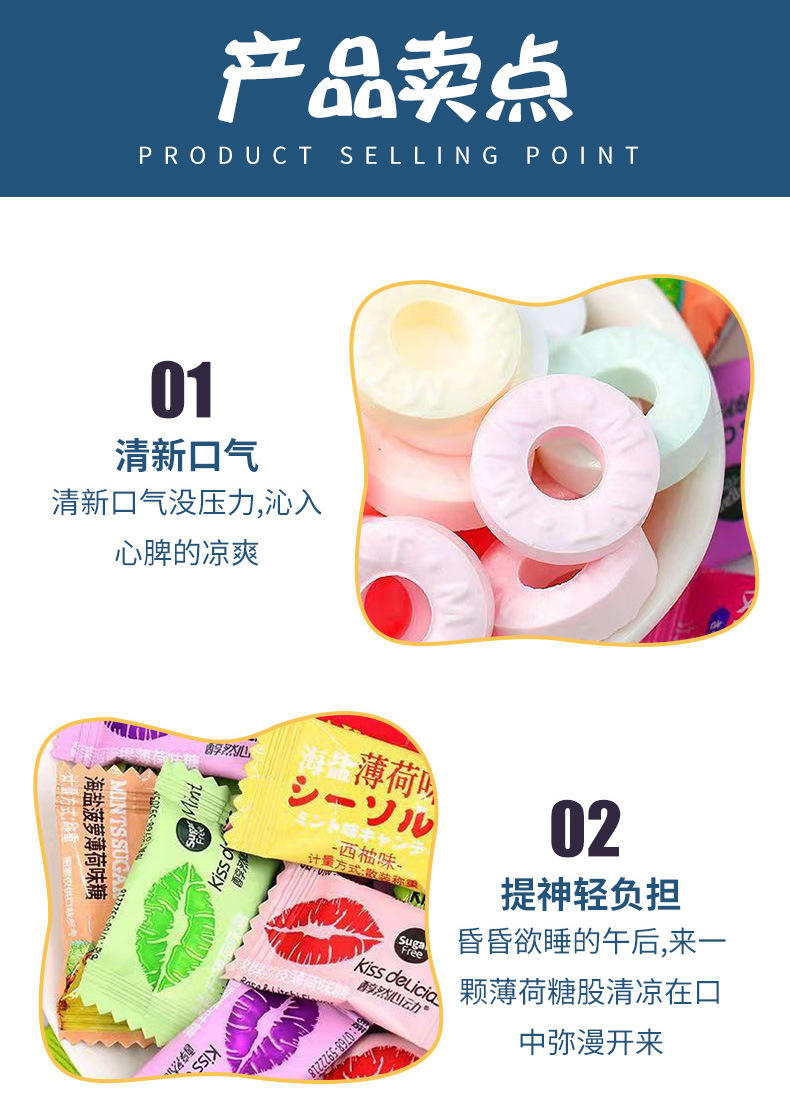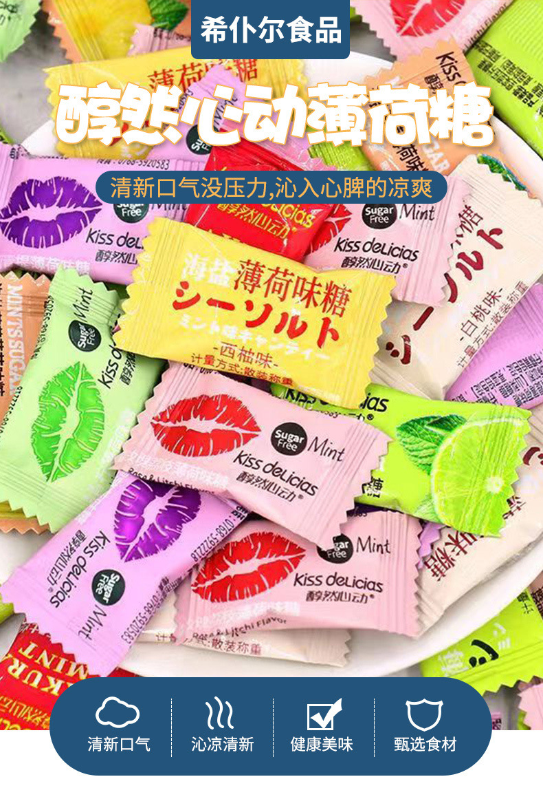 海亿薄荷糖kiss醇然心动咖啡糖专用无糖薄荷糖批发白桃压片糖草本