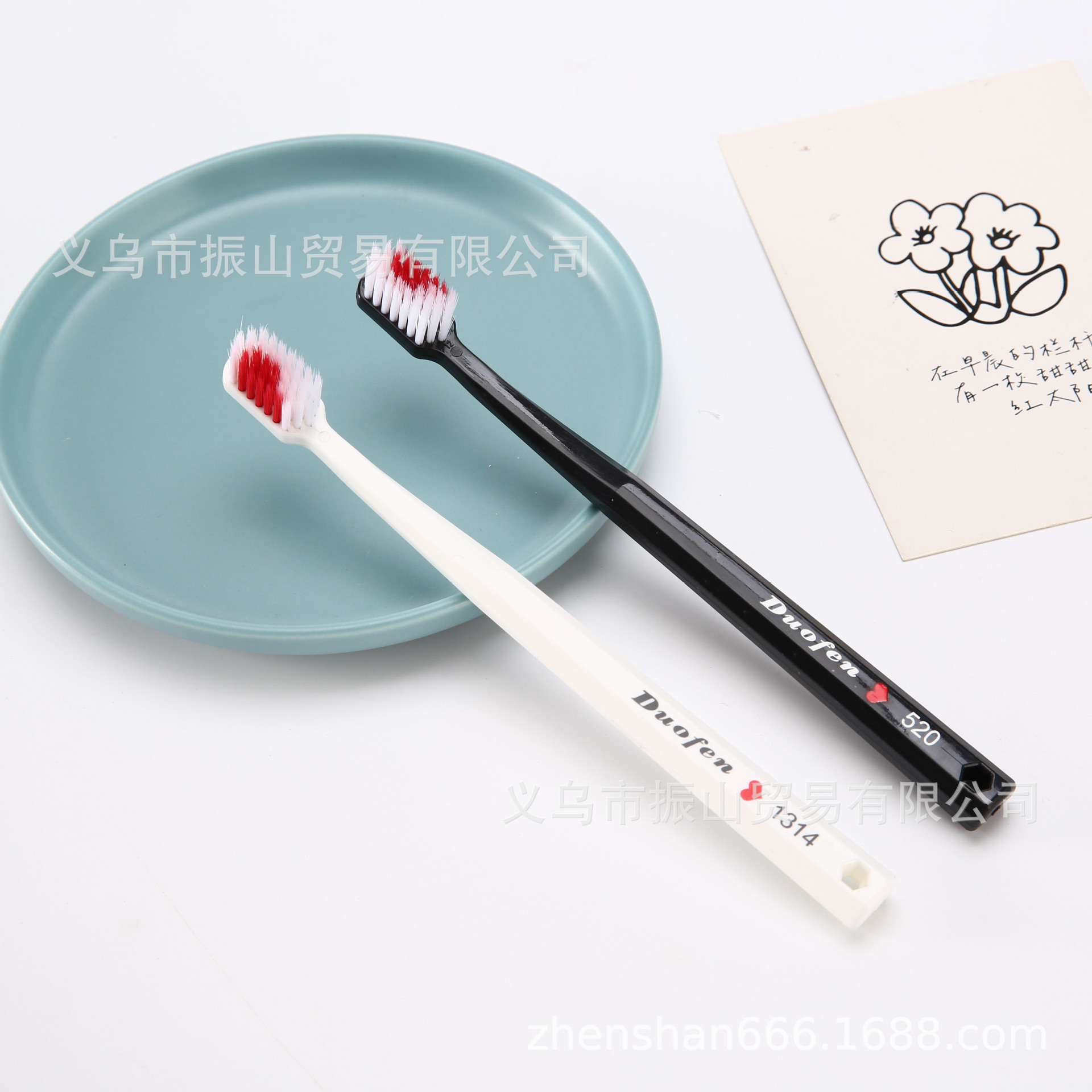 duofen311 情侣款爱心刷毛喜庆装早晚黑白软毛牙刷