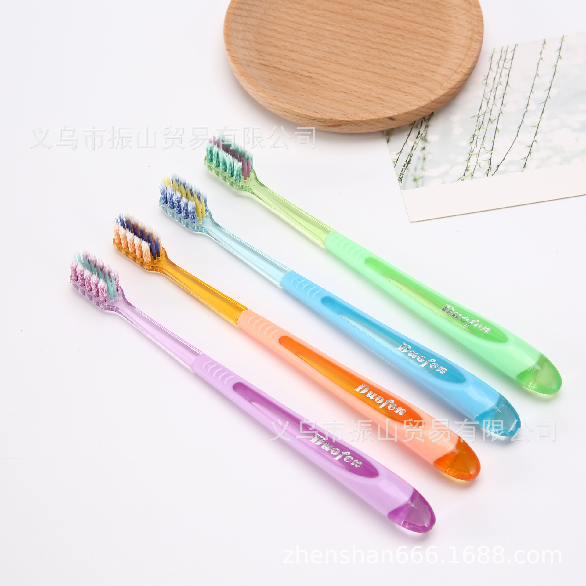 duofen316 新包装透明包胶水晶柄大小孔工艺植毛螺旋软毛牙刷
