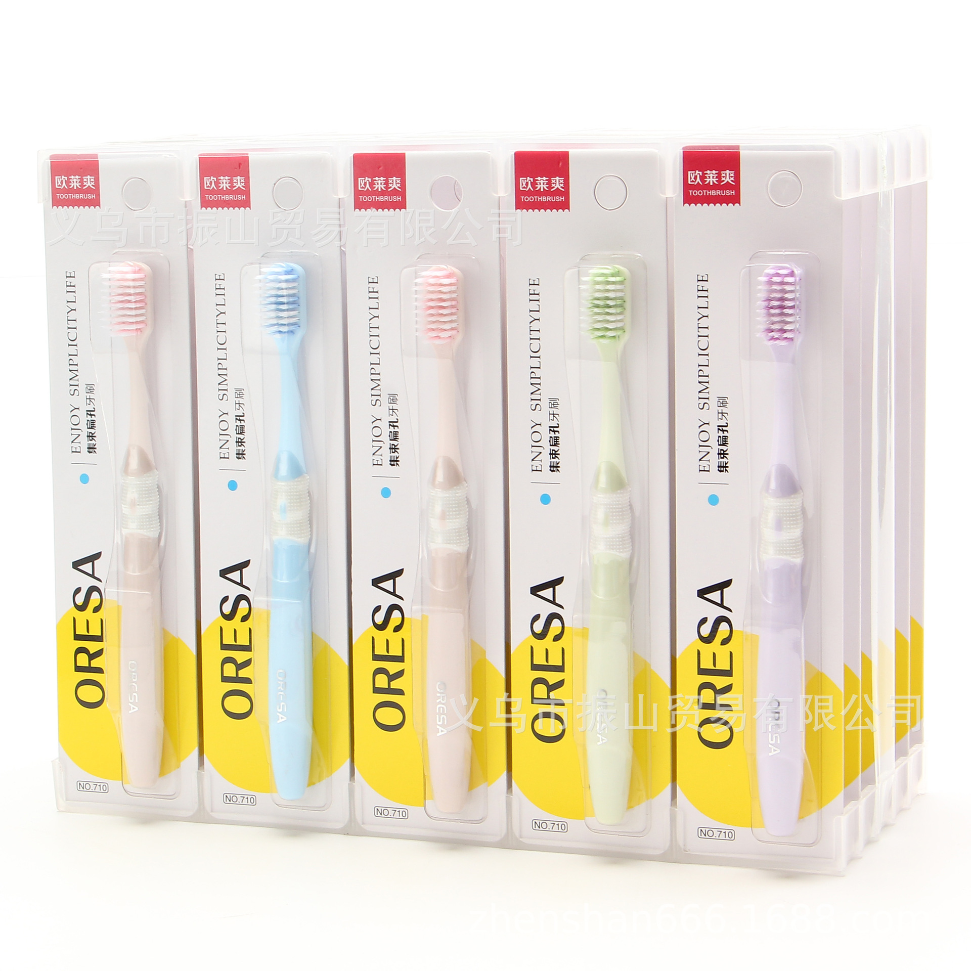 欧莱爽710 高密度集束软毛扁孔刷头设计防滑软胶更贴合软毛牙刷