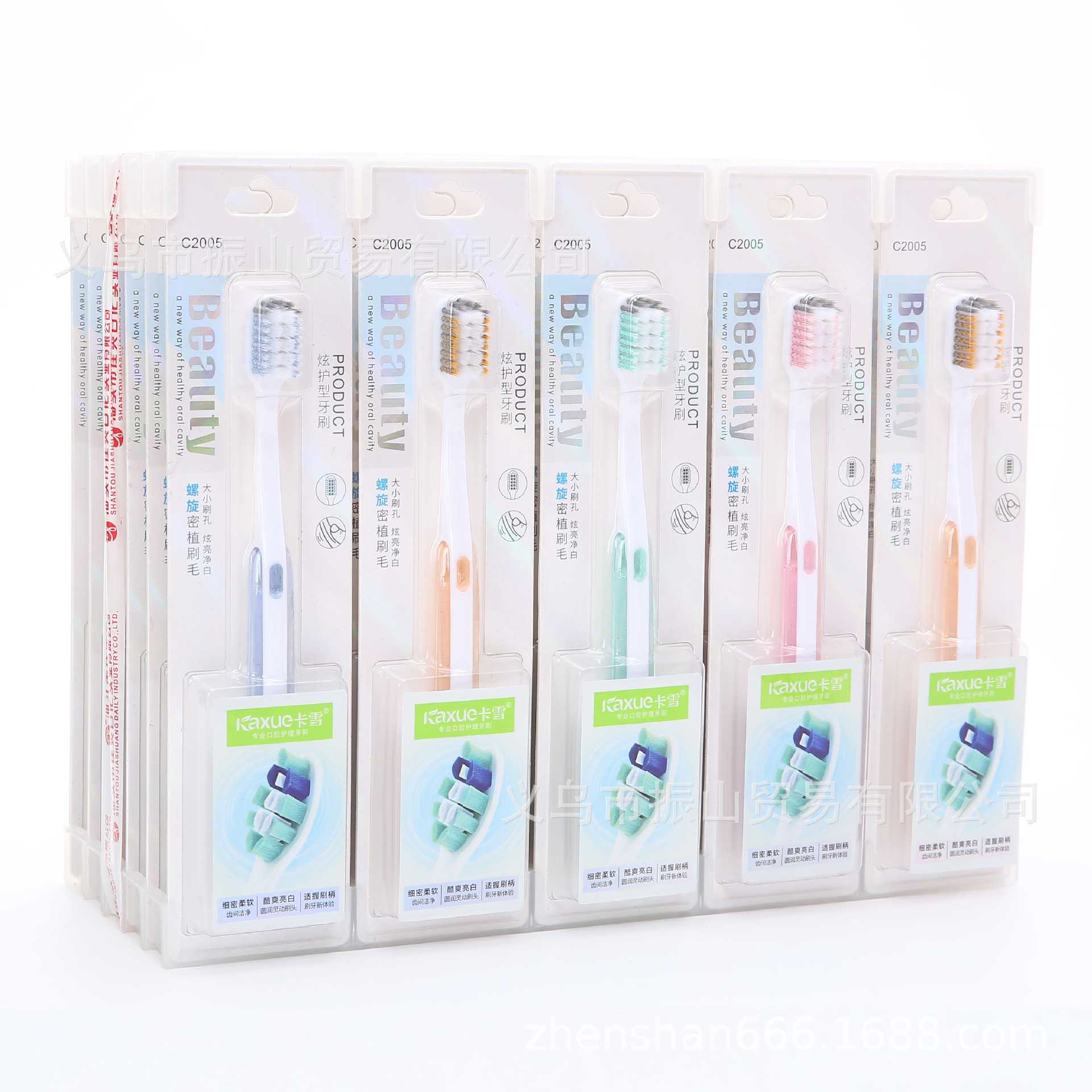 卡雪2005 双面纸卡 炫亮净白大小刷孔 螺旋刷毛+密植刷丝软毛牙刷