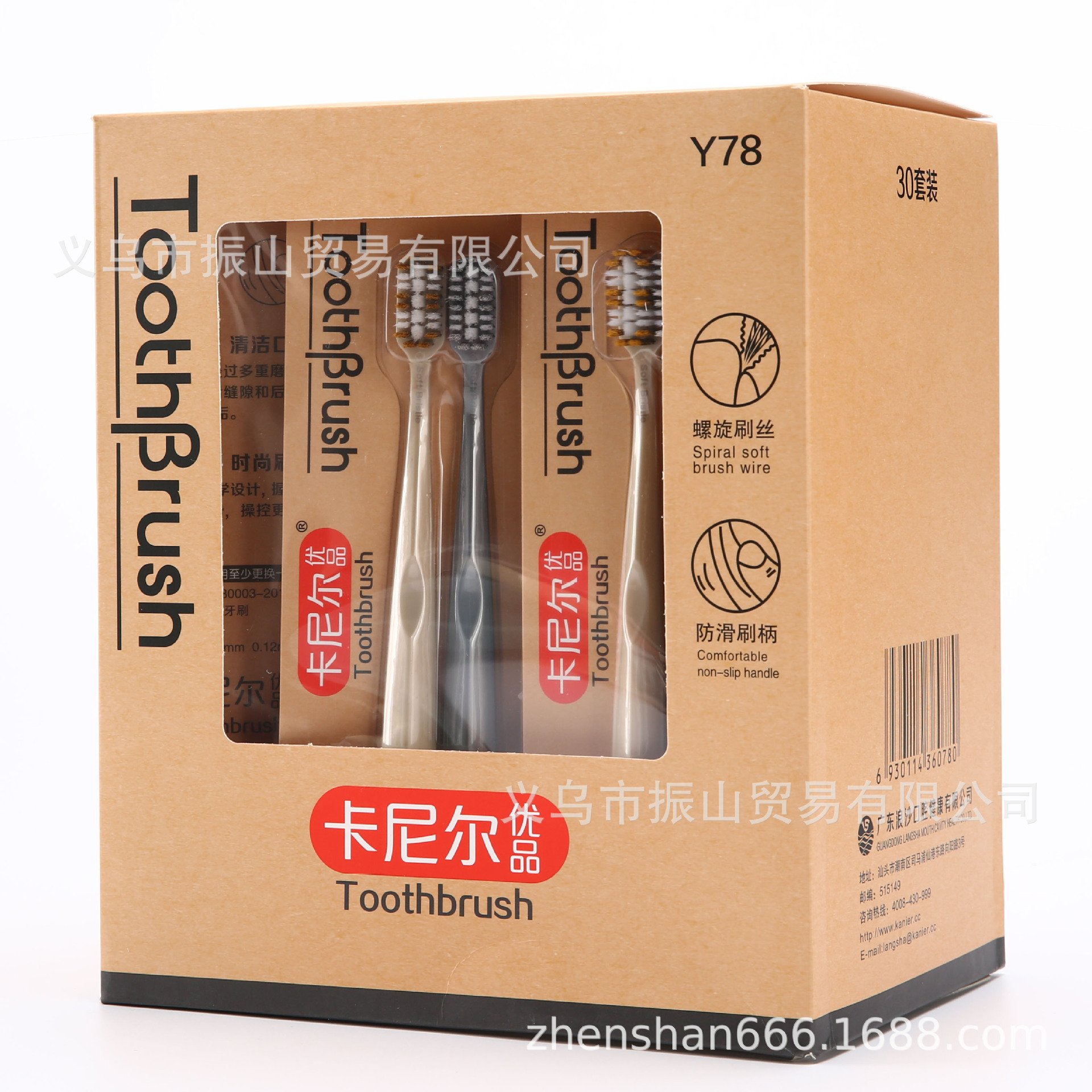 卡尼尔Y78 木纹双面纸卡双效洁净竹炭螺旋软毛牙刷