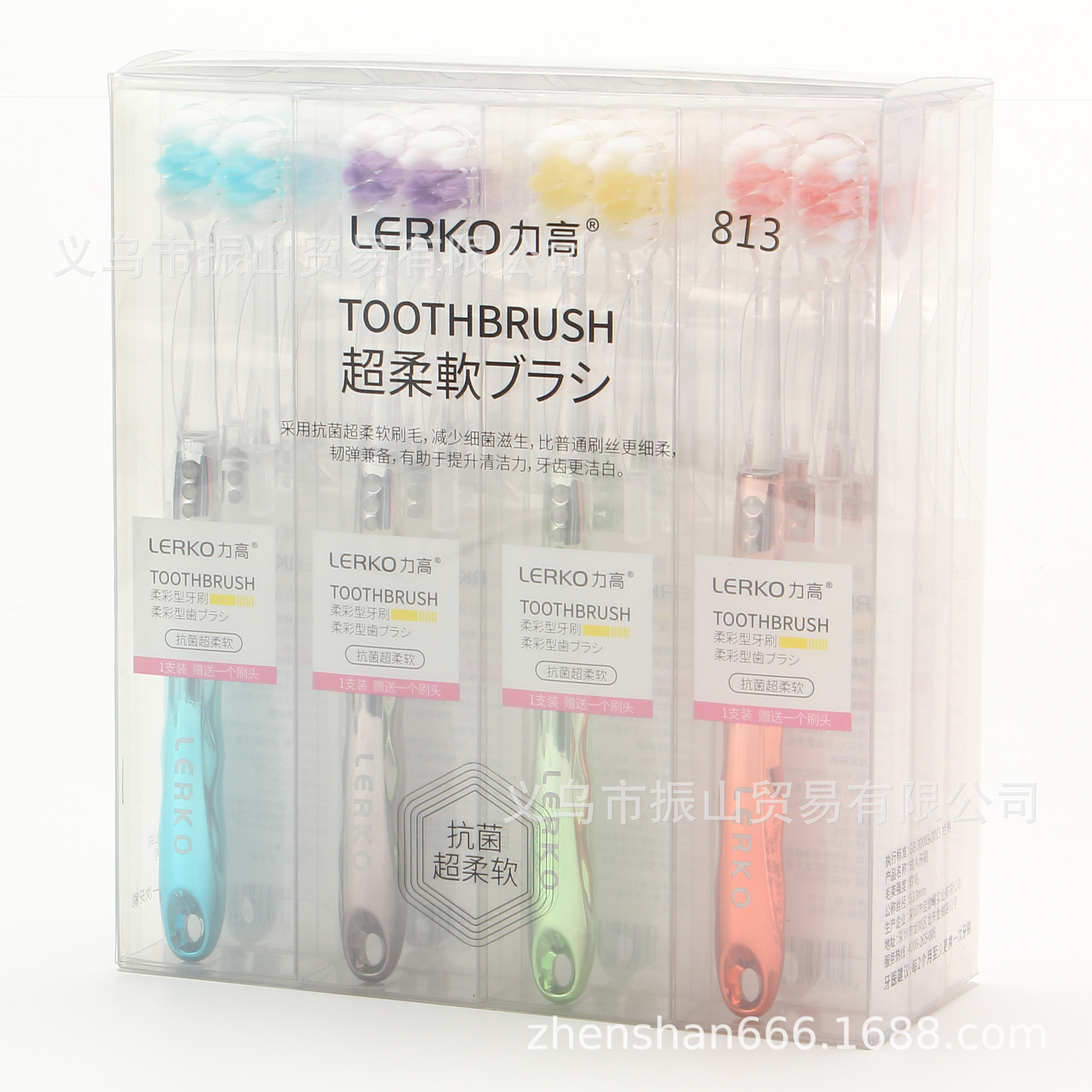 力高813 PVC盒换头装电镀水晶炫彩刷柄韧弹兼备异性刷孔软毛牙刷