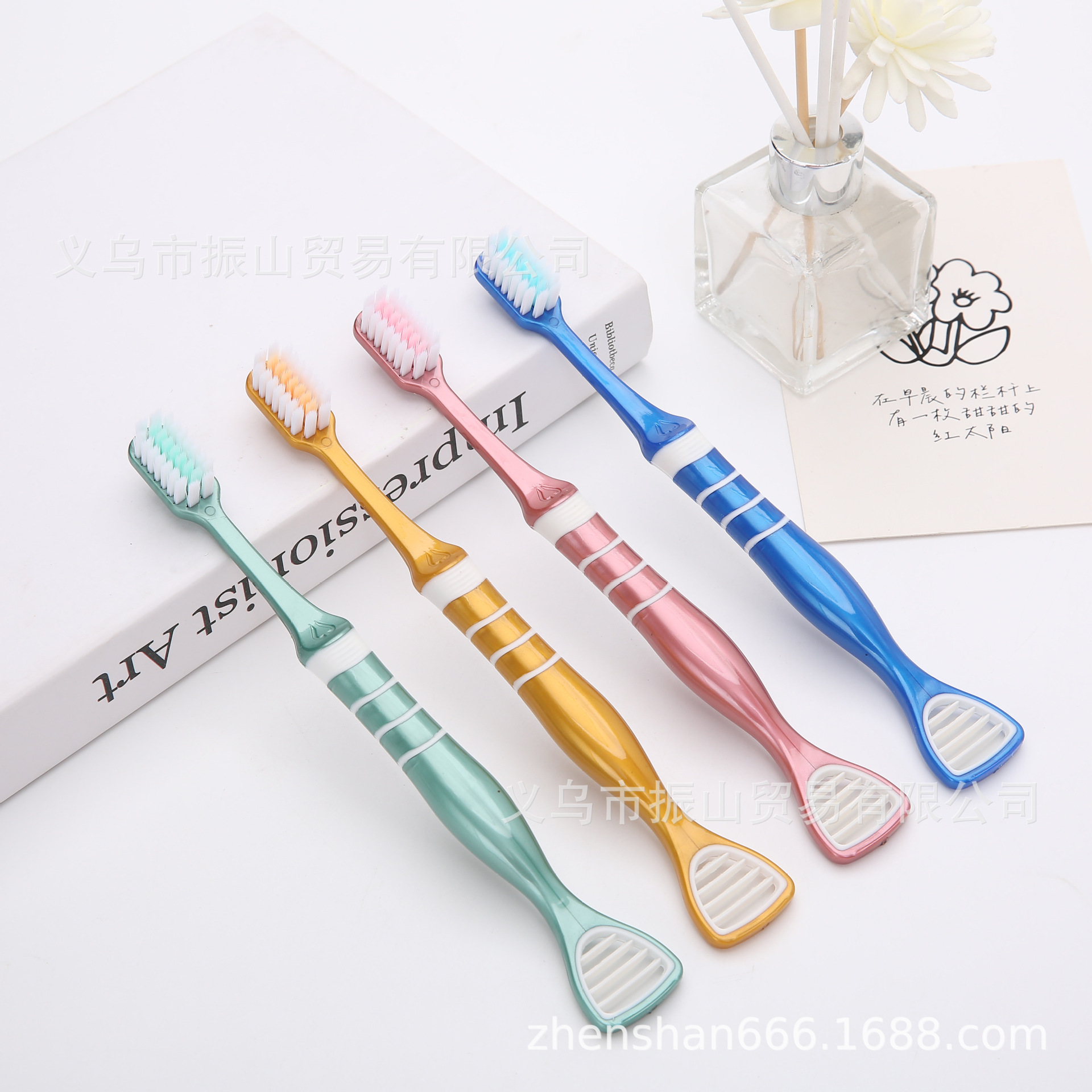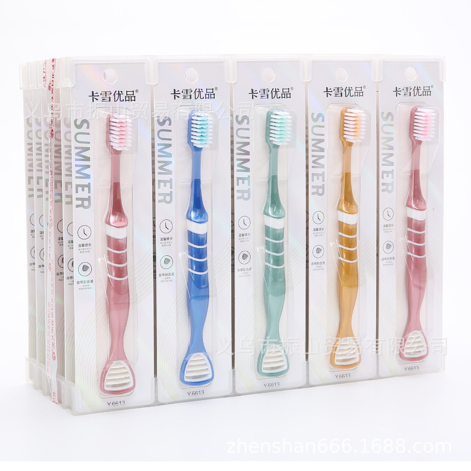 卡雪6613 双面纸卡 尾部自带刮舌苔器 纤柔扁孔软毛牙刷