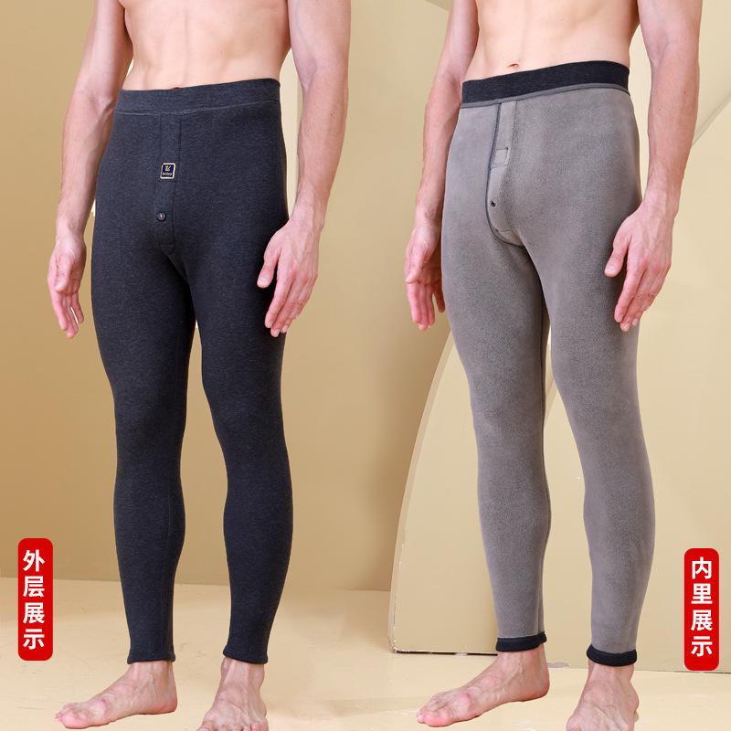 德绒秋裤男加绒加厚打底裤中厚发热绒裤秋冬衬裤青年保暖裤棉毛裤