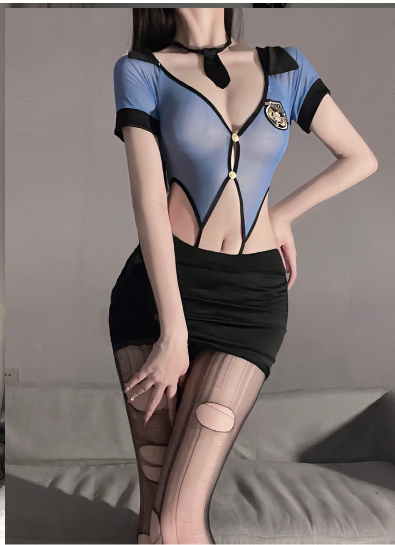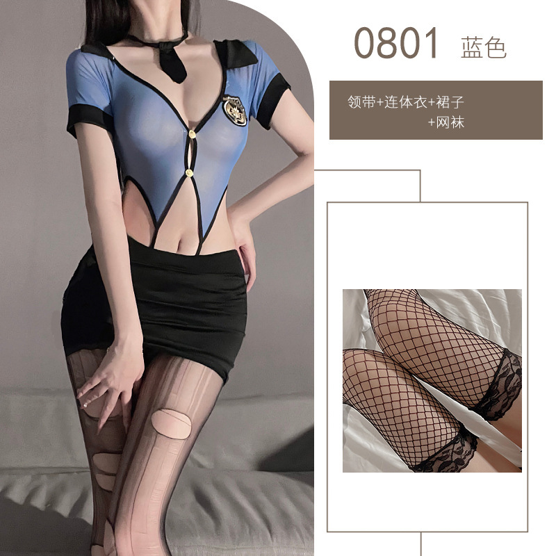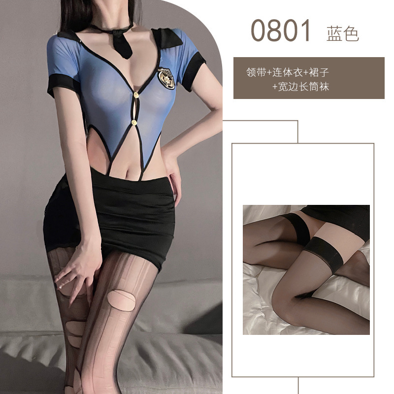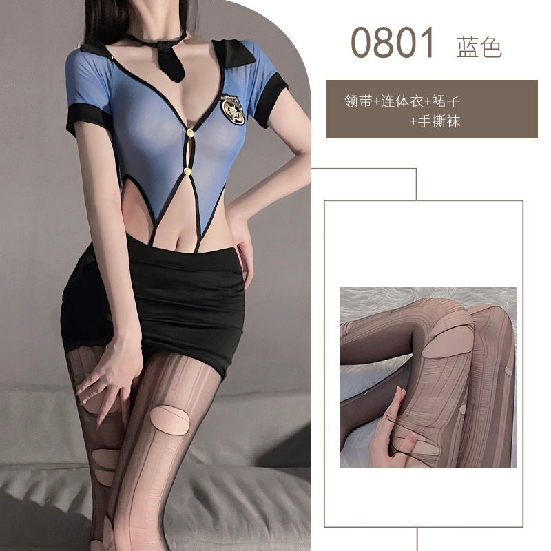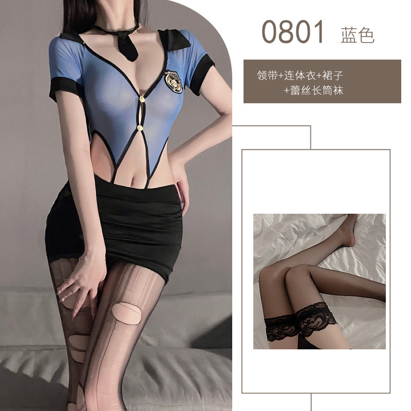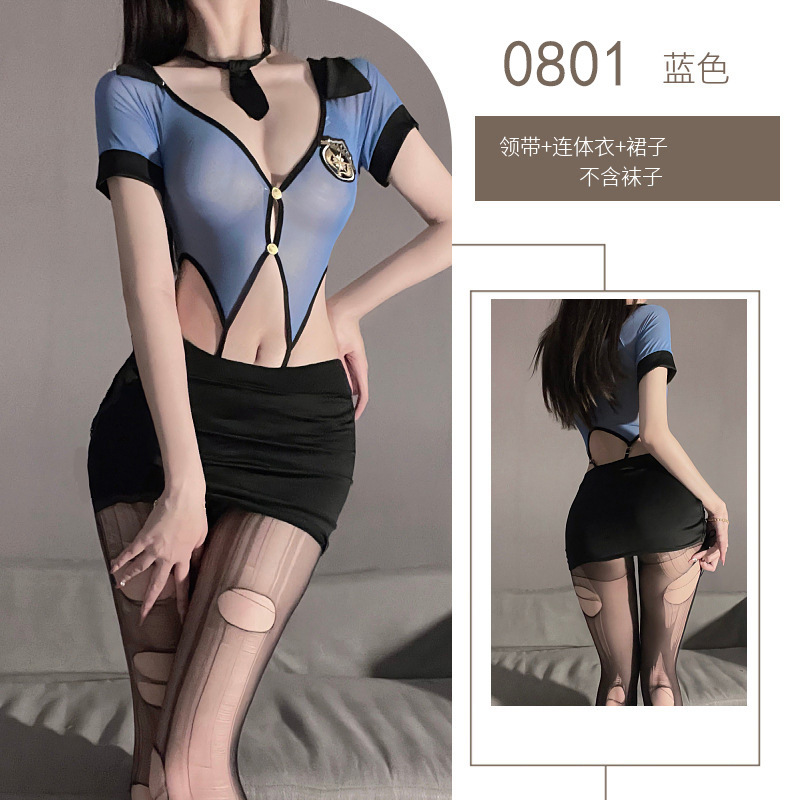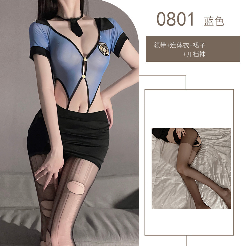 涩愿情趣内衣性感教官女警制服开裆连体衣扮演诱惑qq用品套装0801