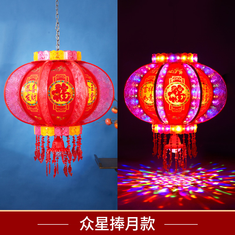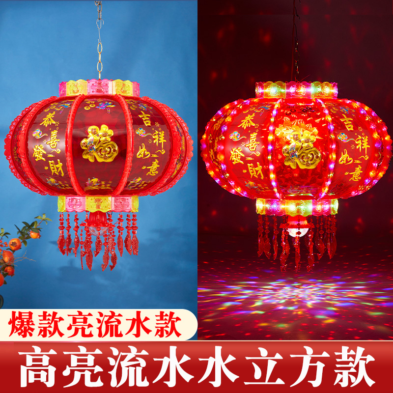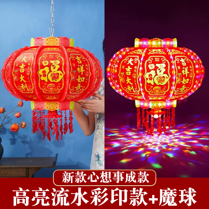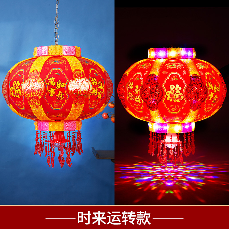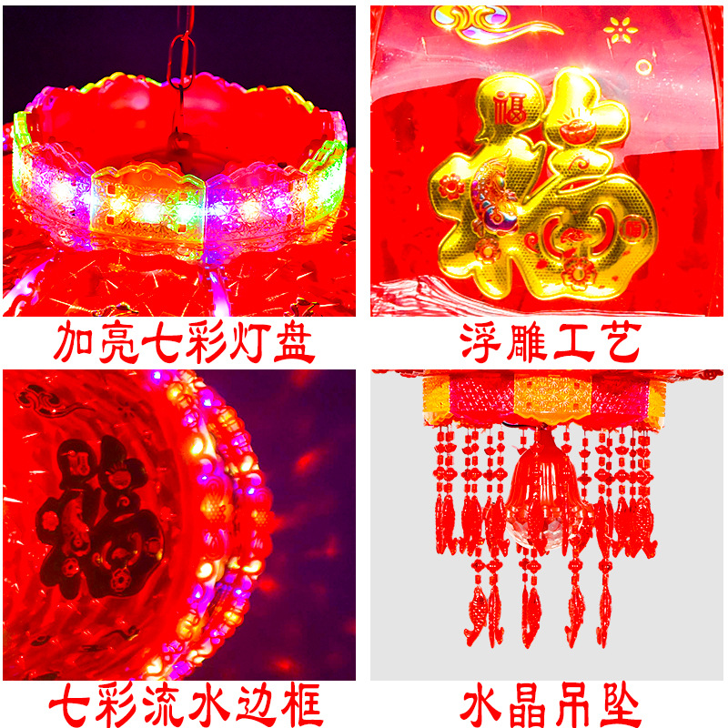 七彩旋转灯笼LED走马灯水晶福字装饰灯阳台走廊乔迁春节新年灯笼