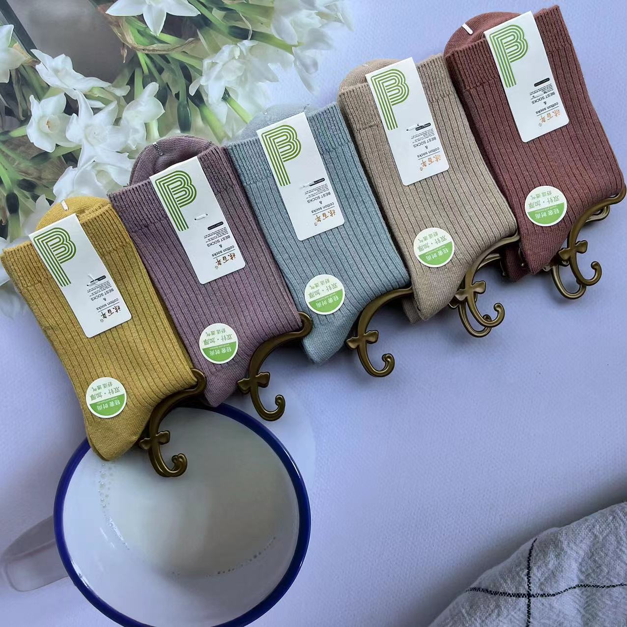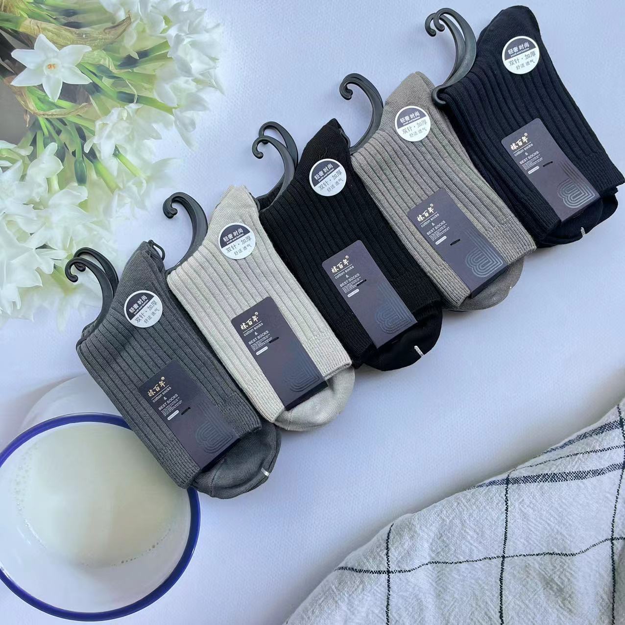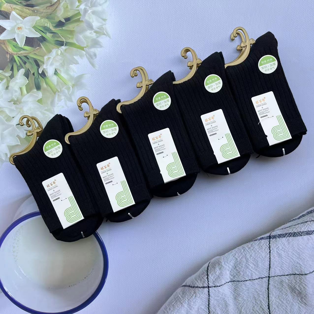 袜百年真双针系列 秋冬男女精梳棉中筒吸汗棉袜 舒适纯色棉袜批