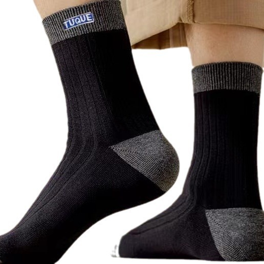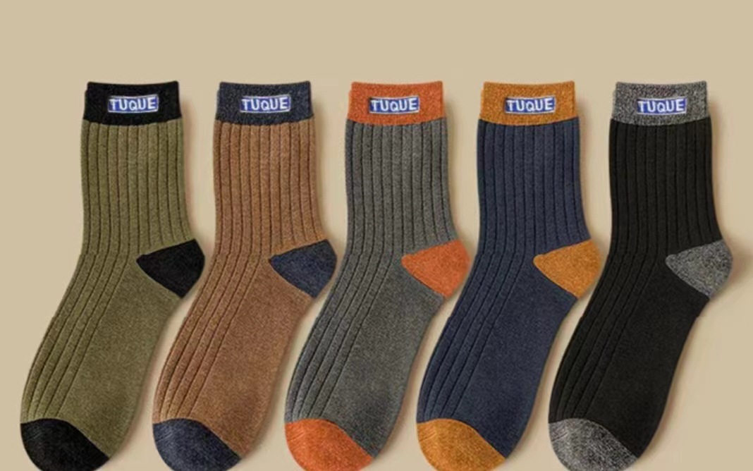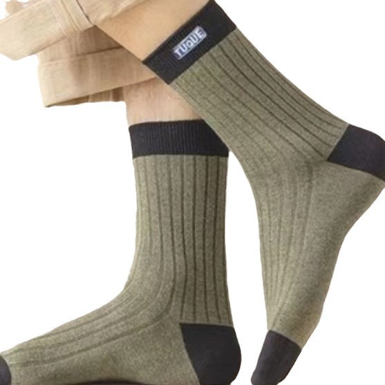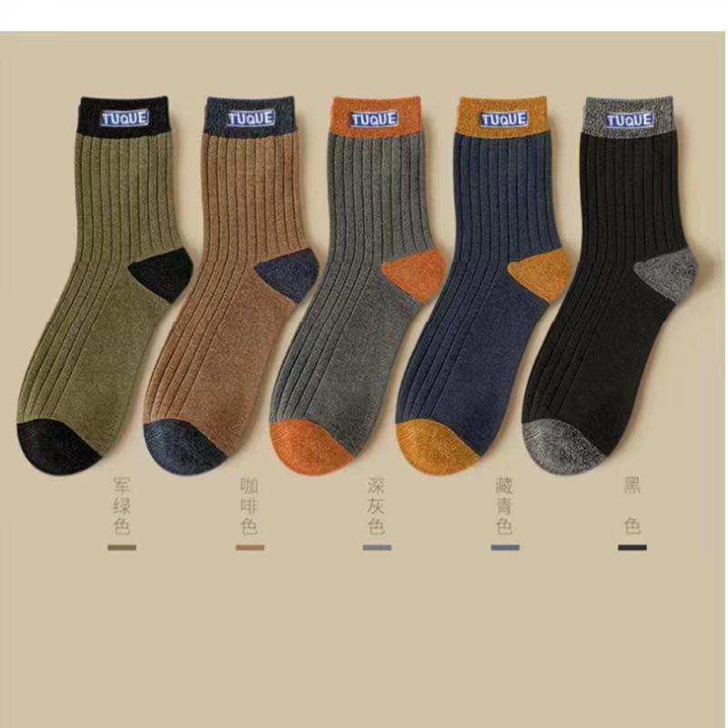 新款男士秋冬款拼色字母中筒厚款春秋款商务男士拼色保暖复古中筒