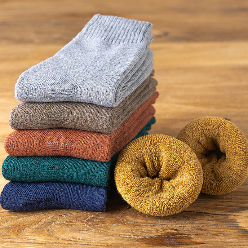 2024袜子男冬季加绒加厚中筒保暖男袜女袜纯色长筒冬天毛袜子女加