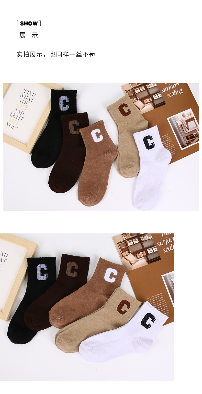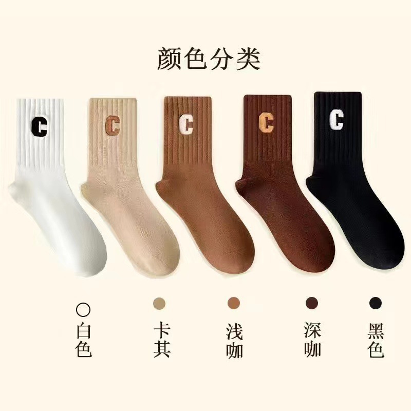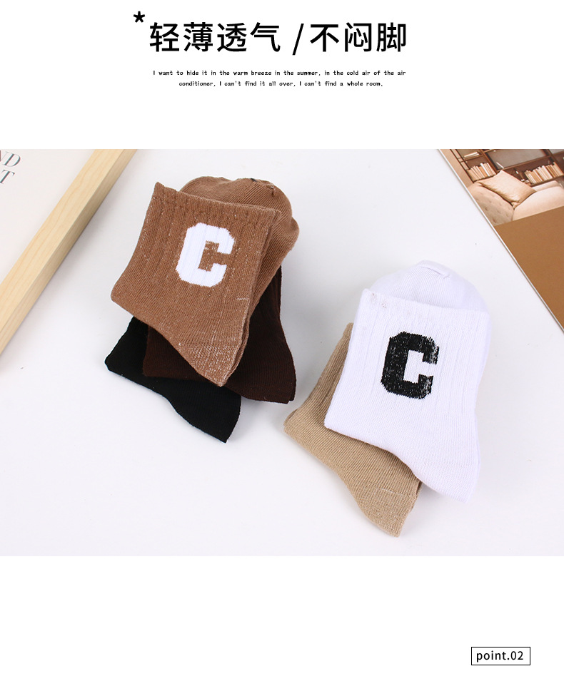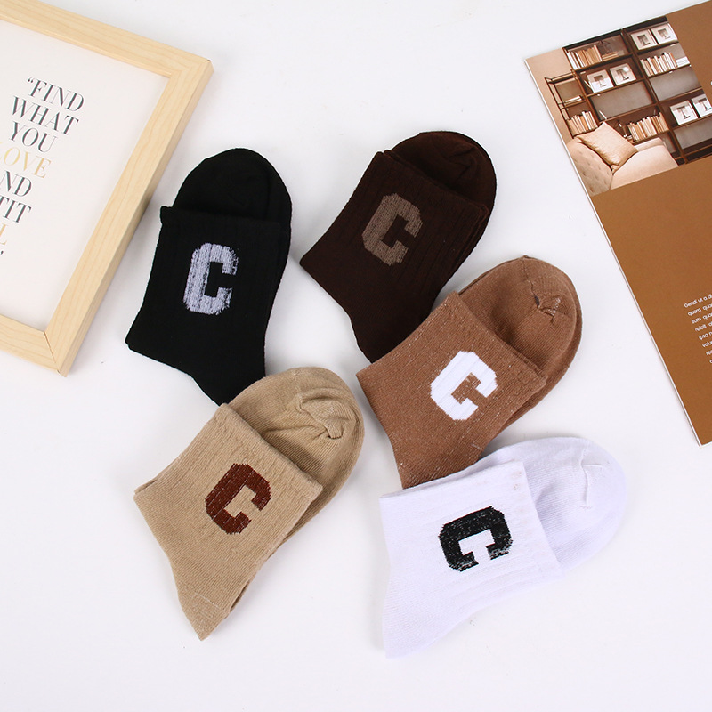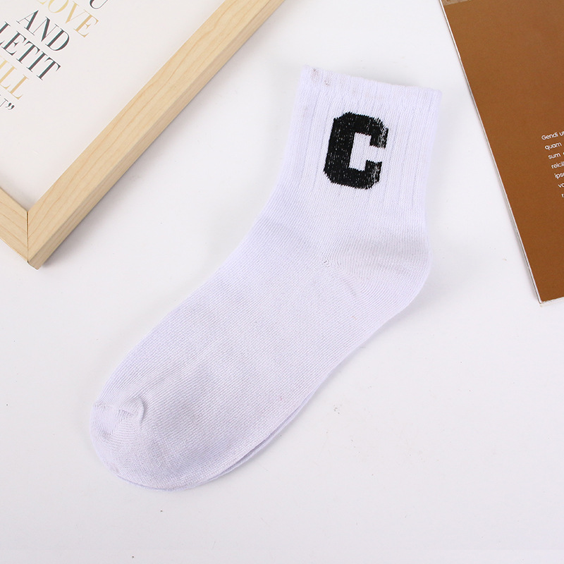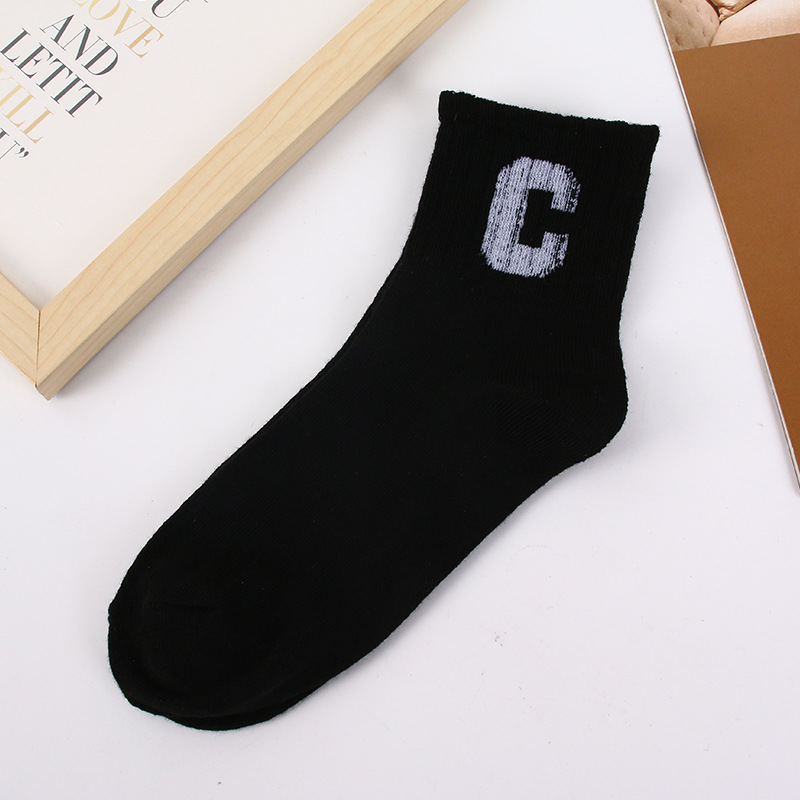 袜子男女字母C款袜子简约秋冬男女色白色袜子中筒日系ins风休闲百