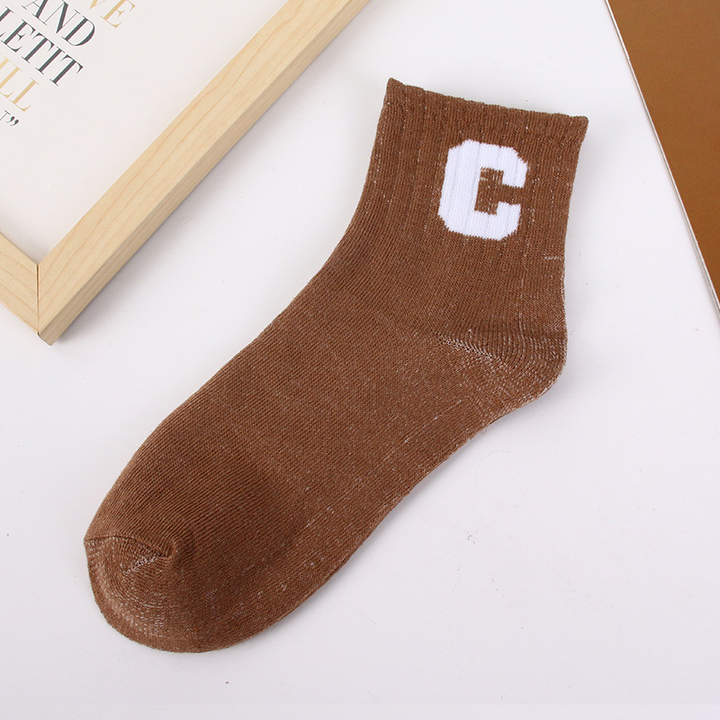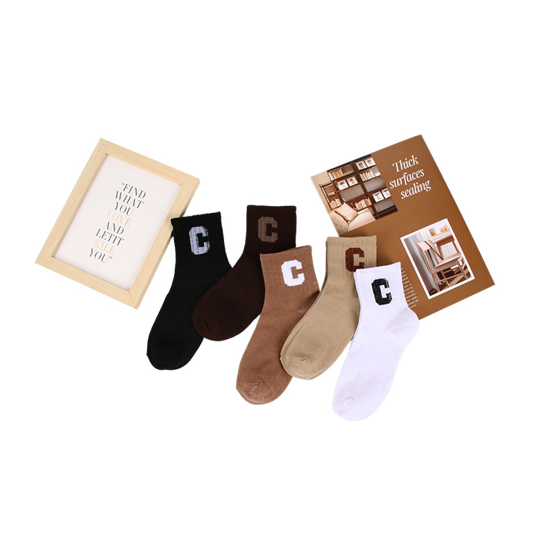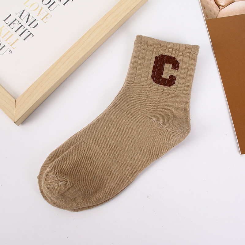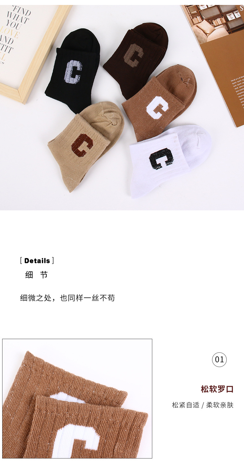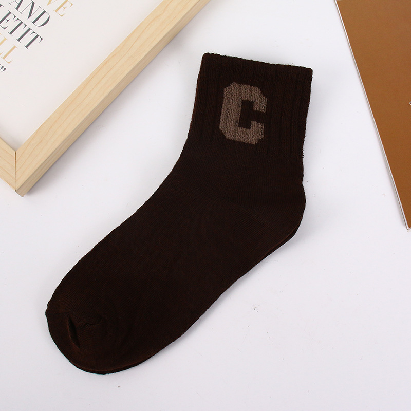 袜子男女字母C款袜子简约秋冬男女色白色袜子中筒日系ins风休闲百