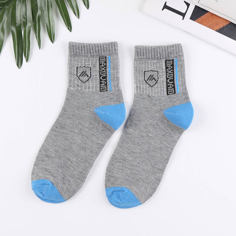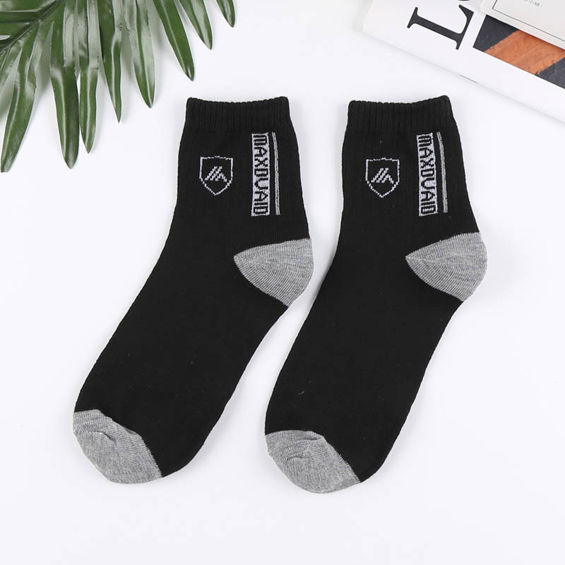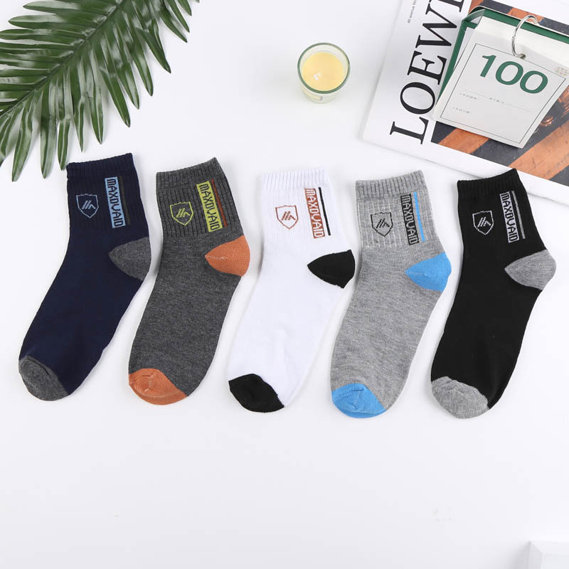 袜子男简约休闲字母中筒袜商务休闲中筒袜字母袜透气男袜男士盾牌