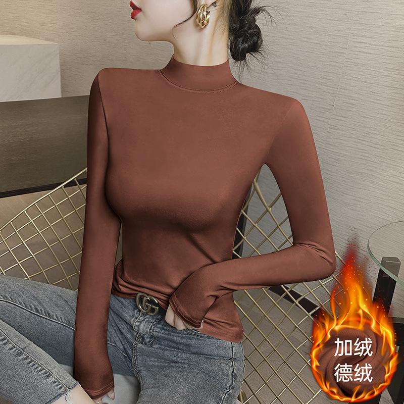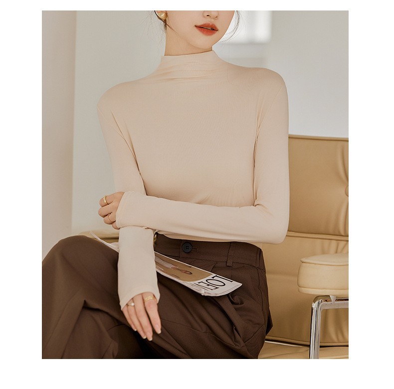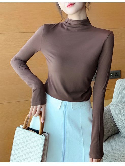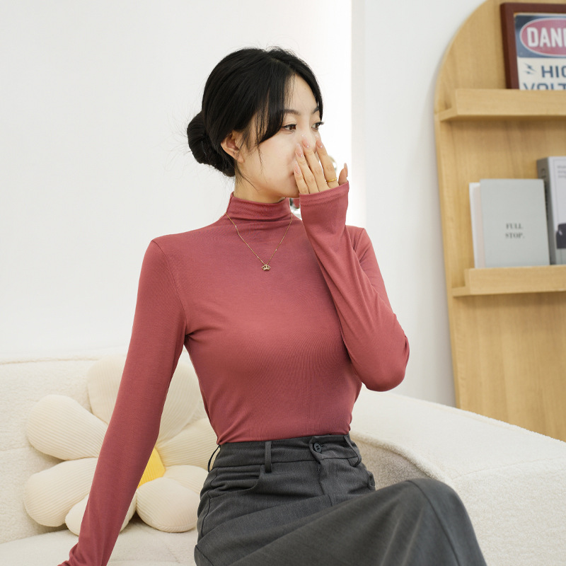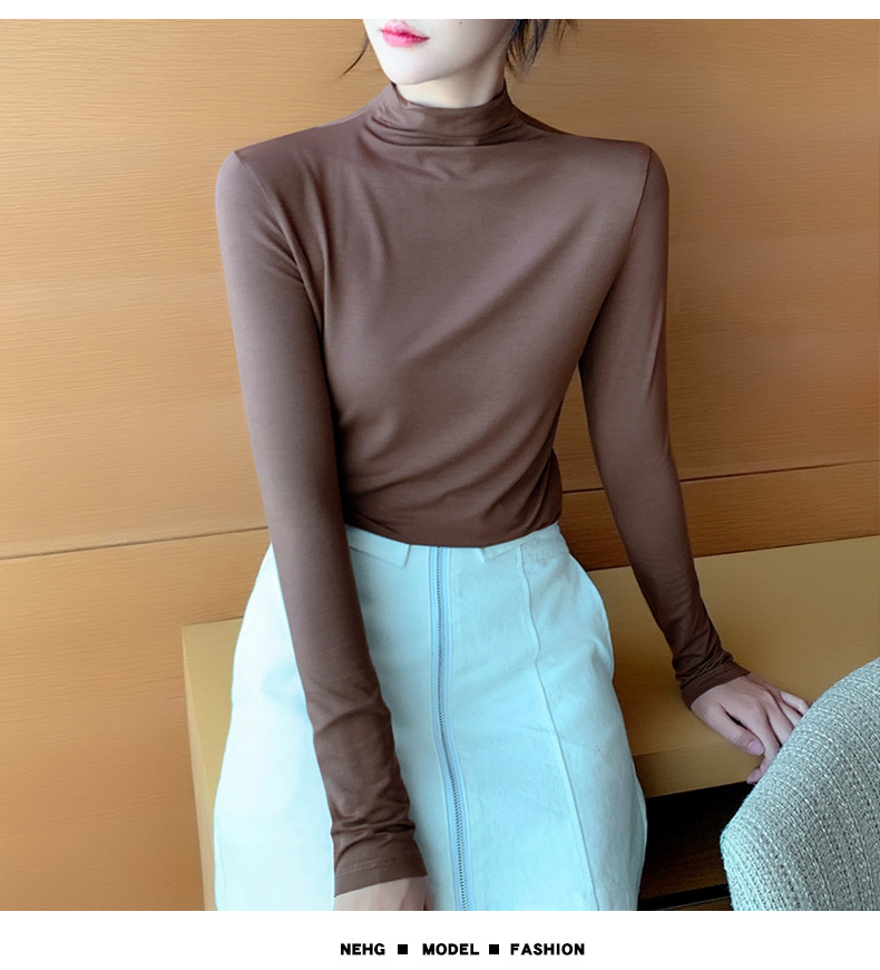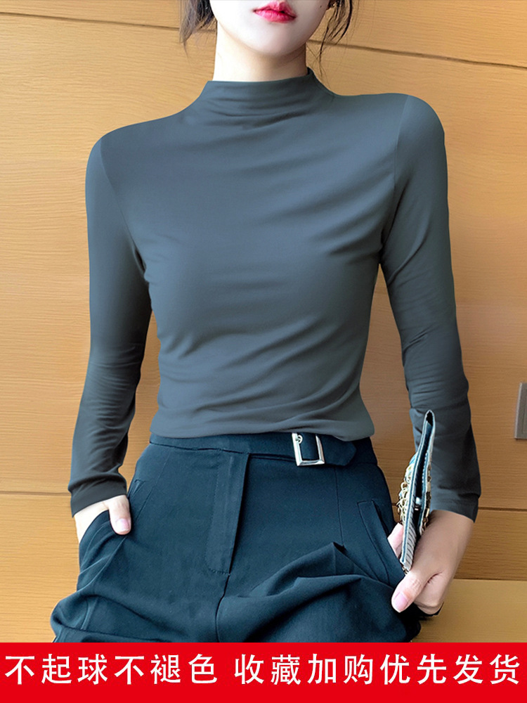秋冬气质半高领莫代尔打底衫女秋 加绒女式修身长袖高领内搭上衣