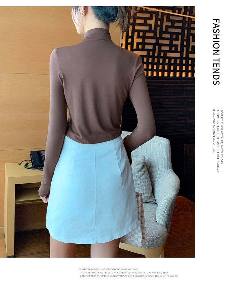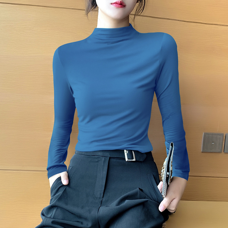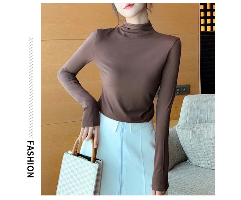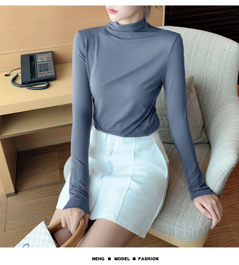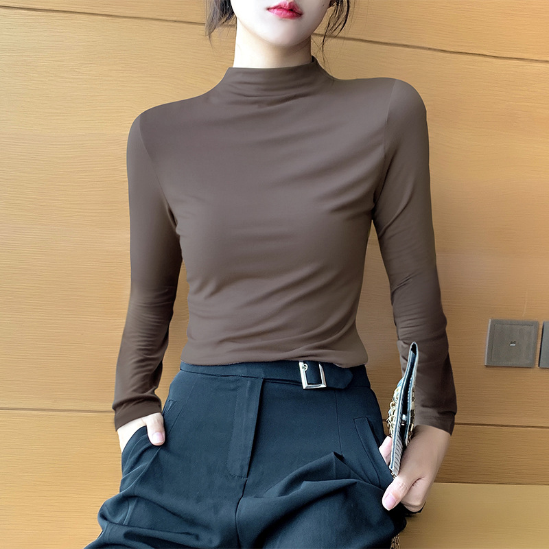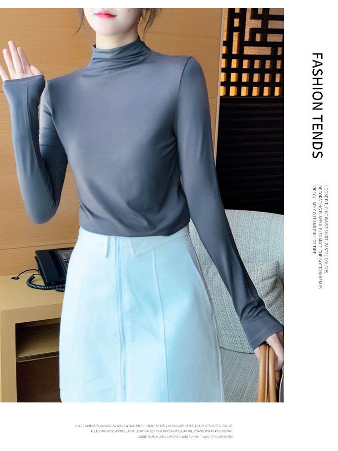 秋冬气质半高领莫代尔打底衫女秋 加绒女式修身长袖高领内搭上衣