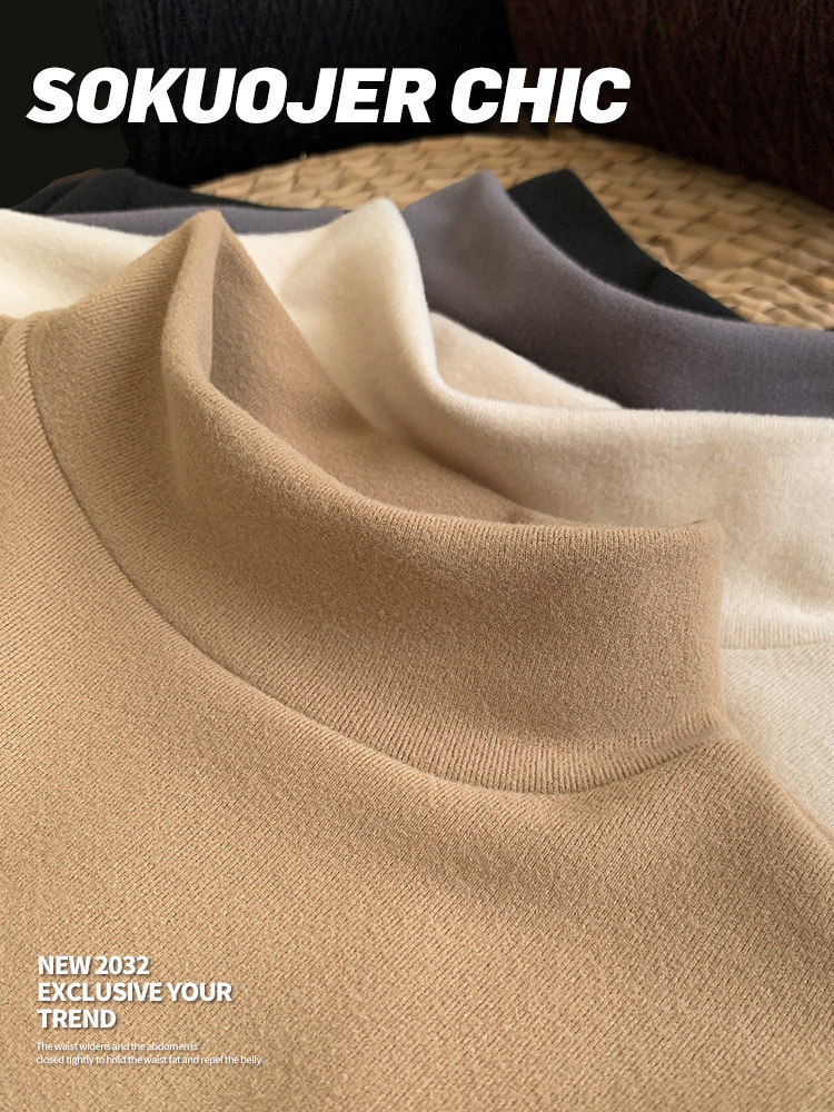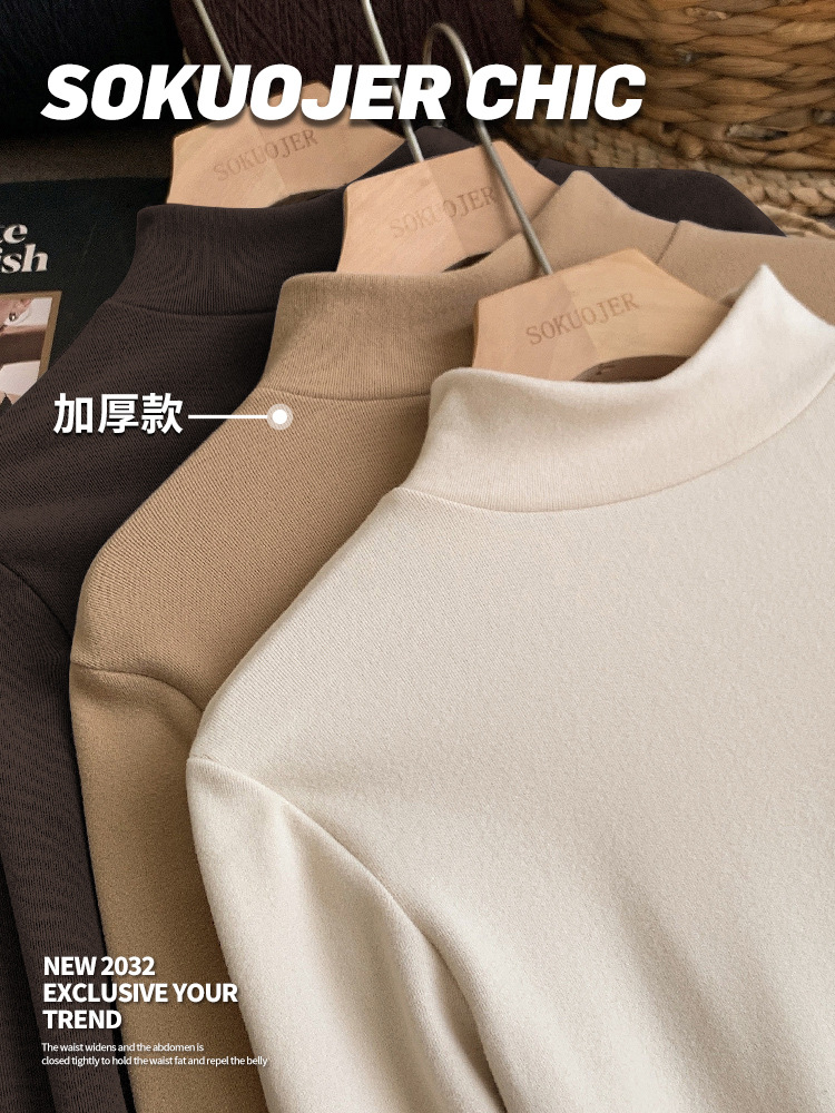高品质软糯双面磨毛半高领打底衫女秋冬修身显瘦长袖t恤内搭上衣