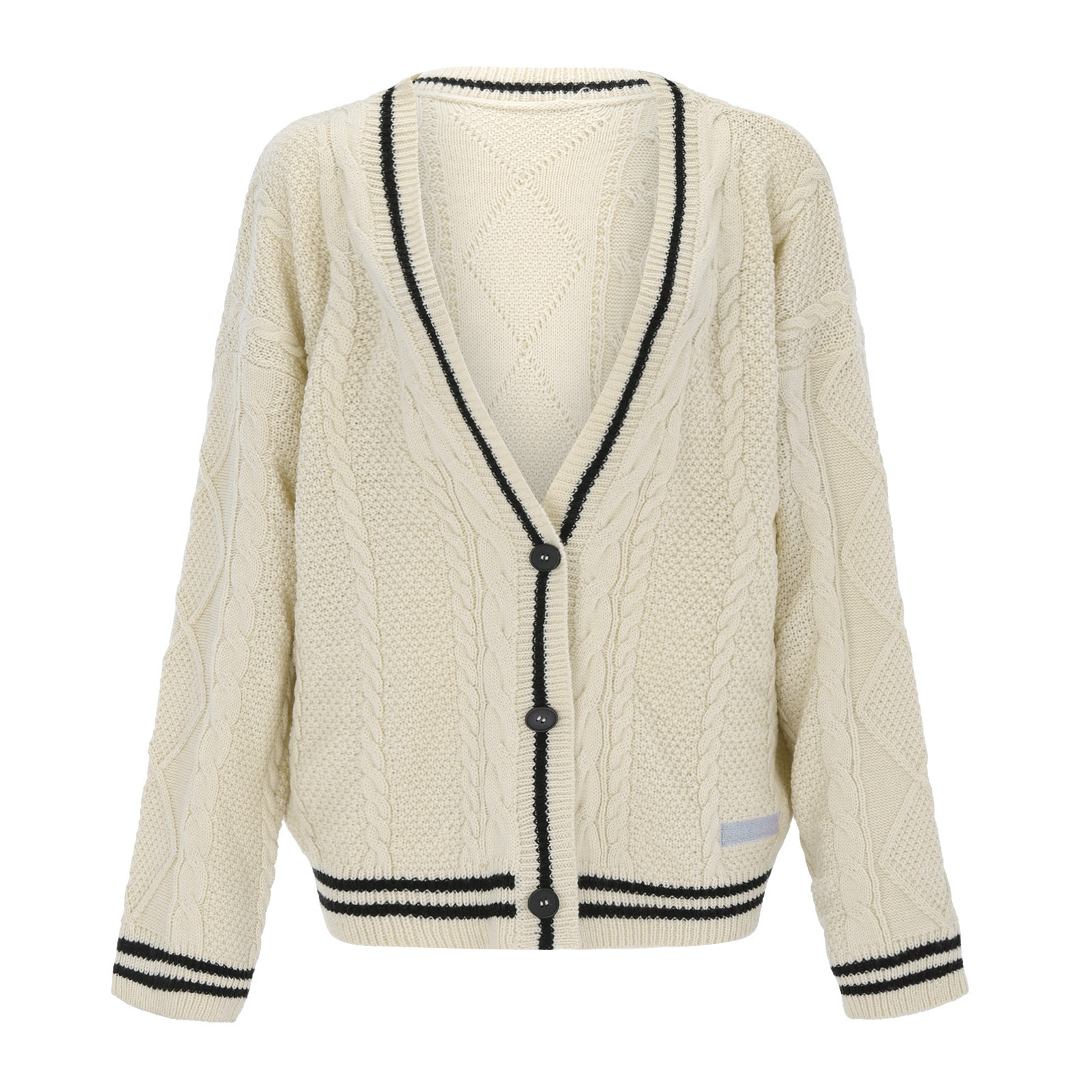 秋冬纯色长袖开衫女气质通勤欧美蝙蝠翼针织米白色单排扣毛衣外套