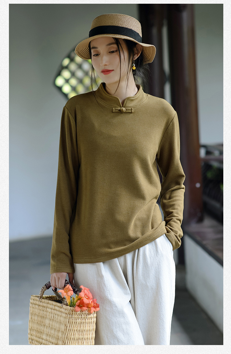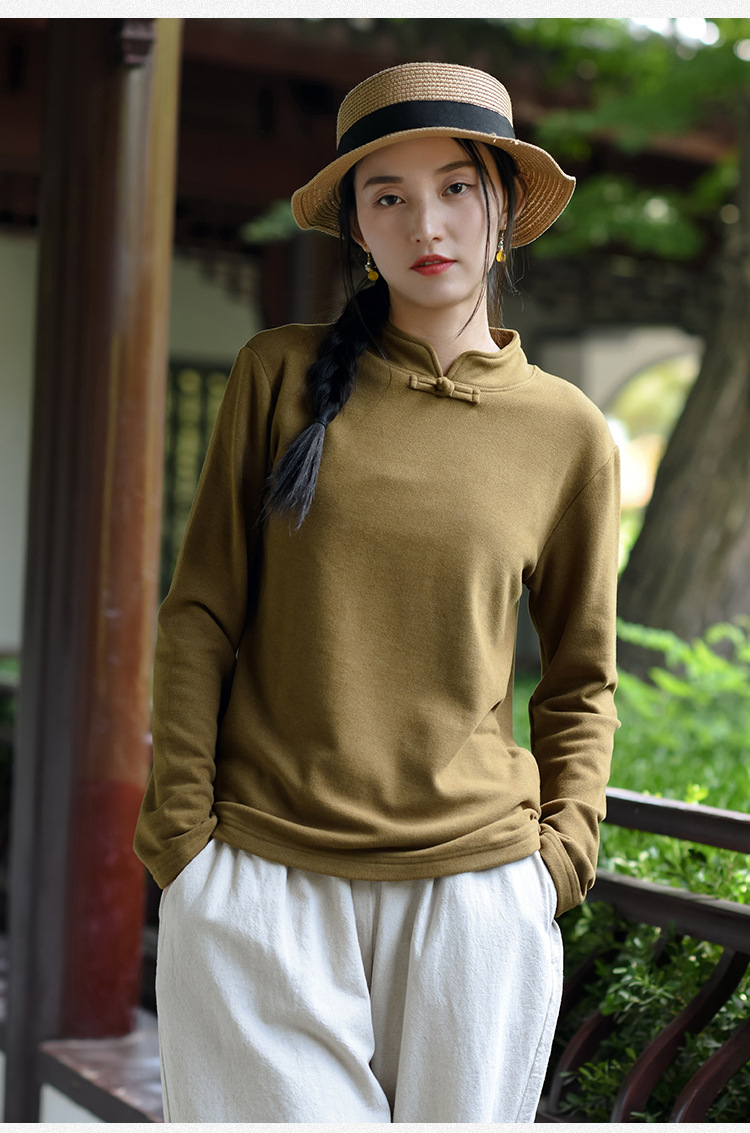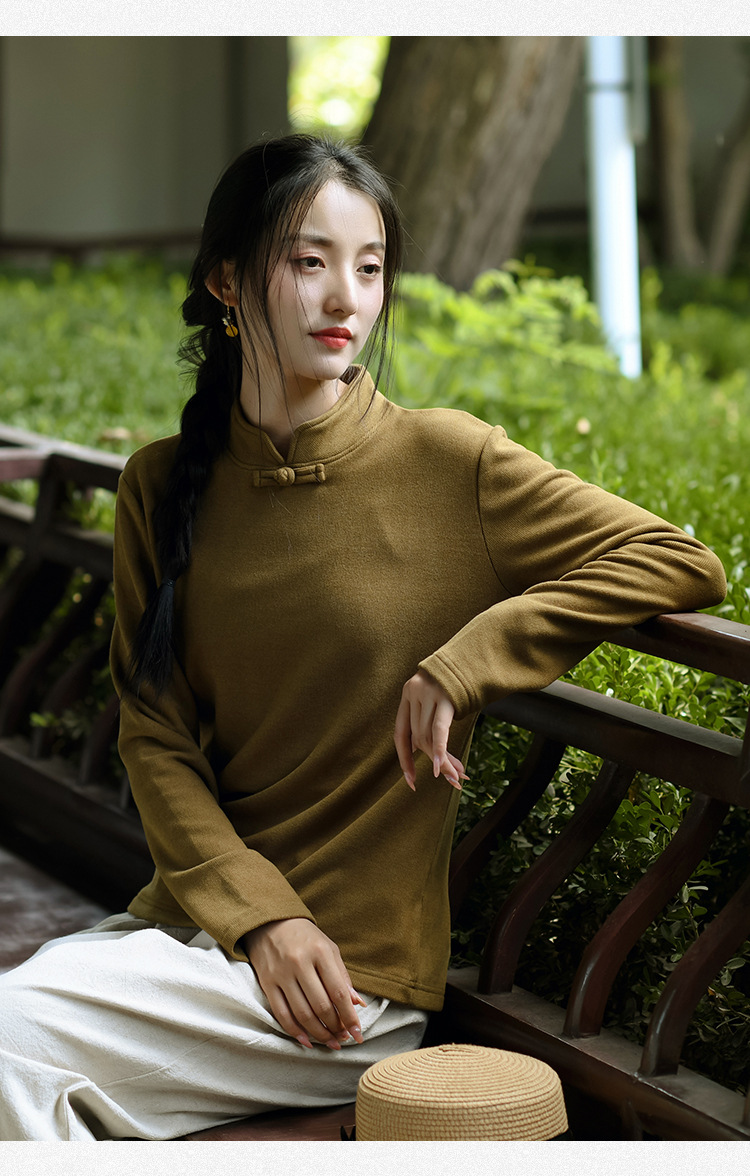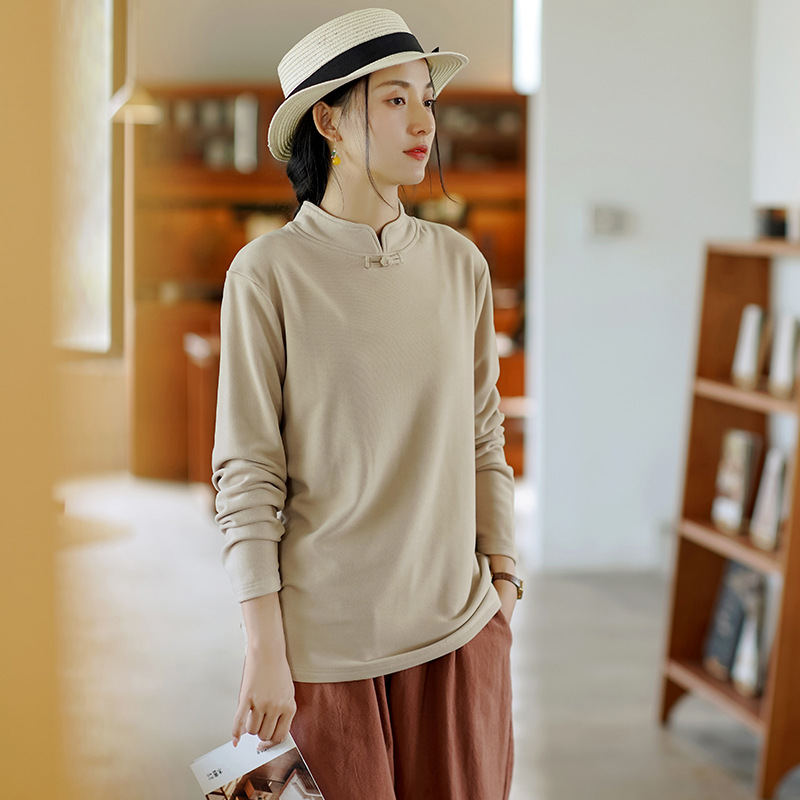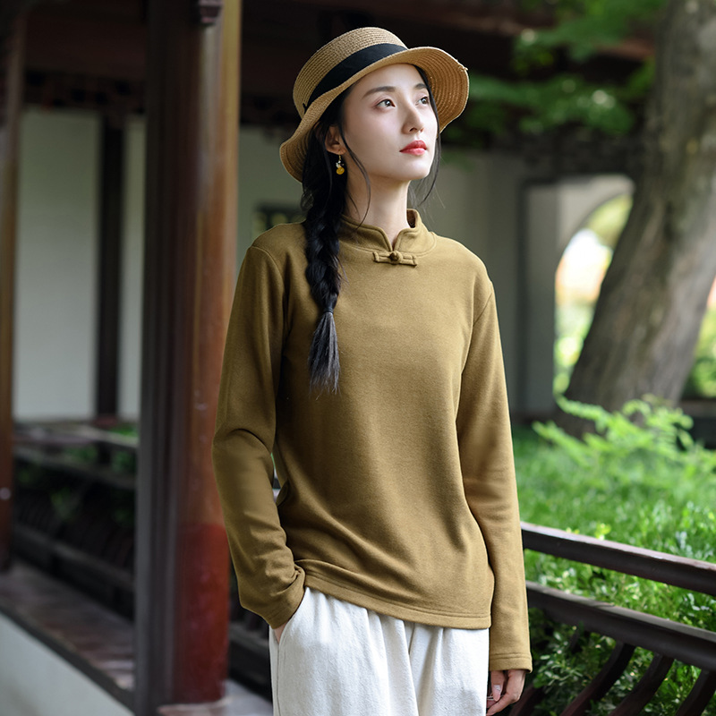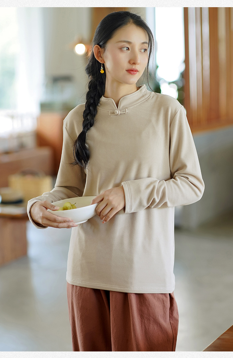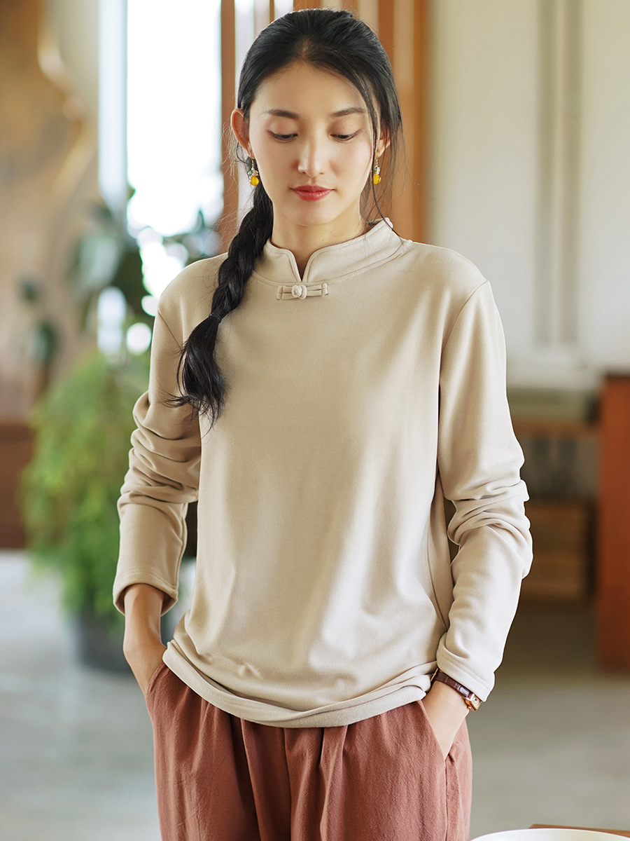新中式女装内搭秋冬新款德绒打底衫女外穿百搭中国风盘扣复古上衣