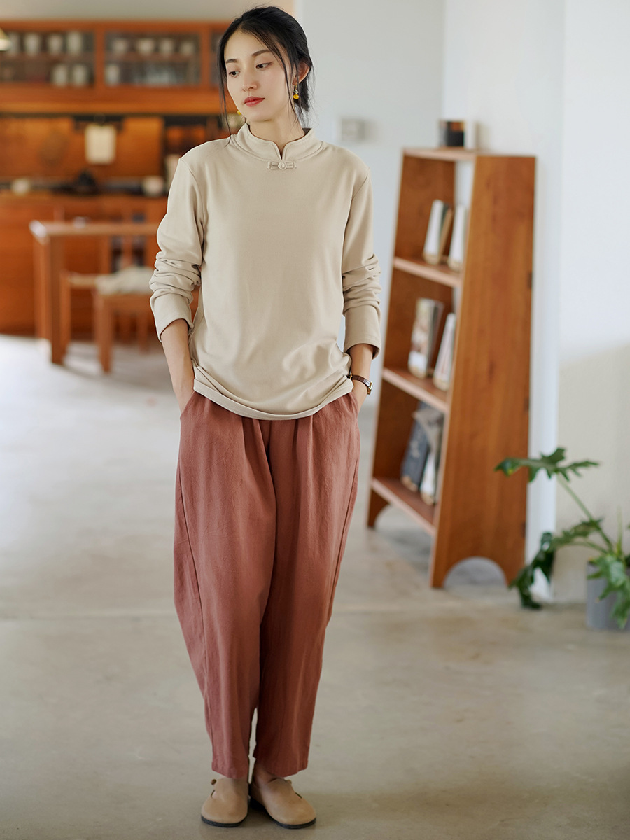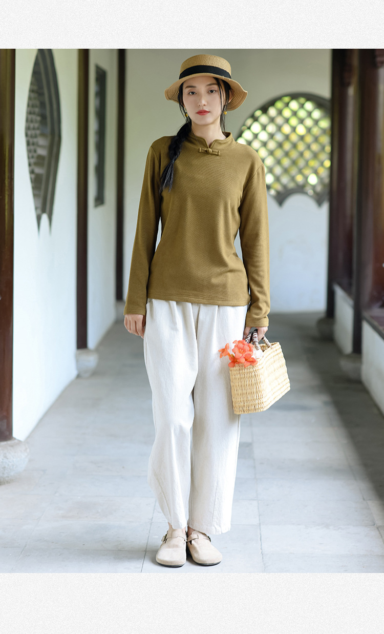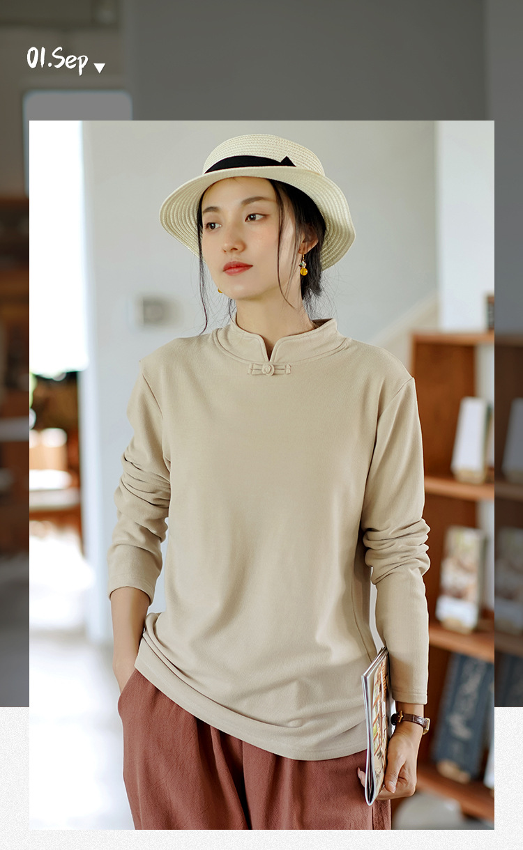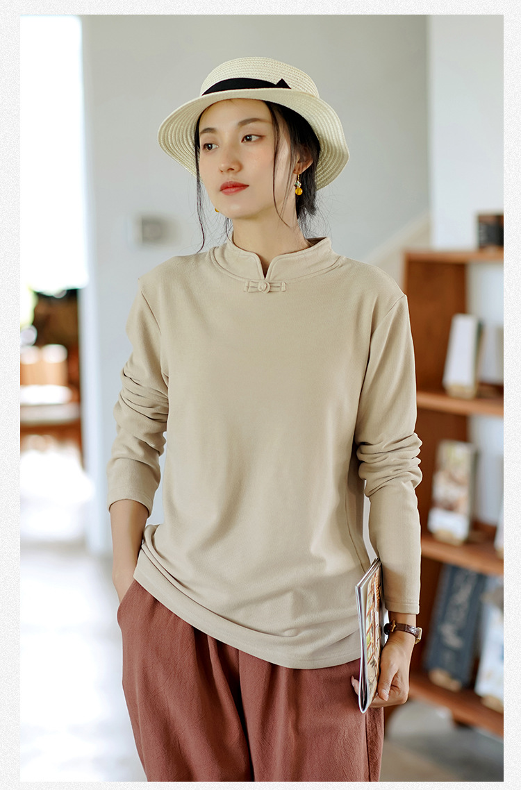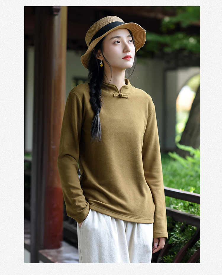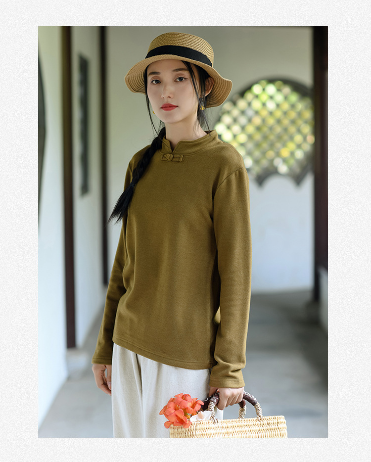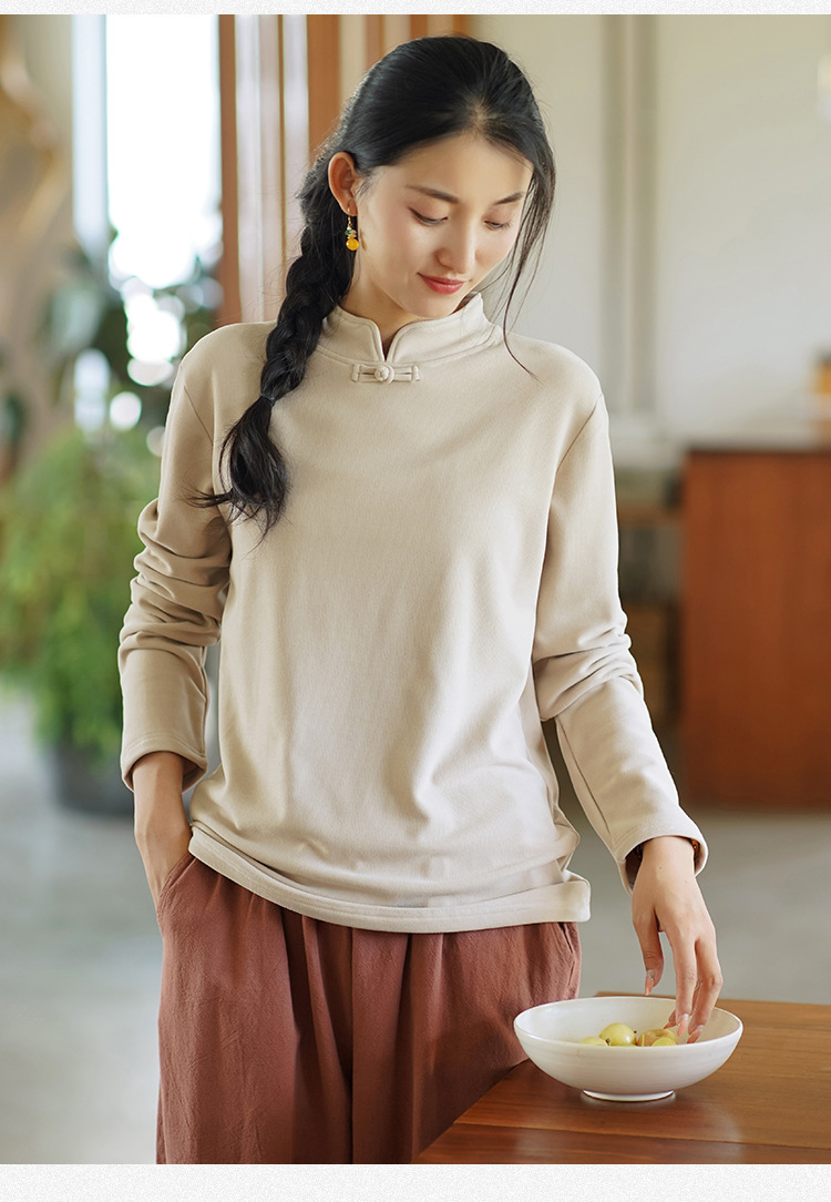 新中式女装内搭秋冬新款德绒打底衫女外穿百搭中国风盘扣复古上衣