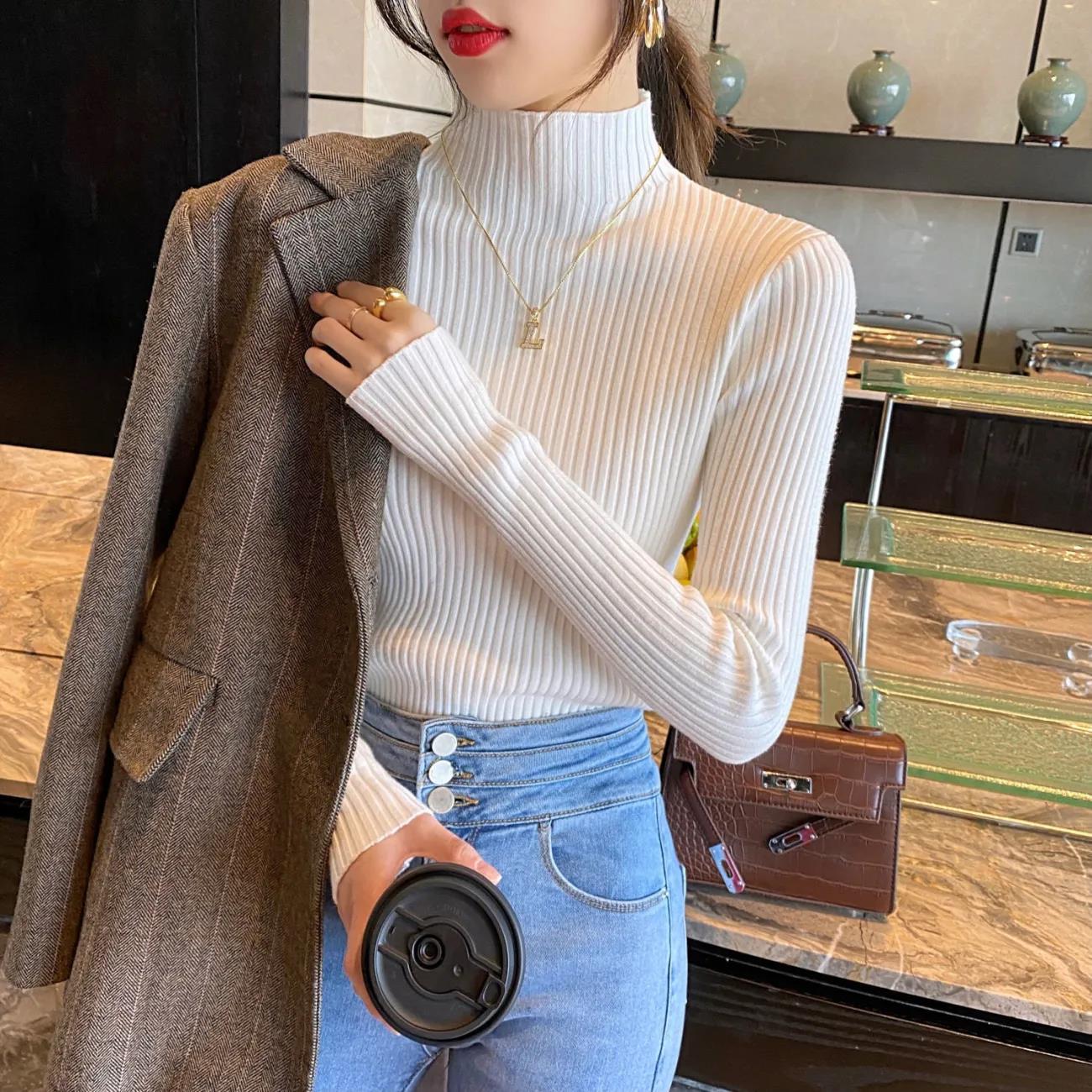 半高领内搭毛衣女打底衫秋冬2023新款百搭洋气修身贴身长袖针织衫