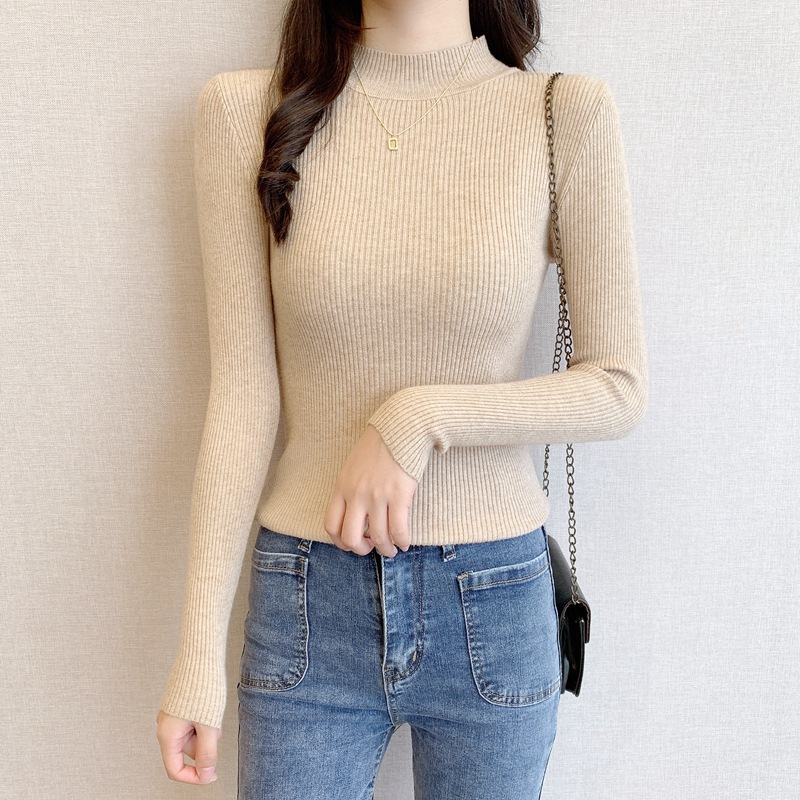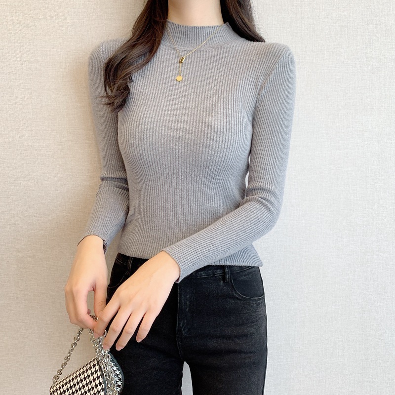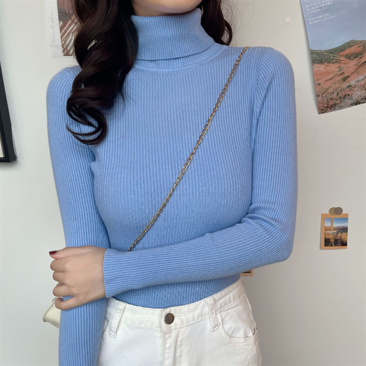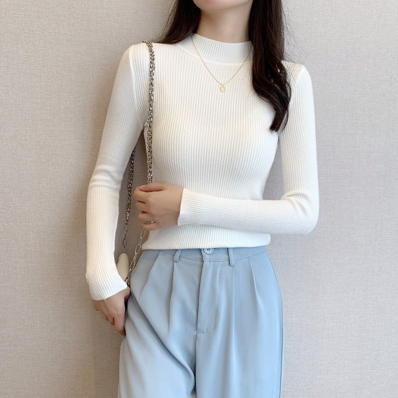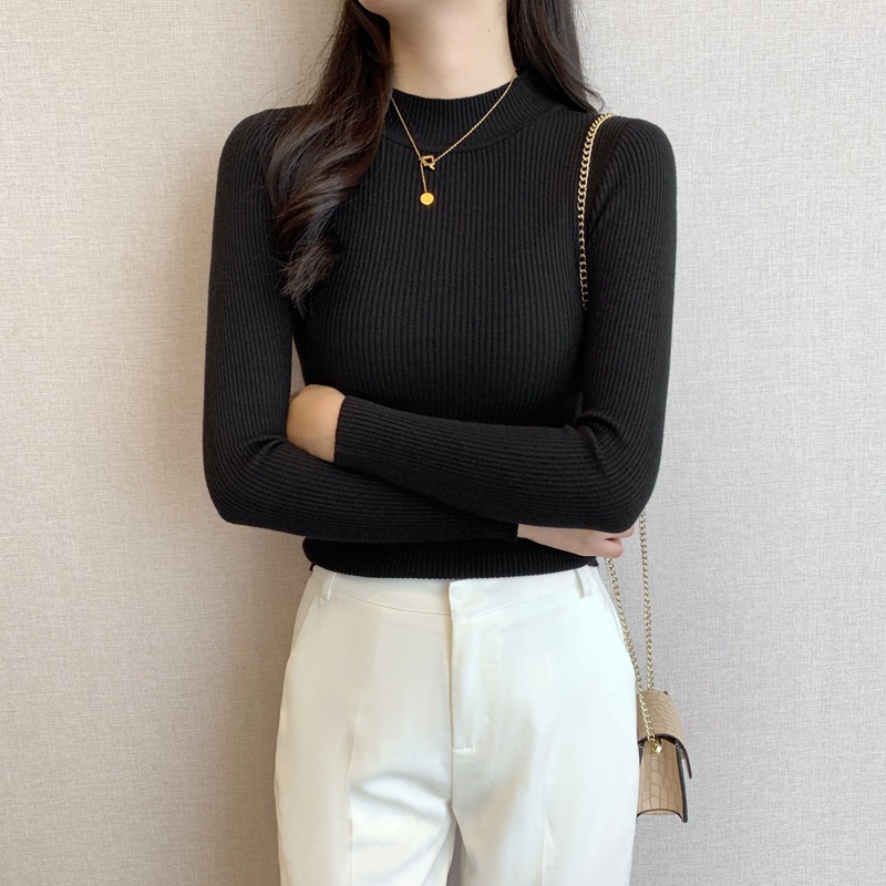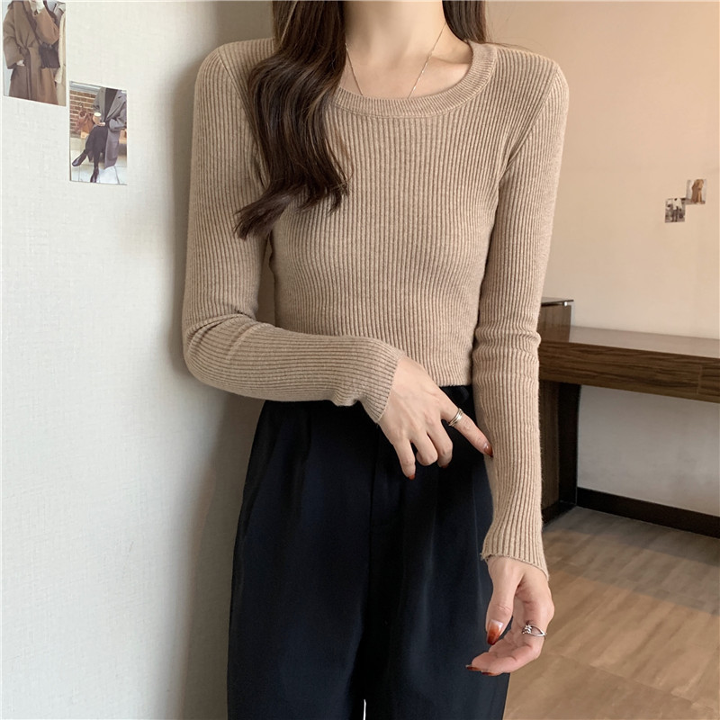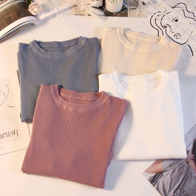 秋冬爆款毛衣内搭打底衫女螺纹圆领设计时尚洋气长袖针织衫女上衣