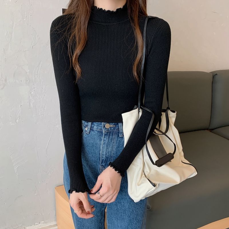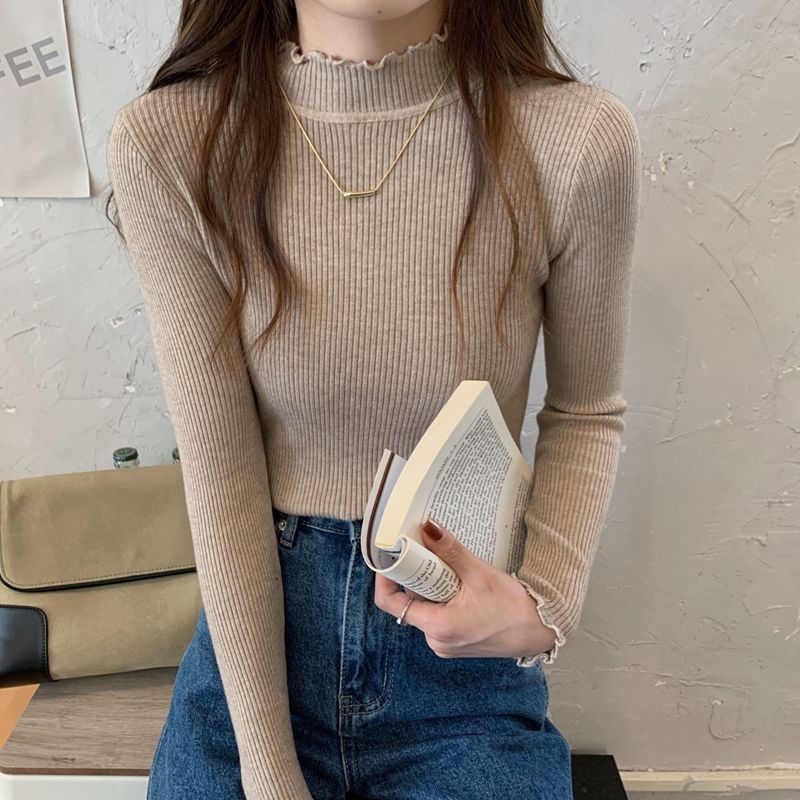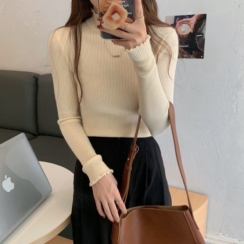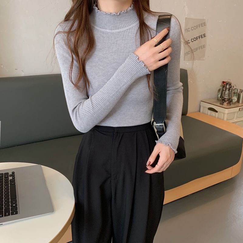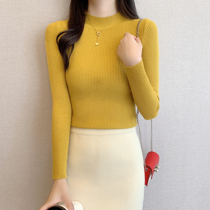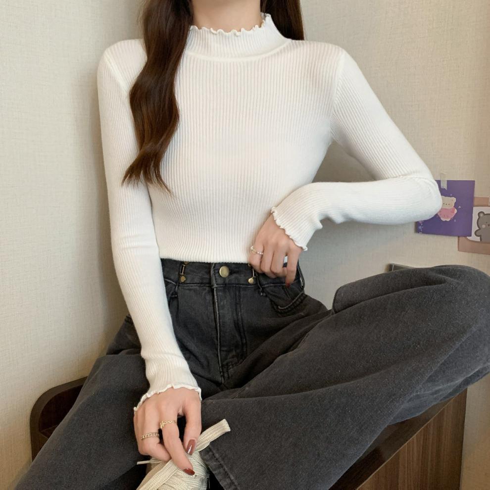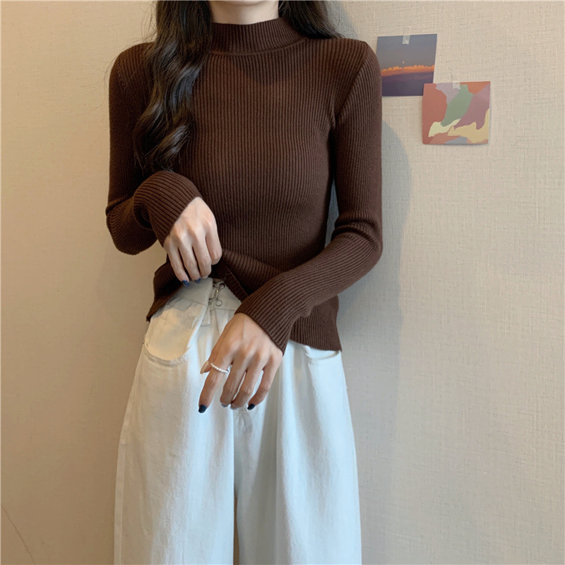 秋冬爆款毛衣内搭打底衫女螺纹圆领设计时尚洋气长袖针织衫女上衣