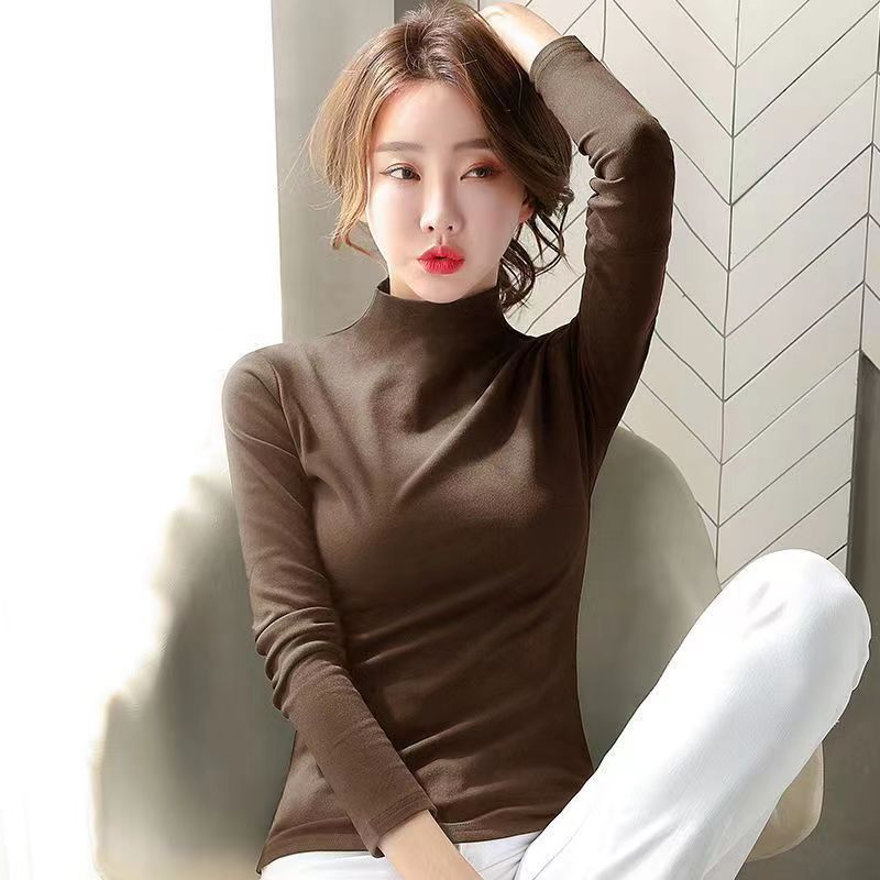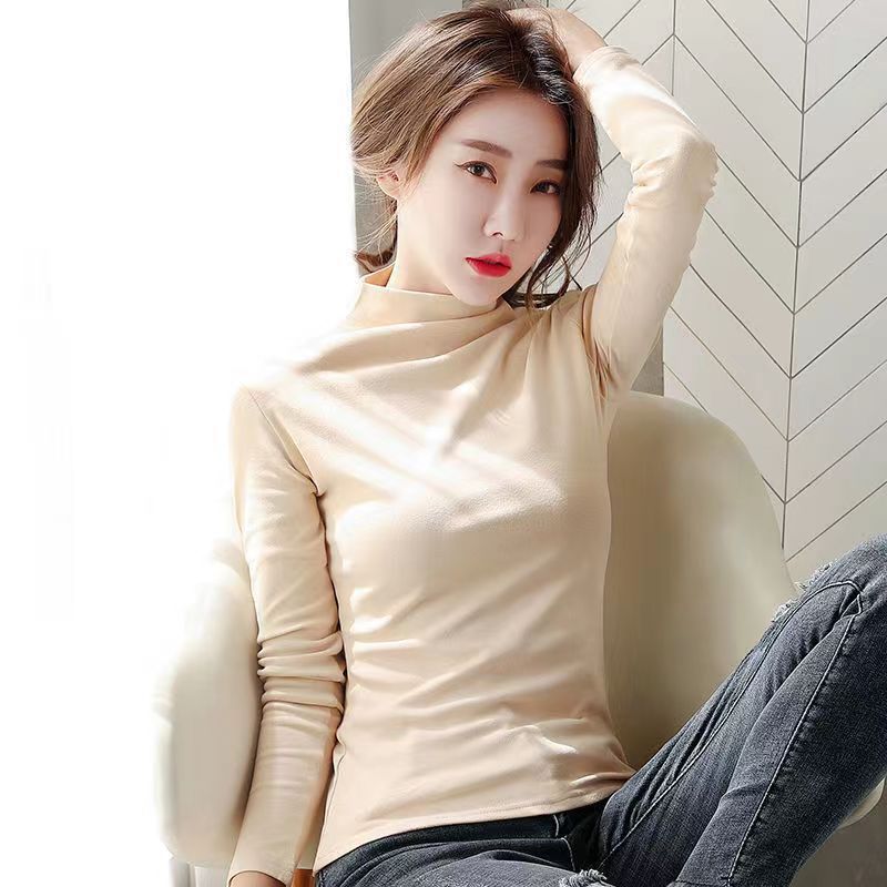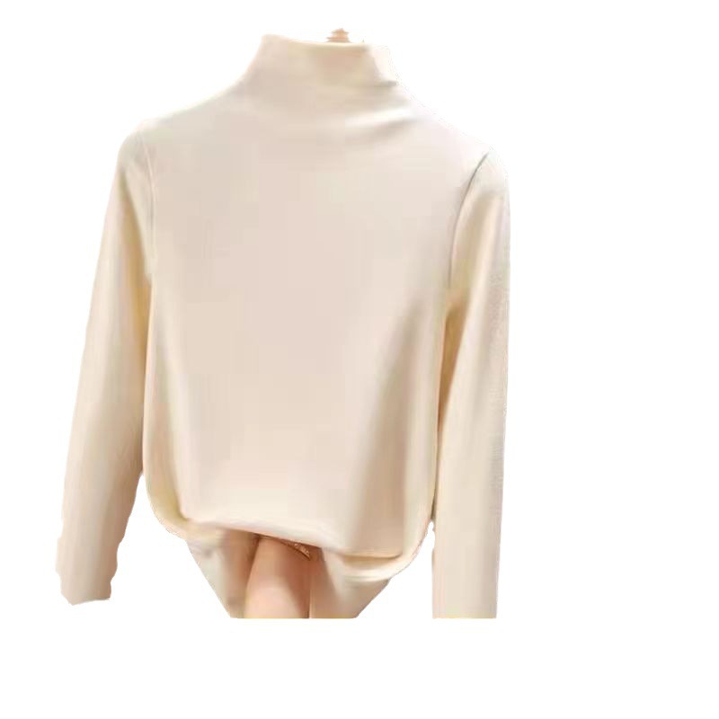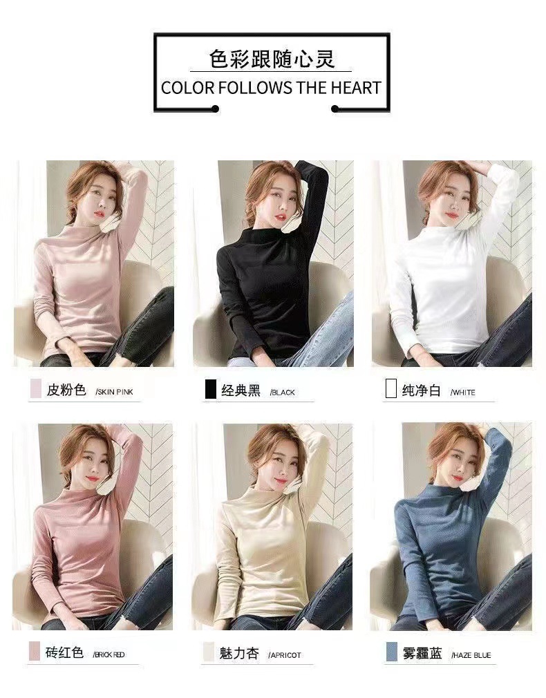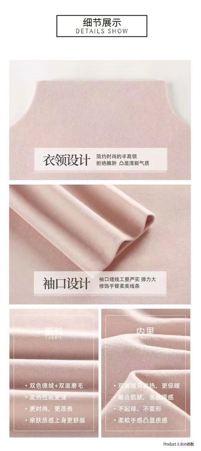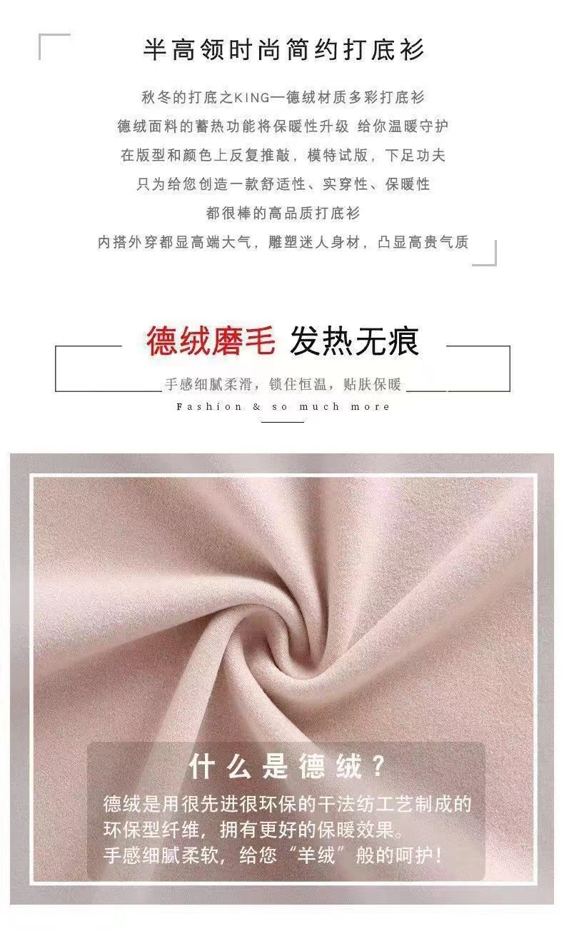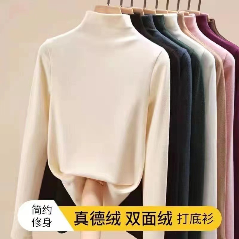 双面德绒半高领保暖打底衫女秋冬季加绒加厚软糯内搭贸易显瘦上衣