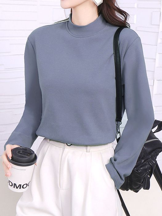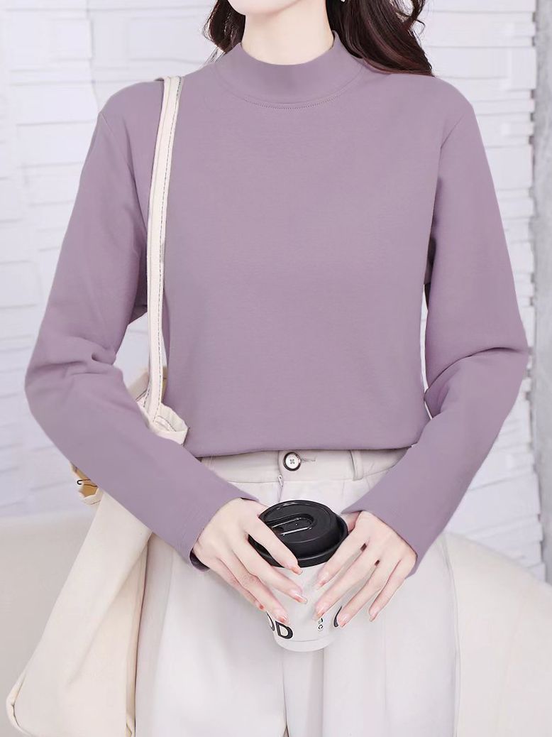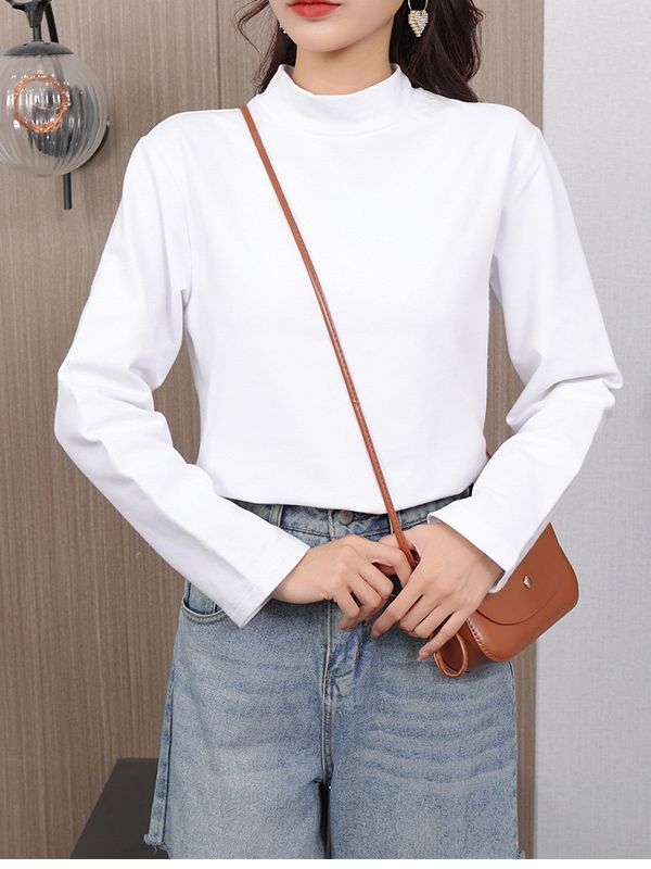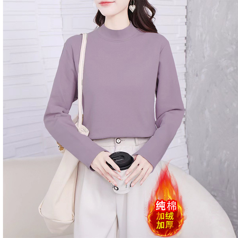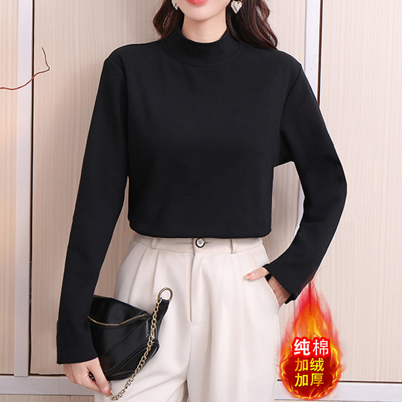 厂家直销批发半高领打底衫女弹力纯棉加绒加厚显高显瘦修身女上衣