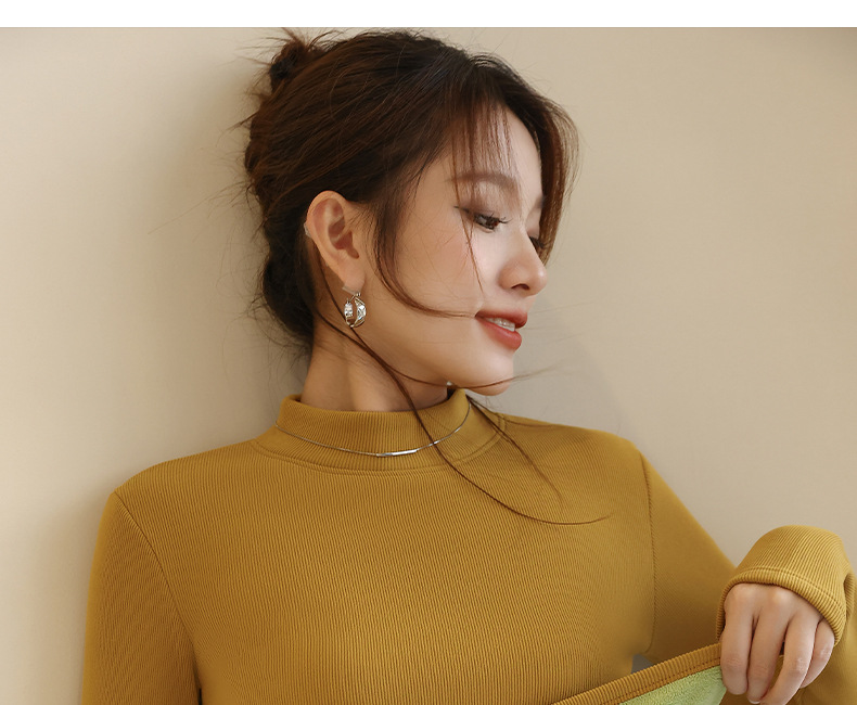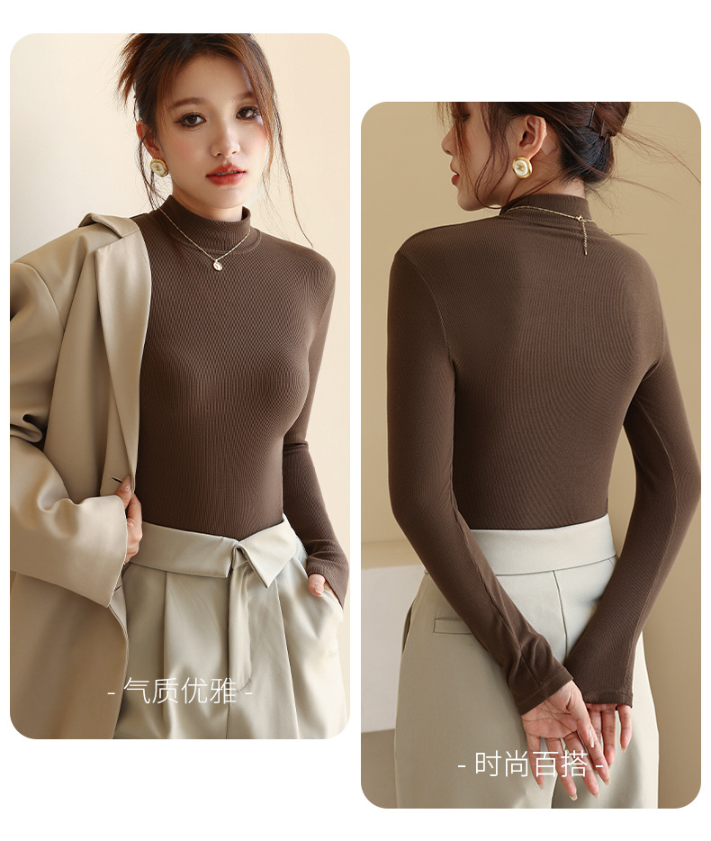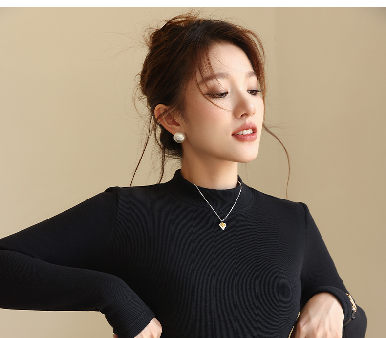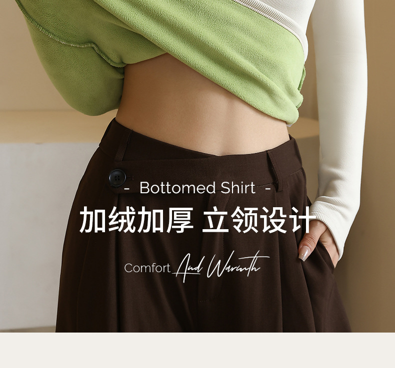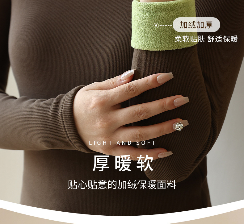 加绒打底衫女半高领修身显瘦t恤秋冬季加厚2023新款内搭长袖上衣