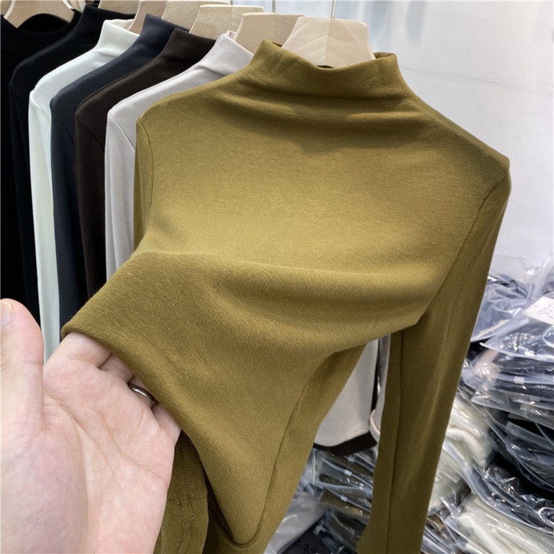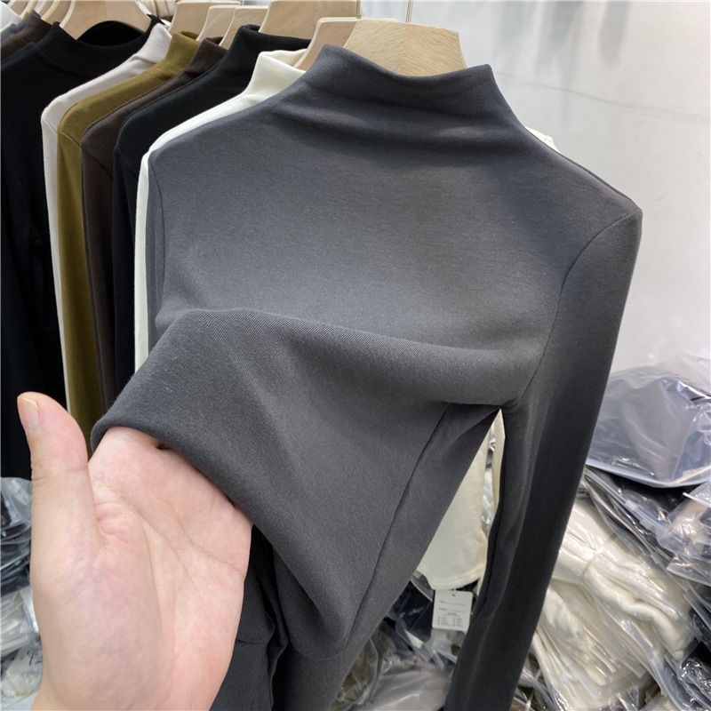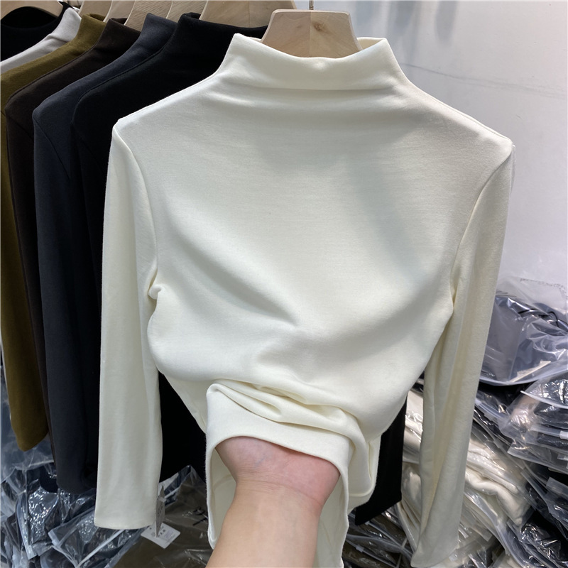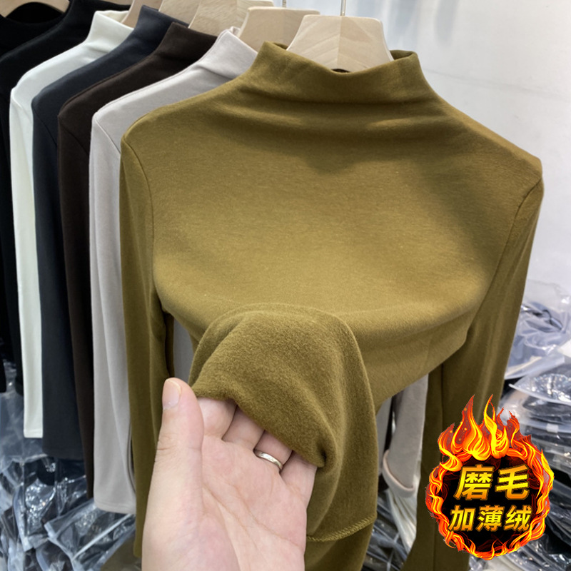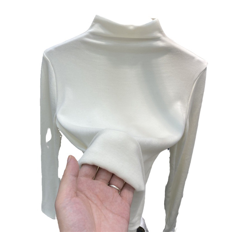 秋冬新款加绒加厚半高领打底衫女士高弹力莫代尔保暖内搭长袖上衣