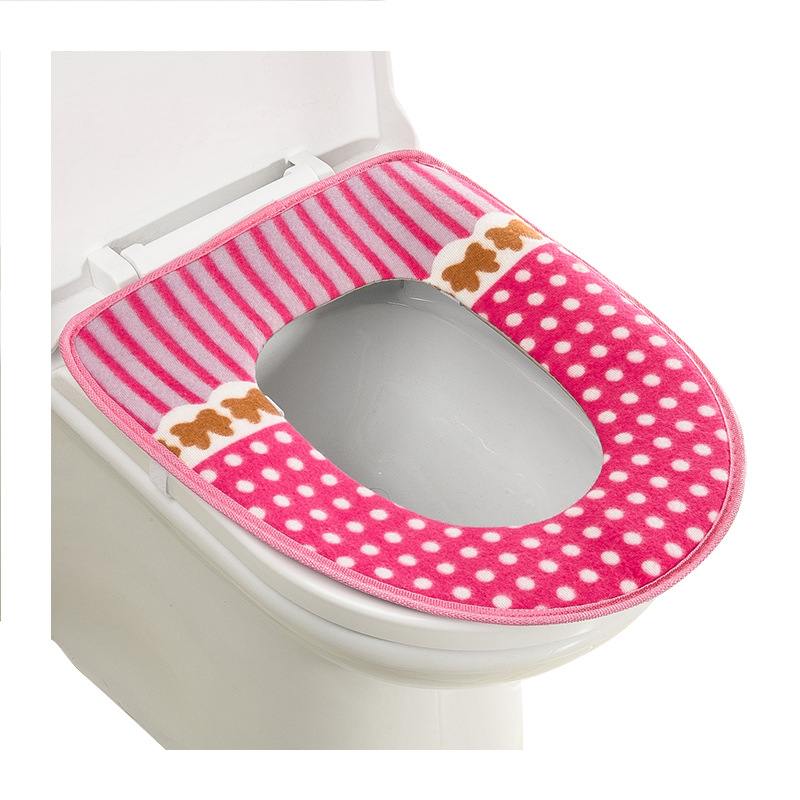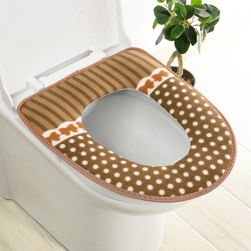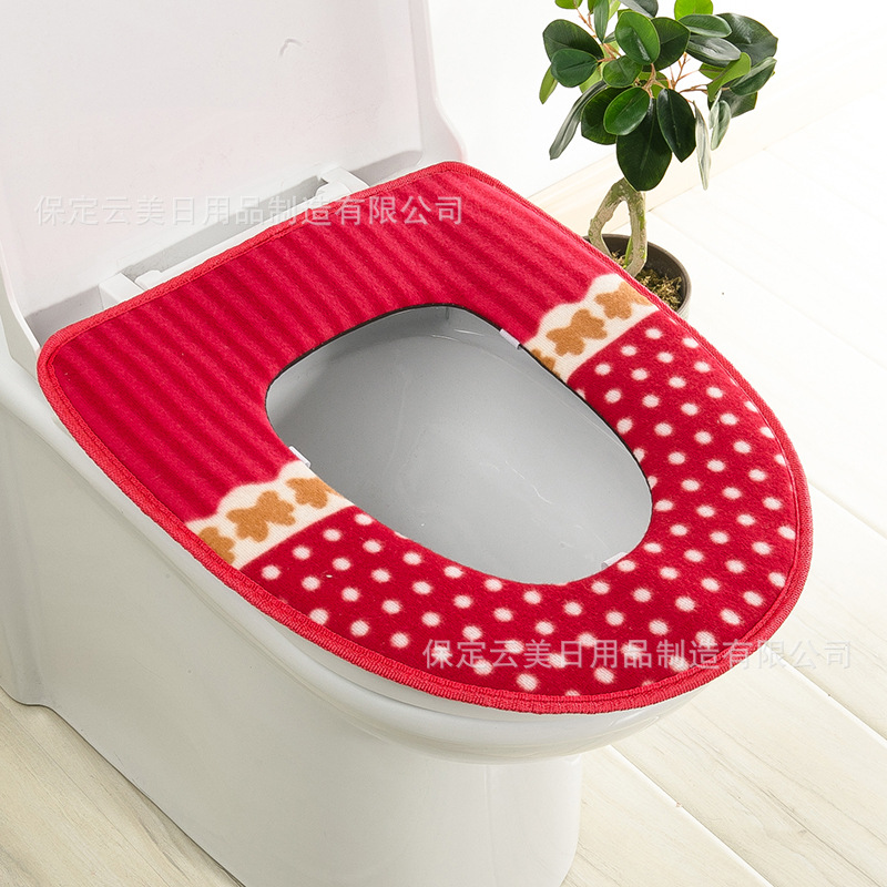 厂家直销通用冬季加厚马桶垫圆点拉毛绒马桶坐垫坐便套粘扣马桶圈
