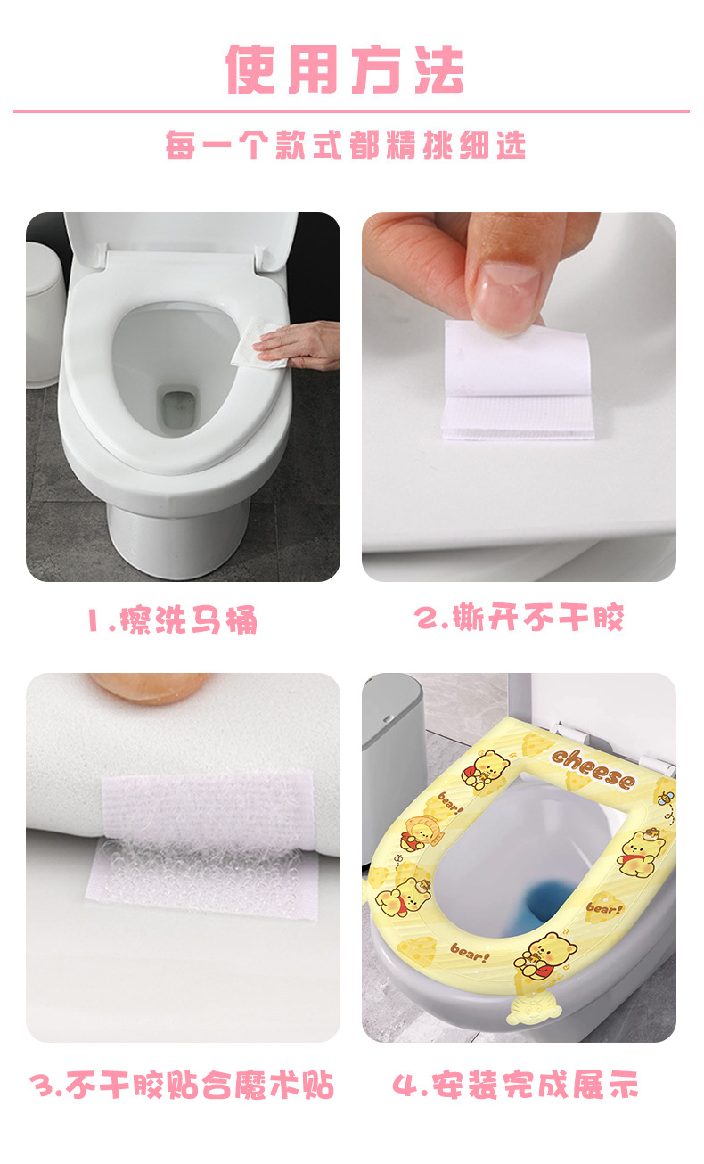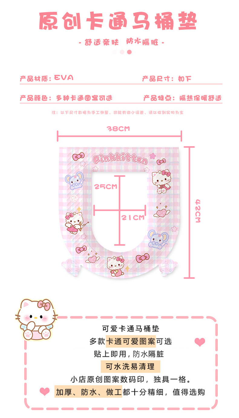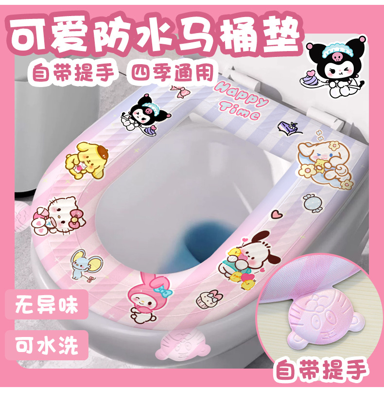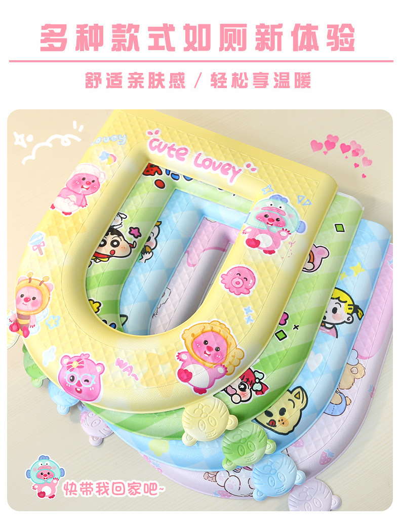 卡通新款防水马桶坐垫网红可水洗四季通用大U型坐便垫家用粘贴eva