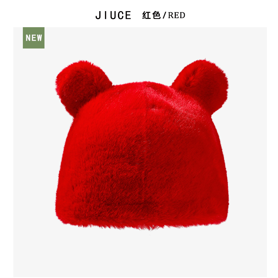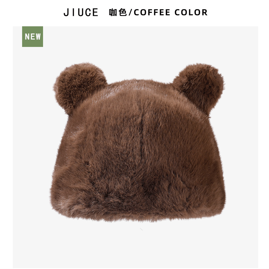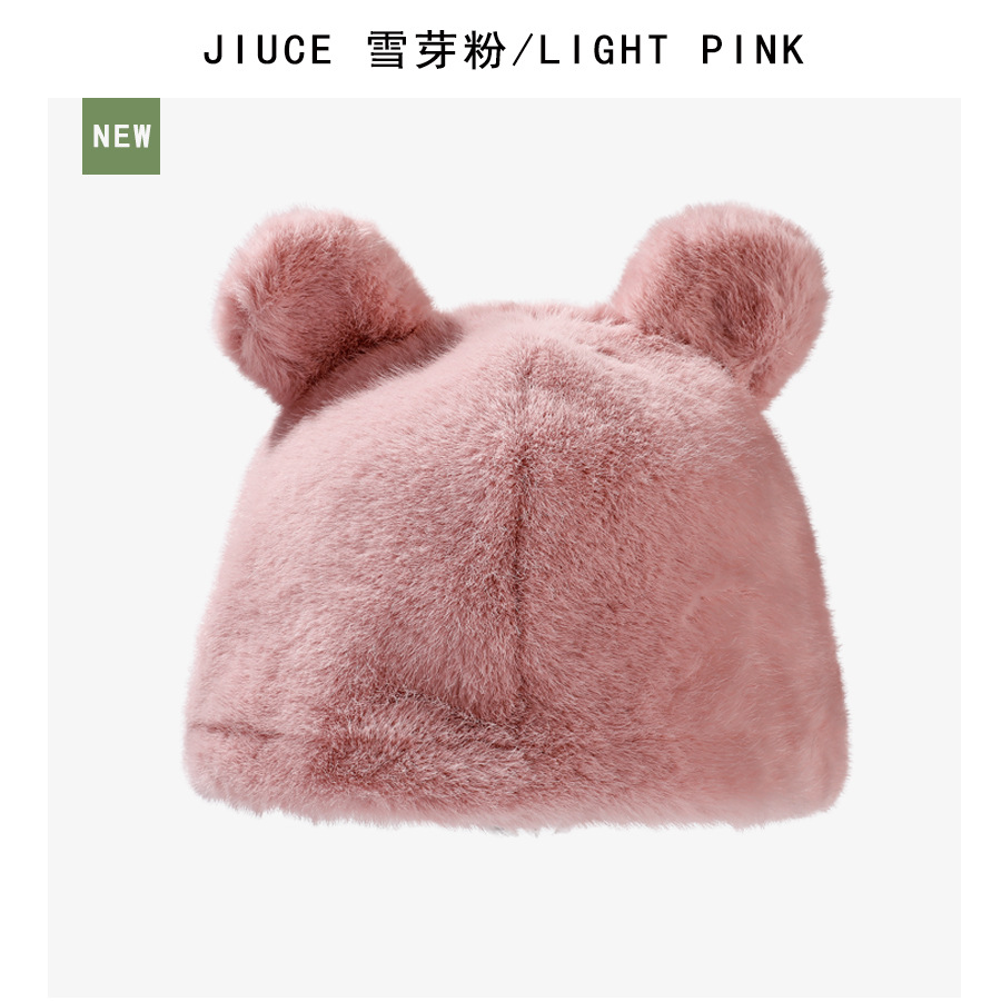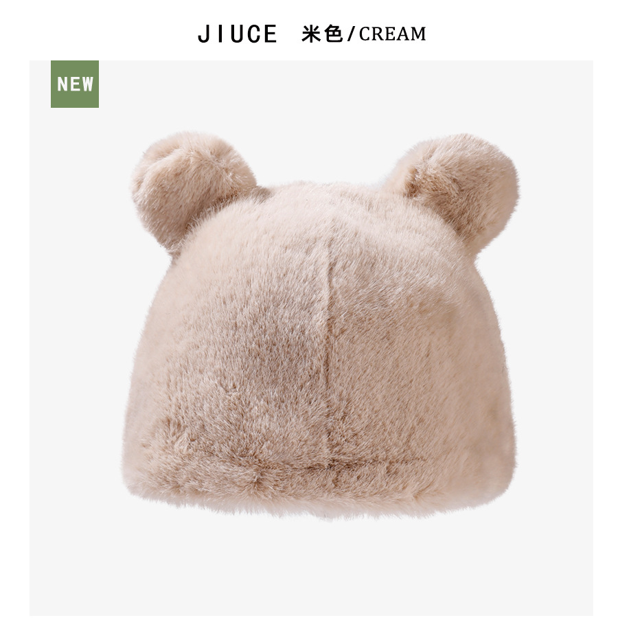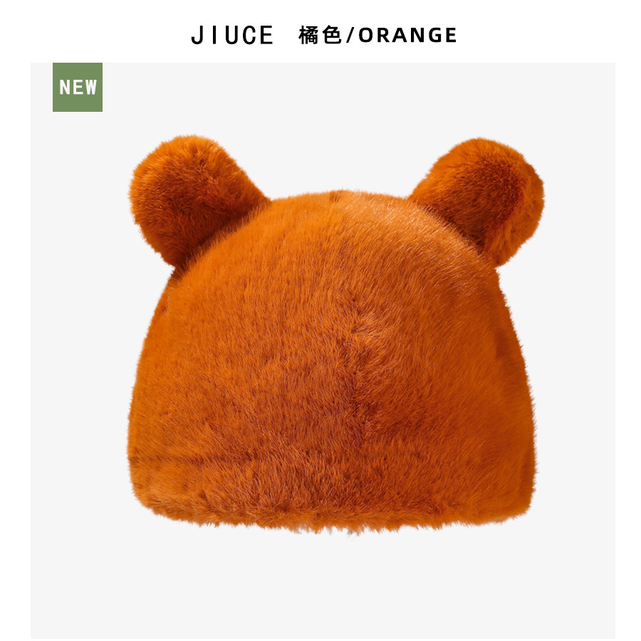 韩版甜美减龄小熊耳朵毛绒帽秋冬新款加厚保暖防风护耳套头帽子女