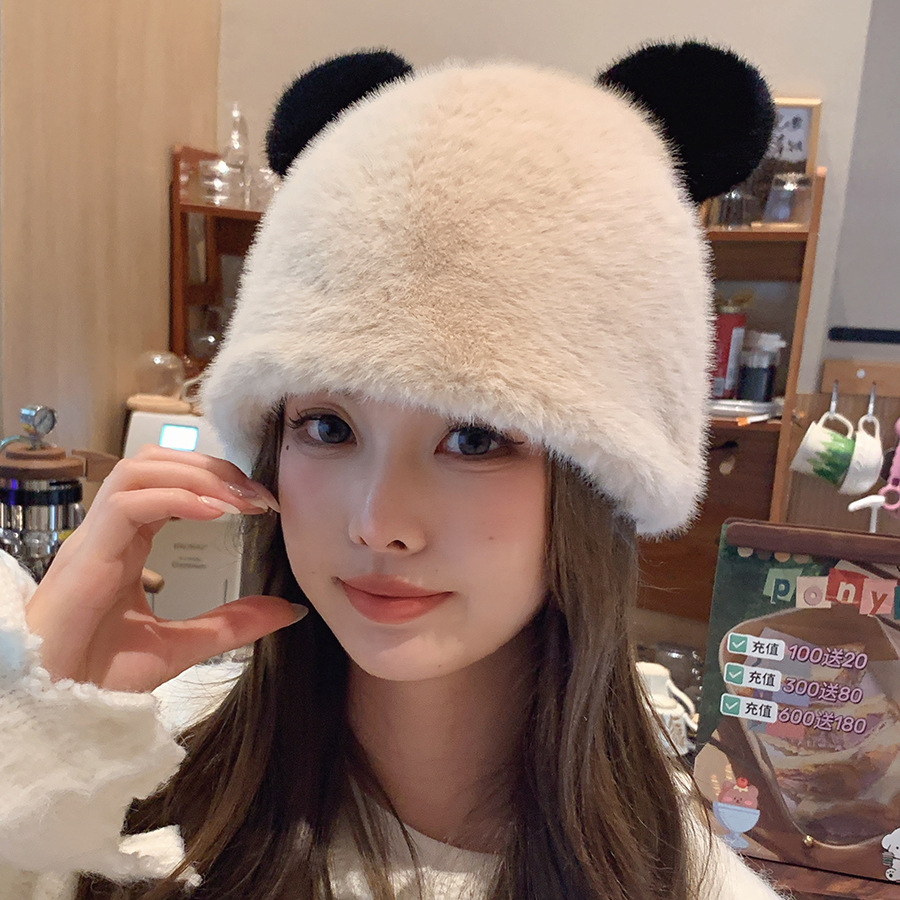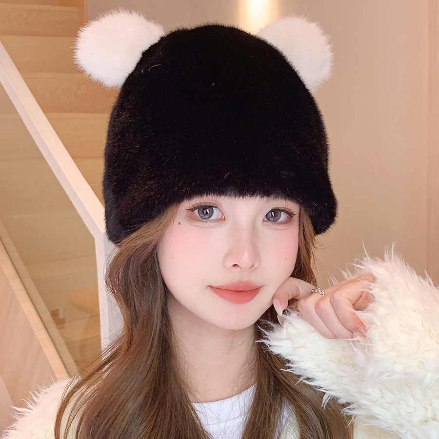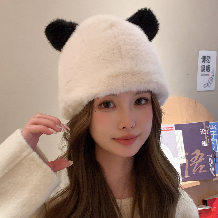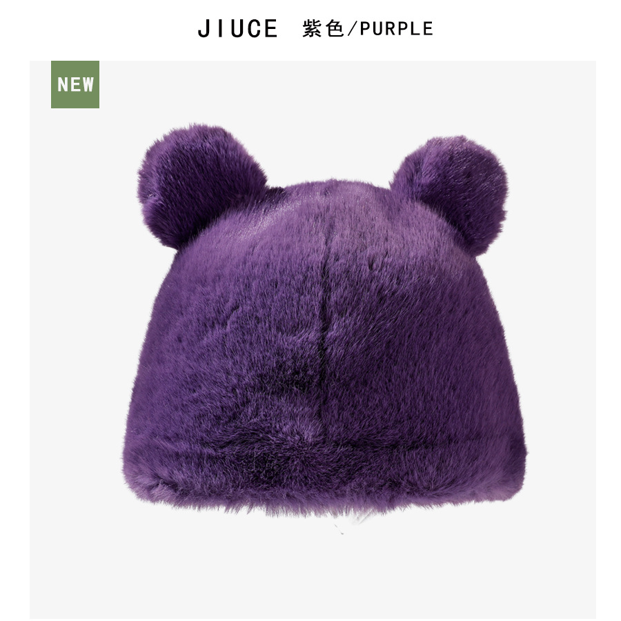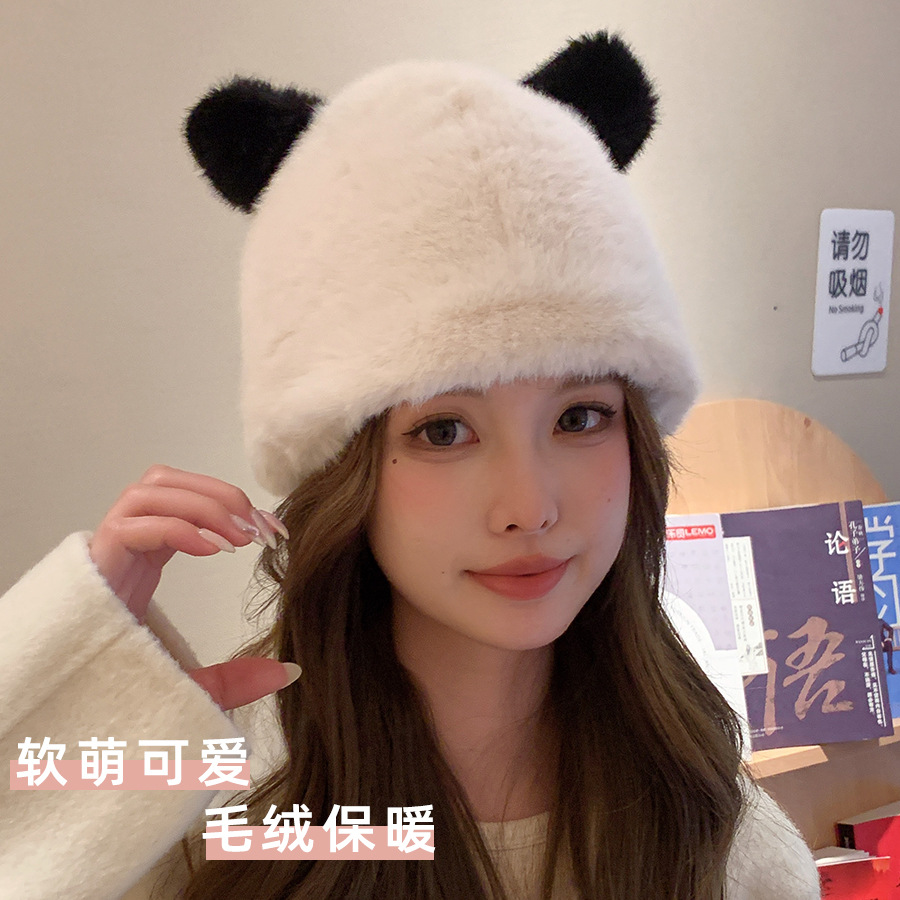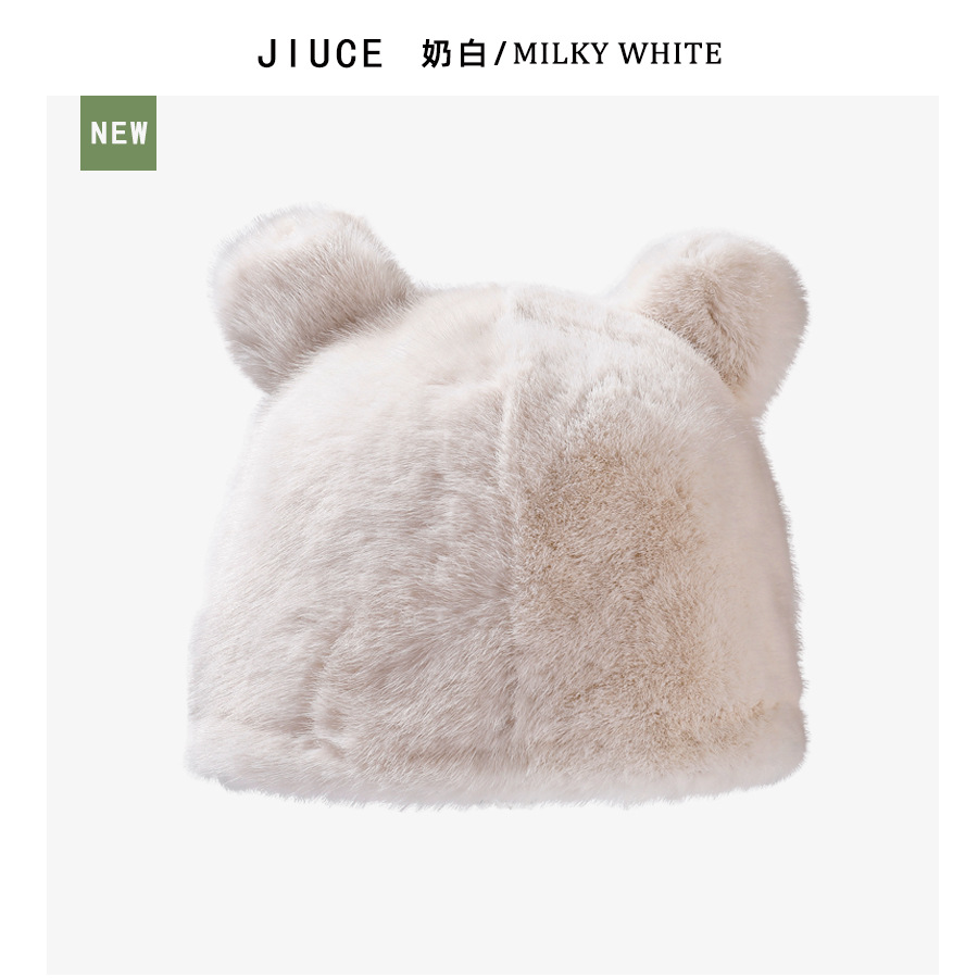 韩版甜美减龄小熊耳朵毛绒帽秋冬新款加厚保暖防风护耳套头帽子女