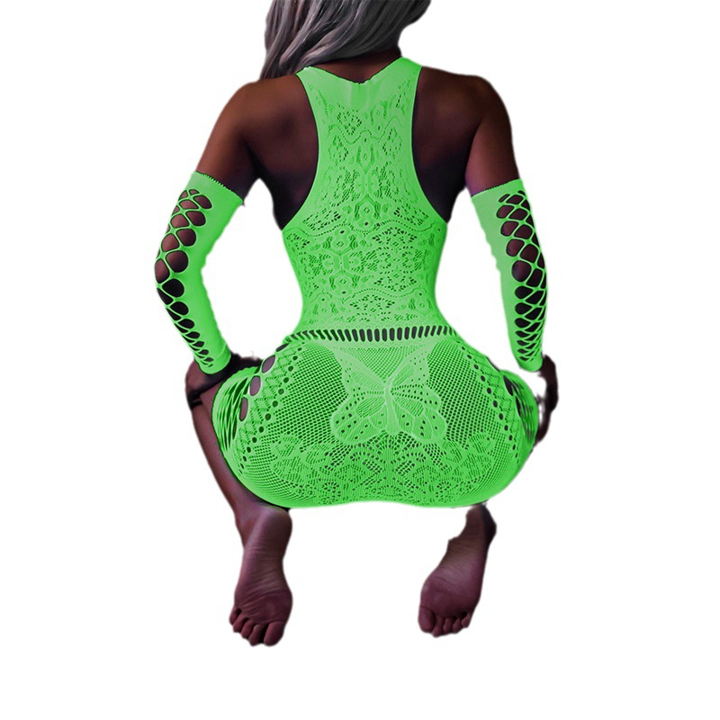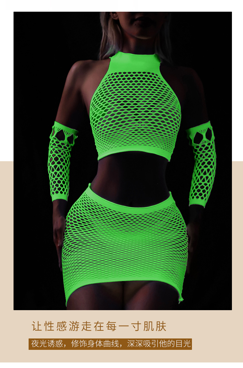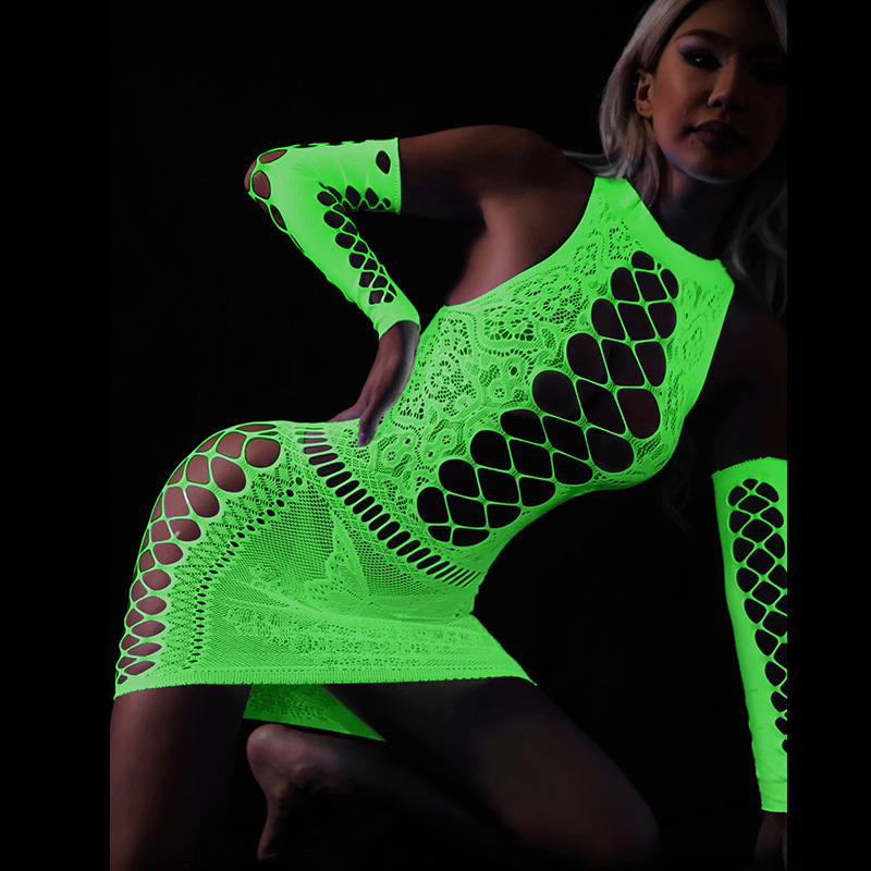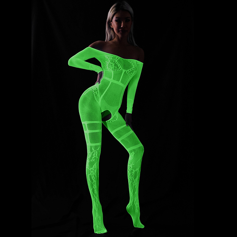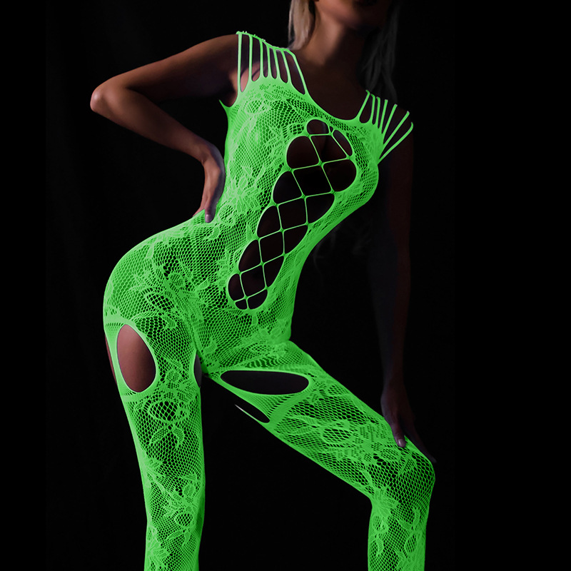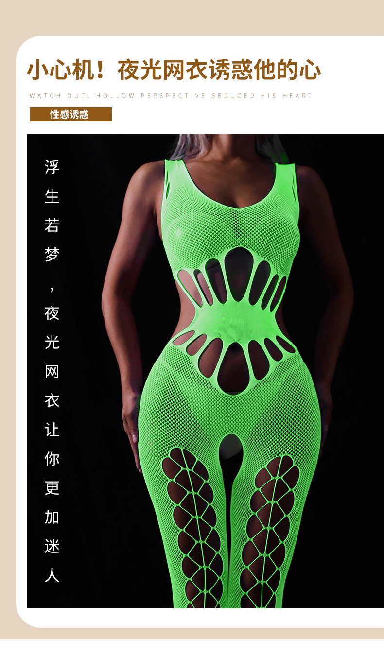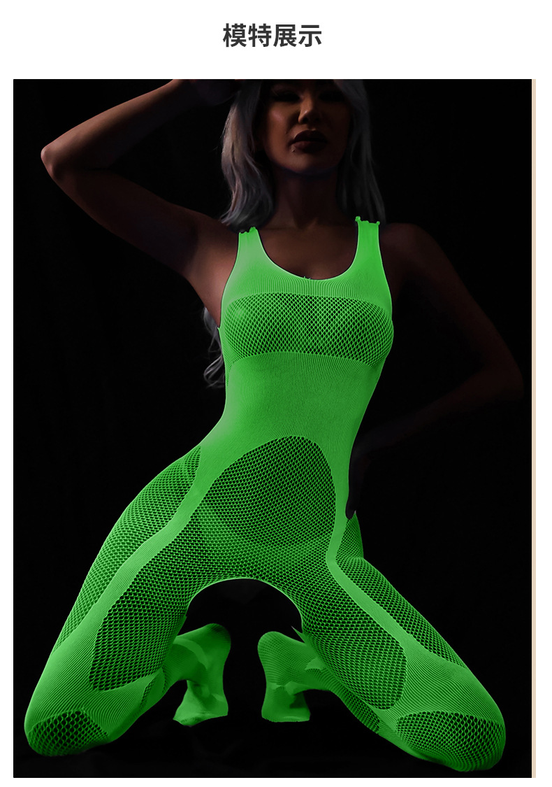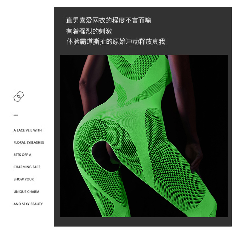 欧美跨境情趣内衣大码外贸夜光调情网衣可撕性感镂空发光连体袜