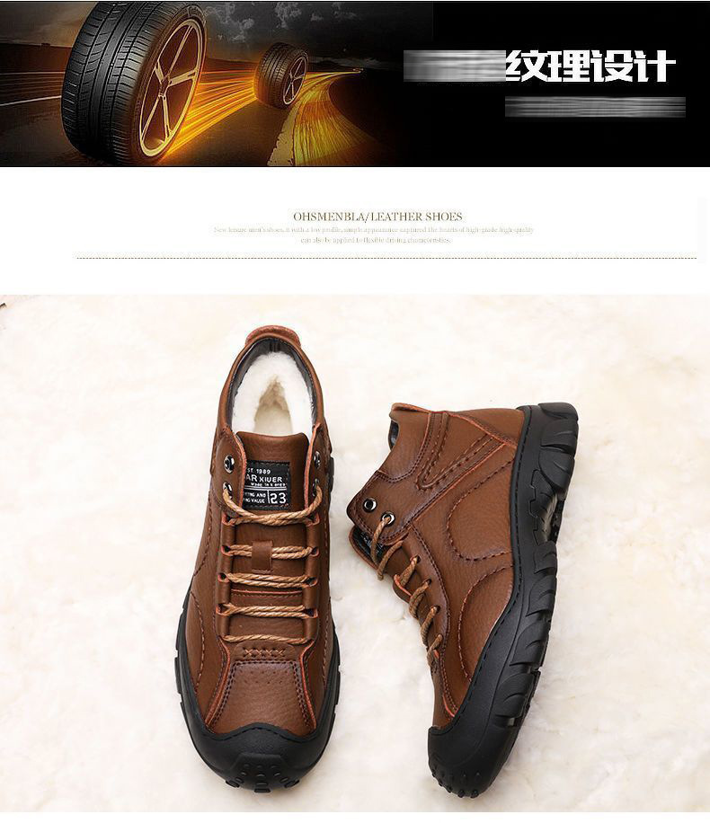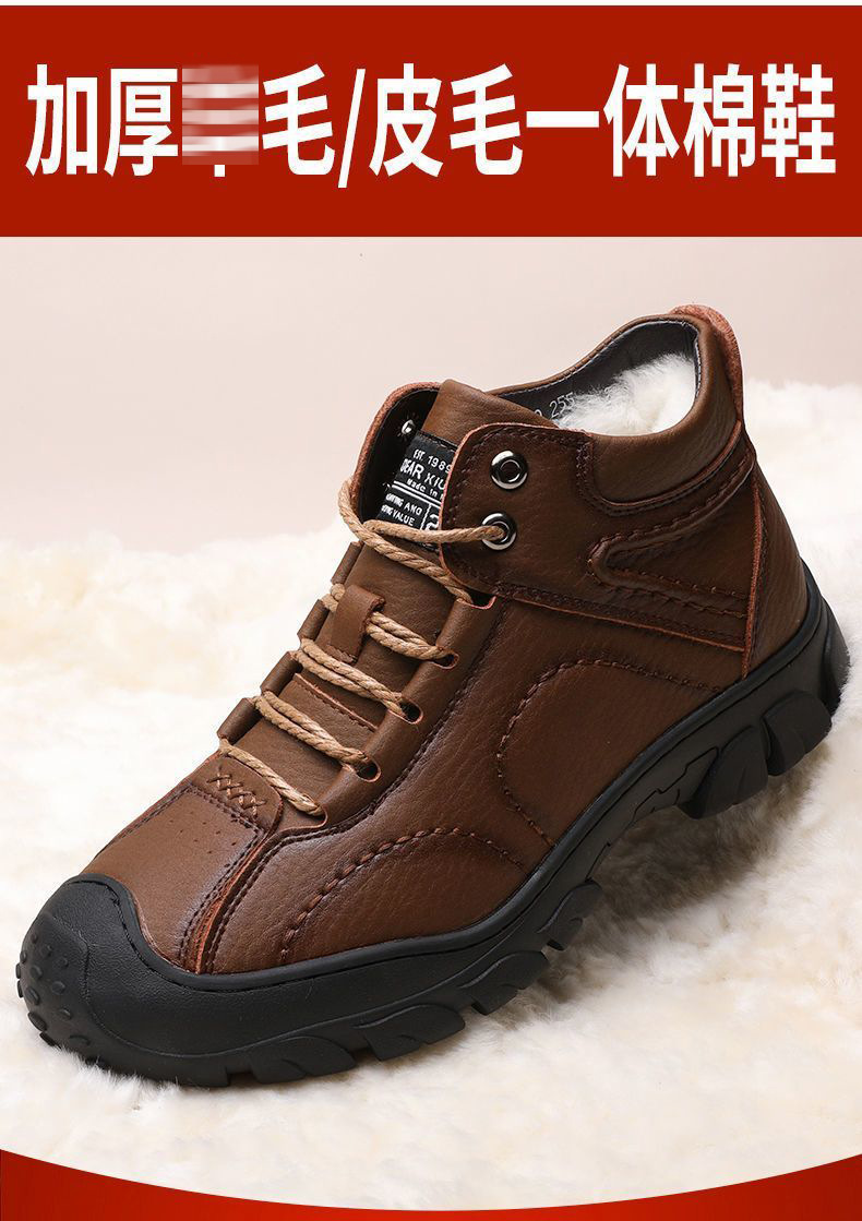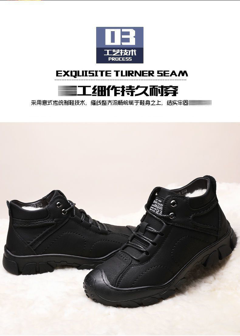 秋冬新款皮鞋加绒加厚防水休闲男鞋男士高帮皮鞋户外运动雪地靴