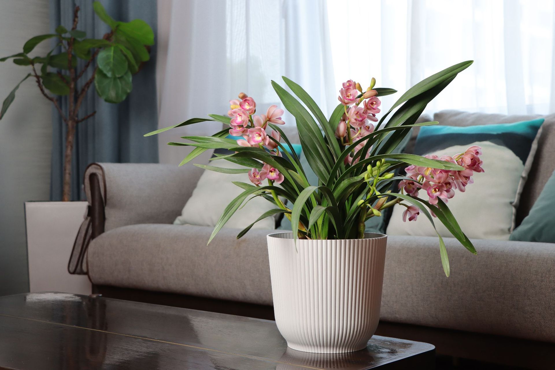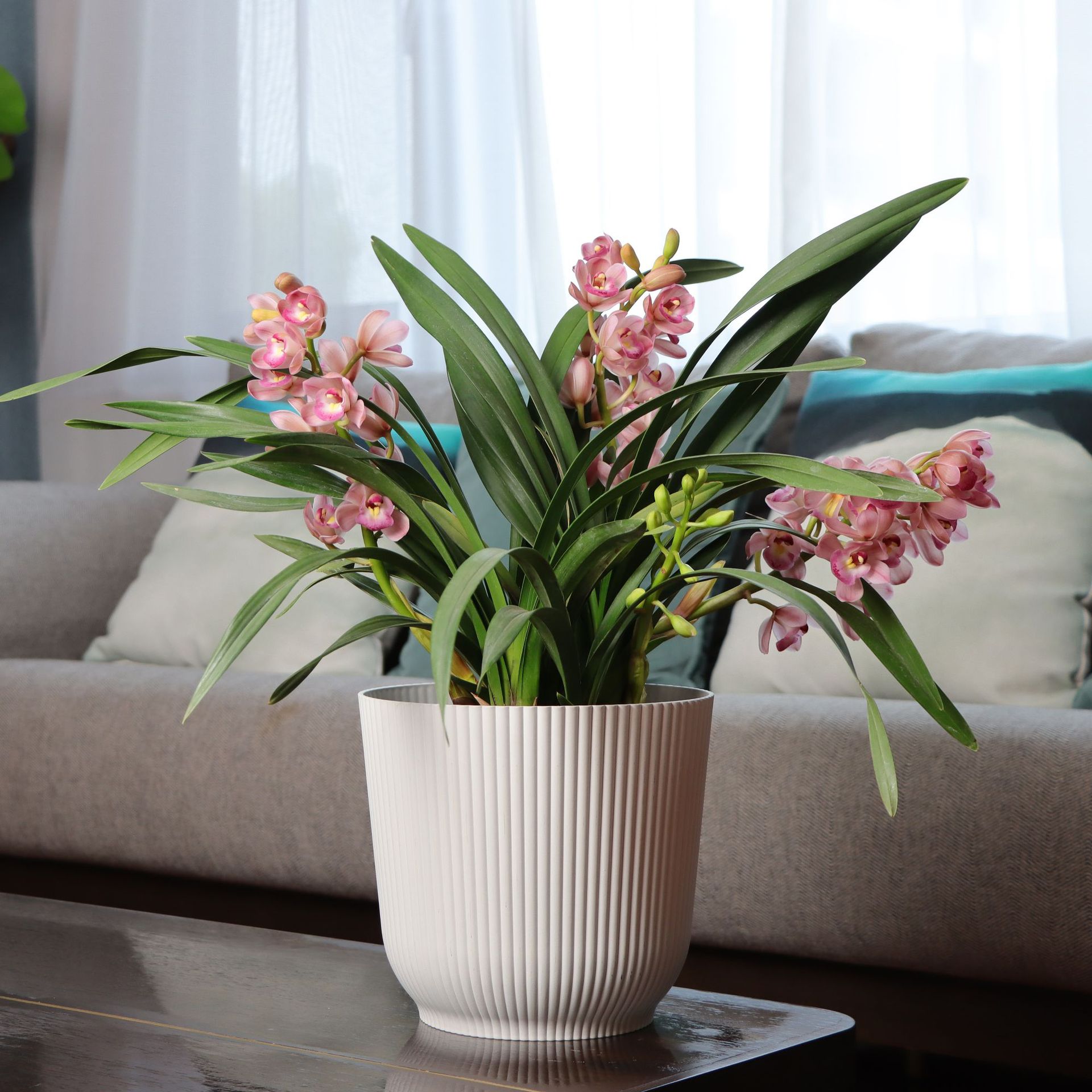 家居装饰兰花盆栽现代竖纹阳台桌面办公室酒店北欧塑料多色花盆