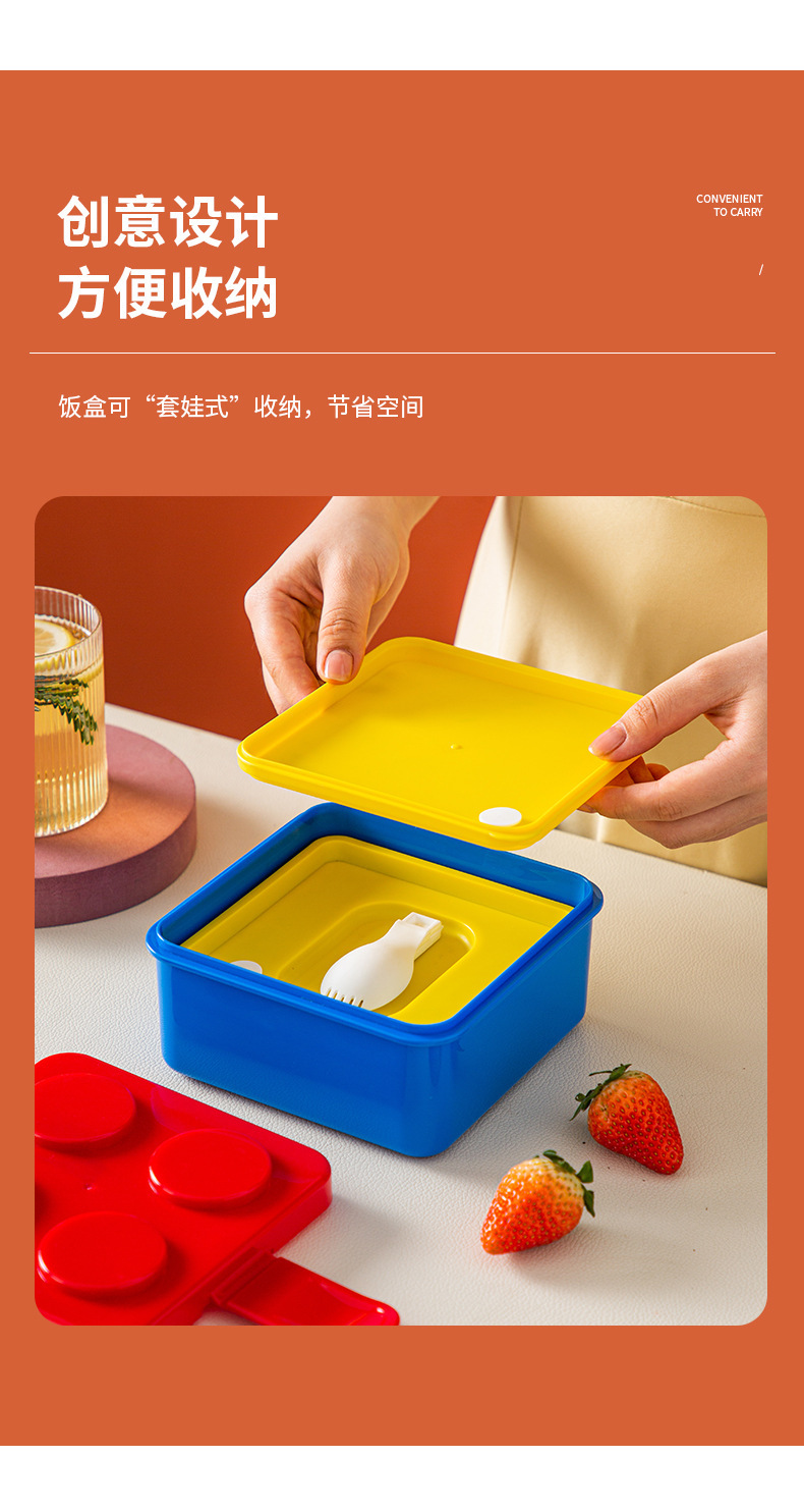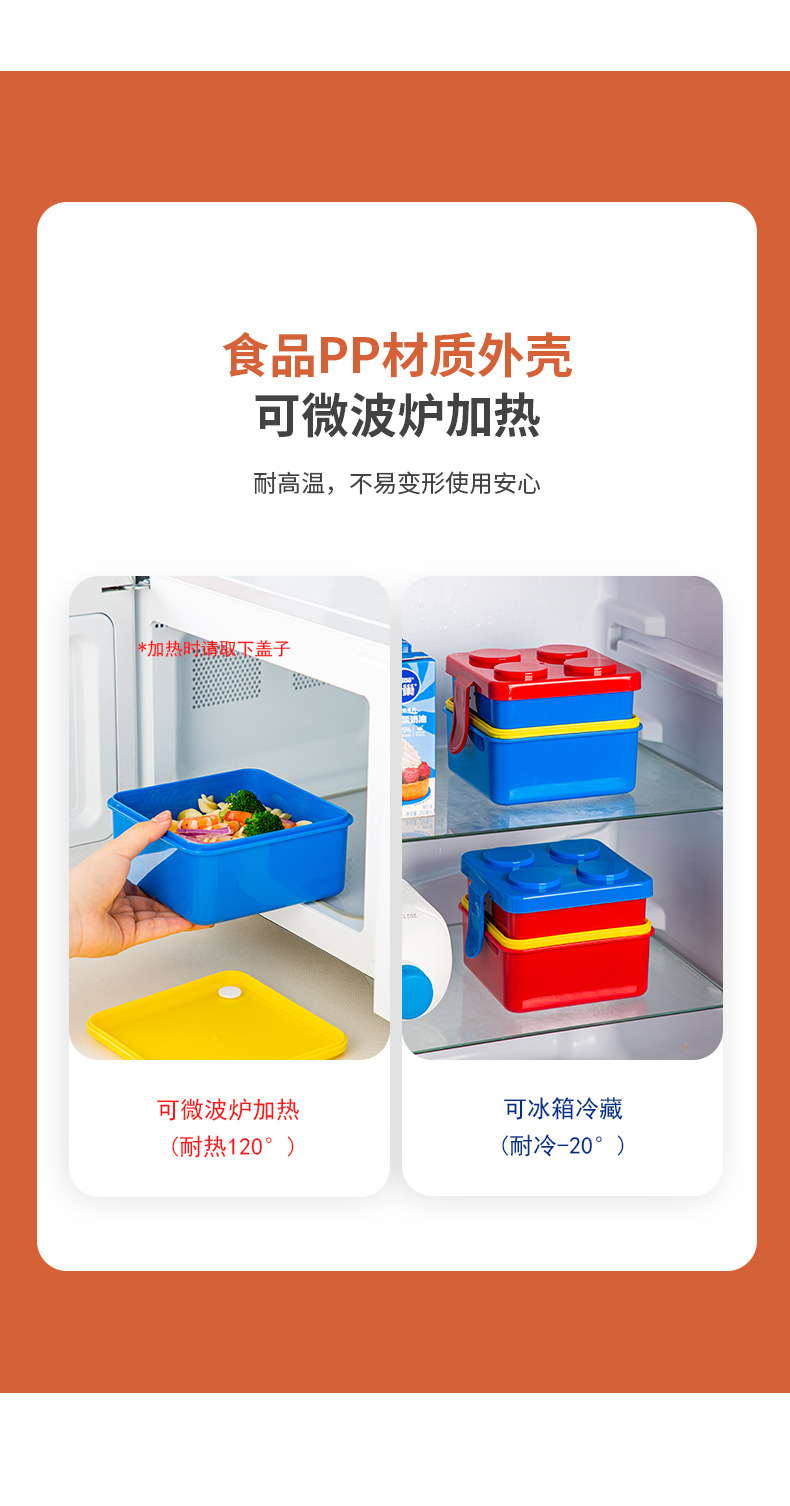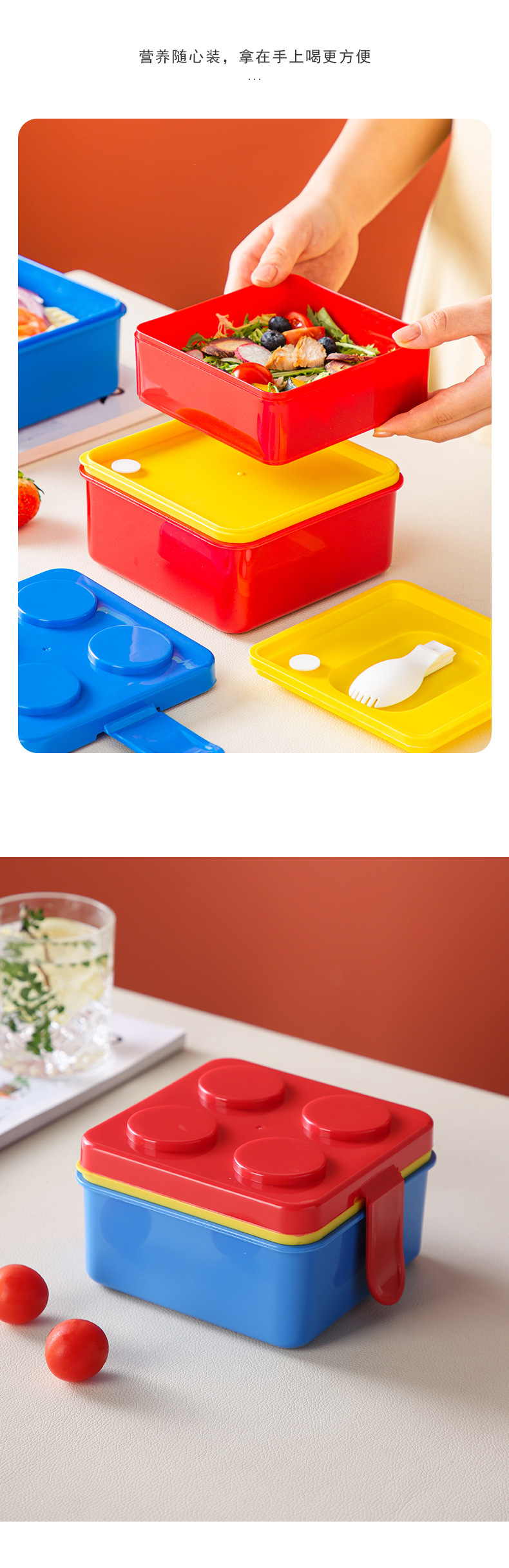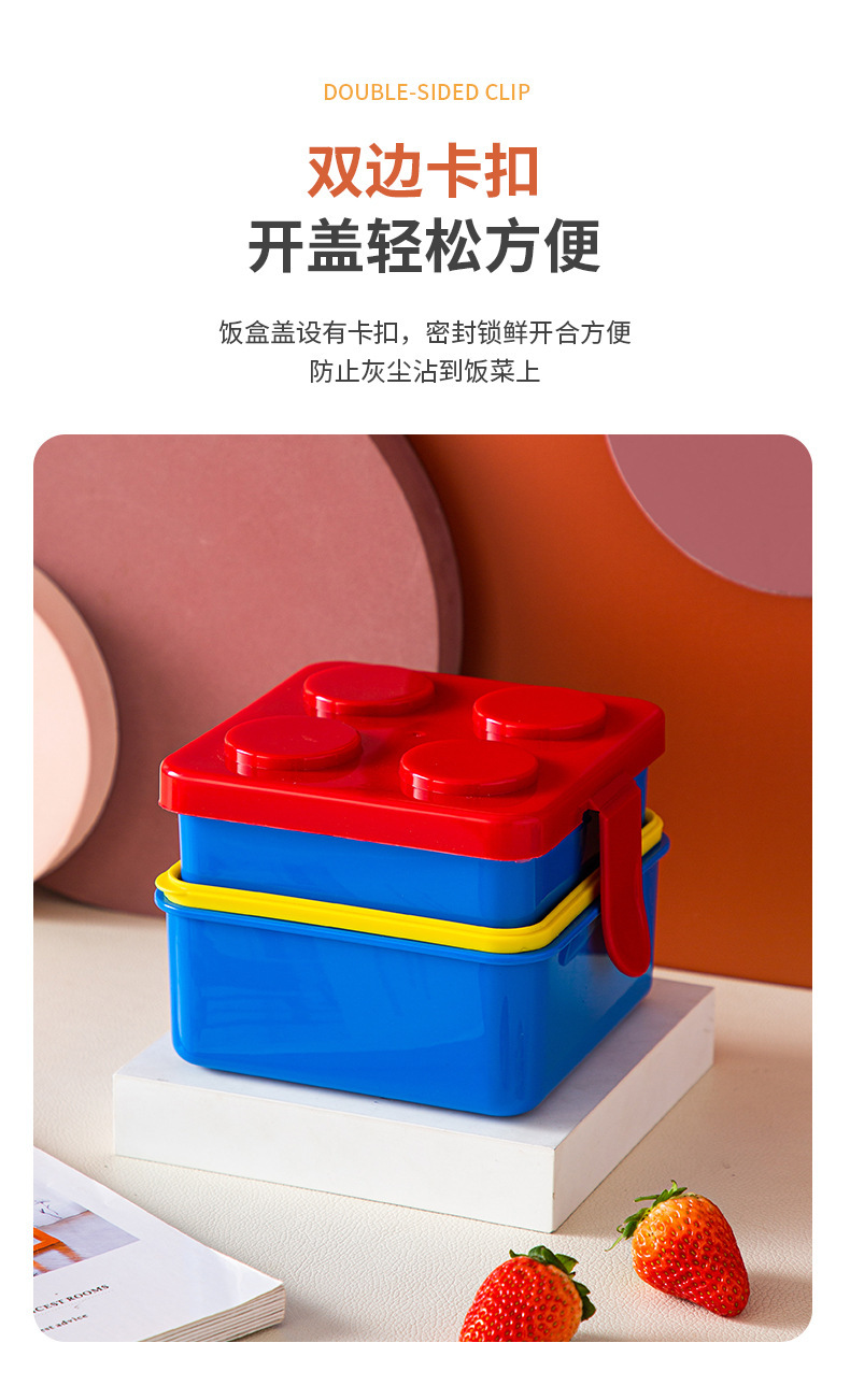 创意积木方形双层饭盒户外野餐水果沙拉盒可微波学生午餐盒便当盒