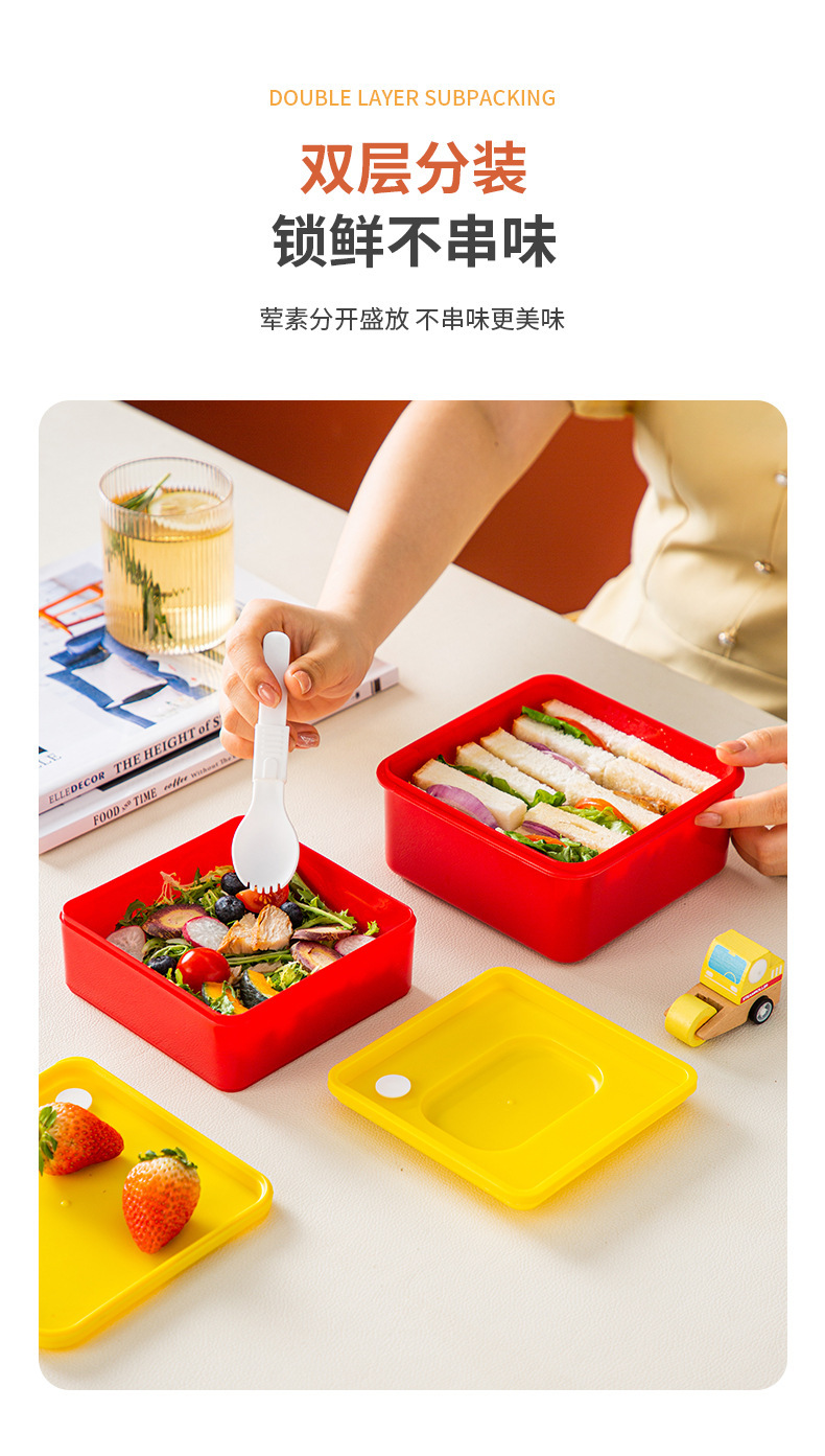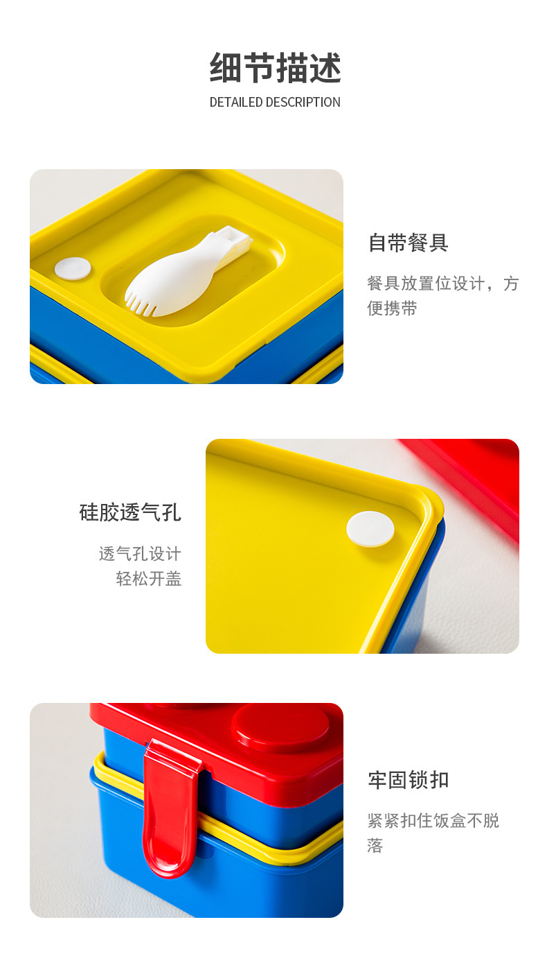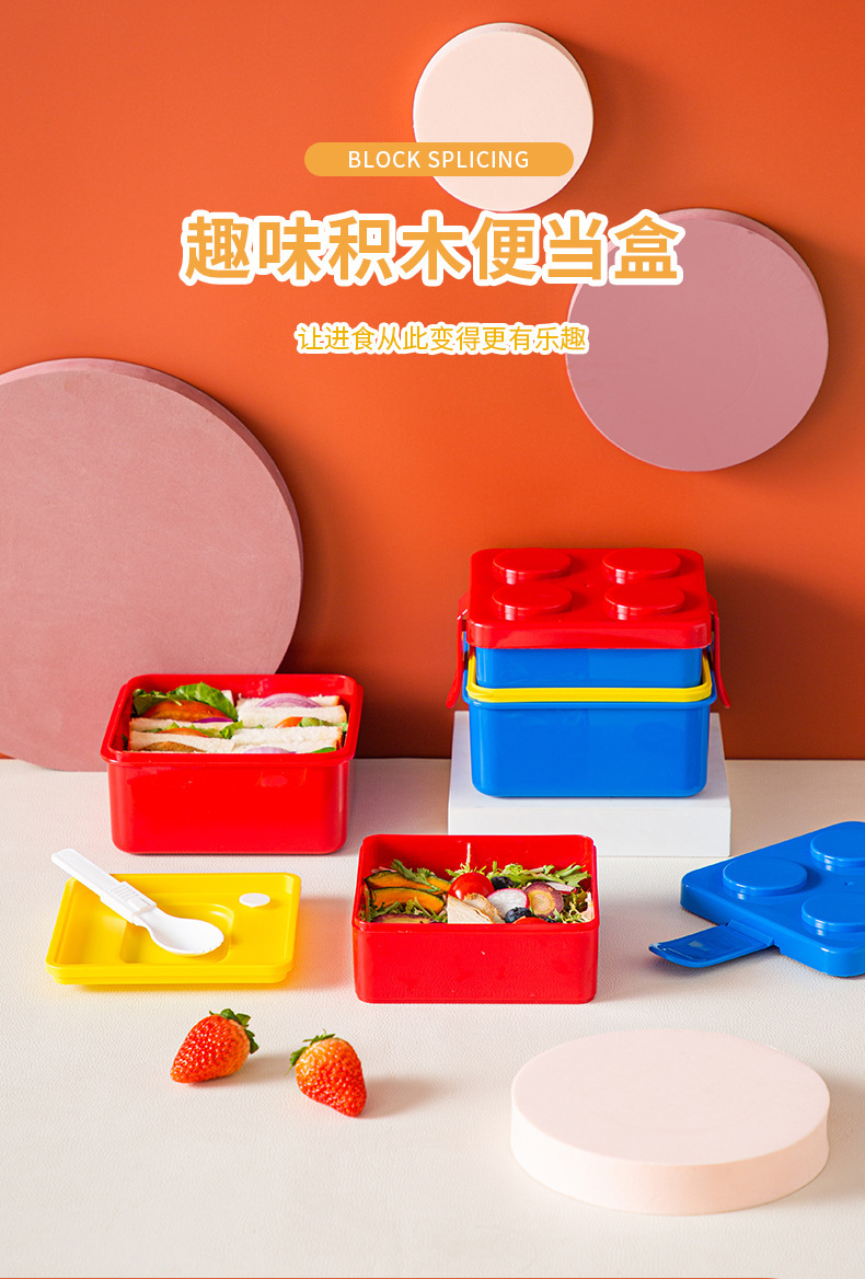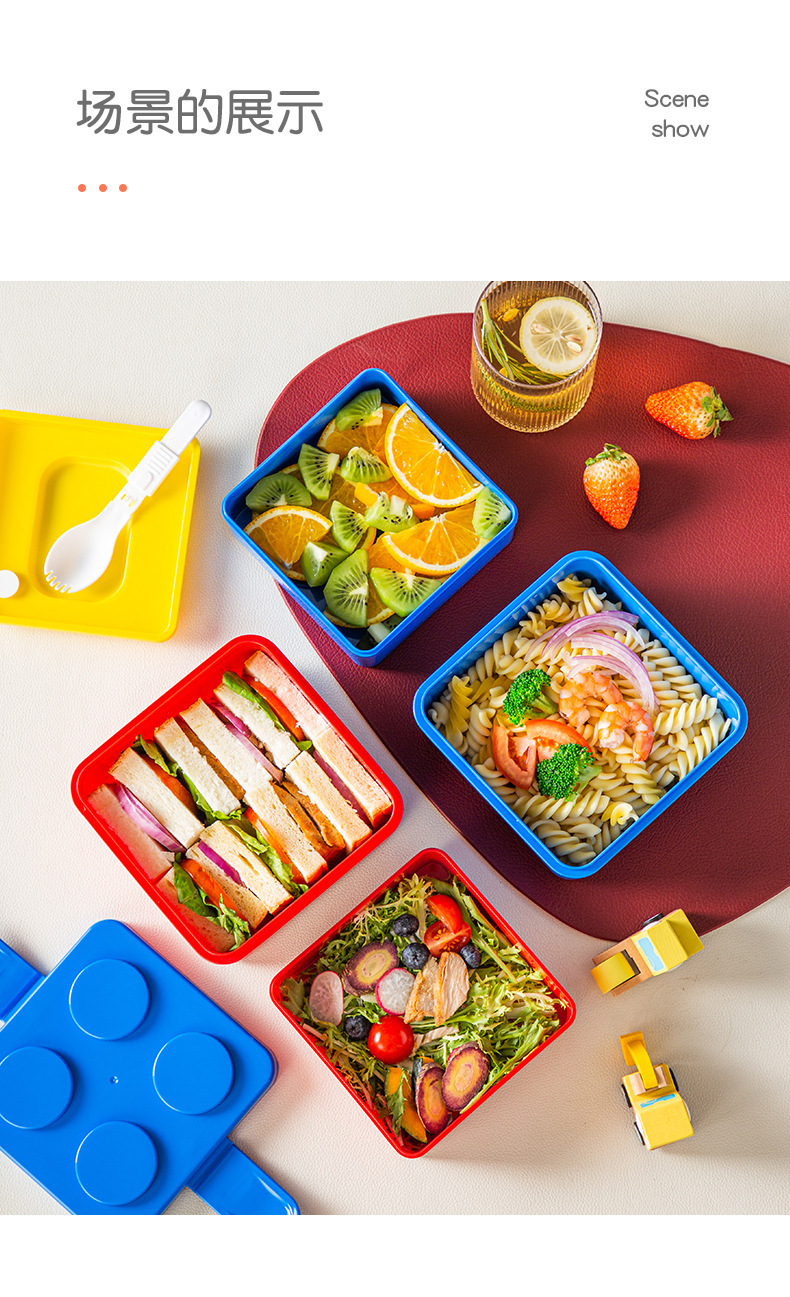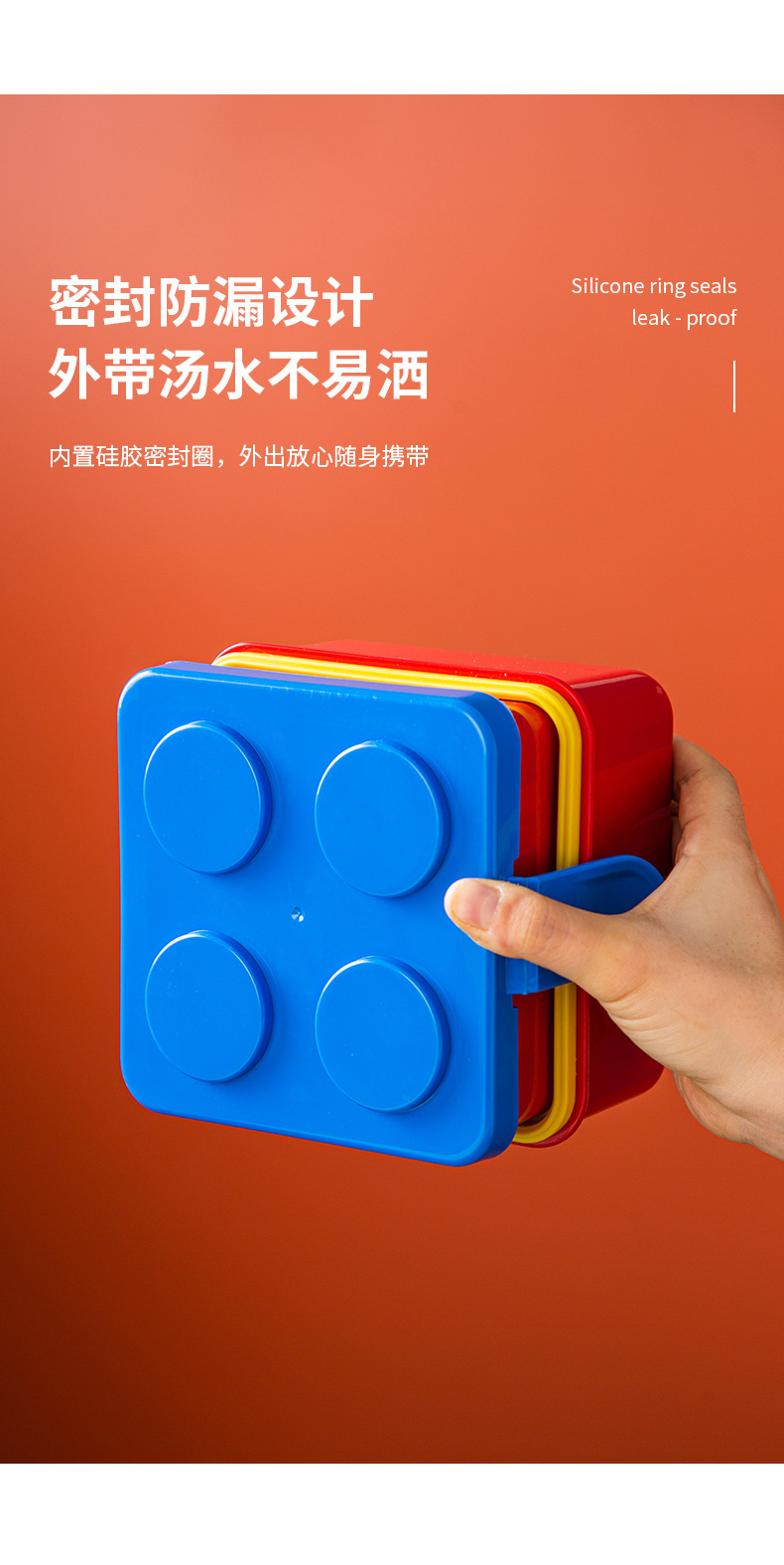创意积木方形双层饭盒户外野餐水果沙拉盒可微波学生午餐盒便当盒