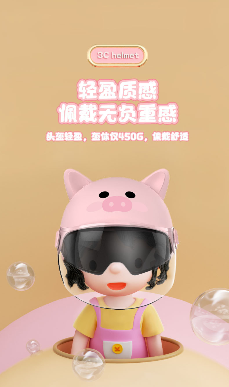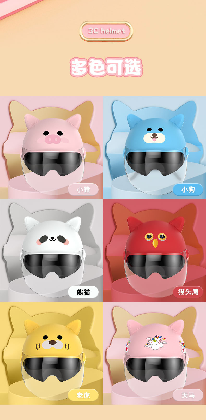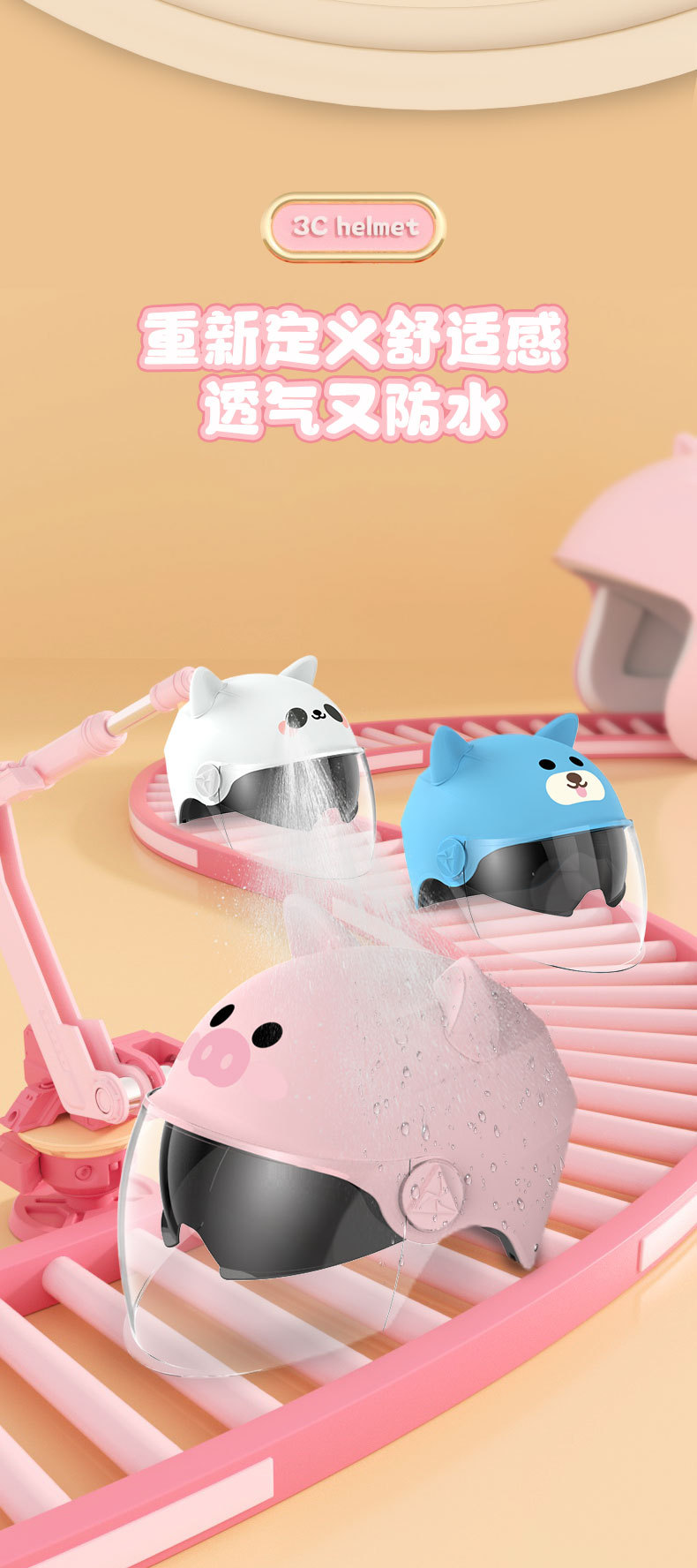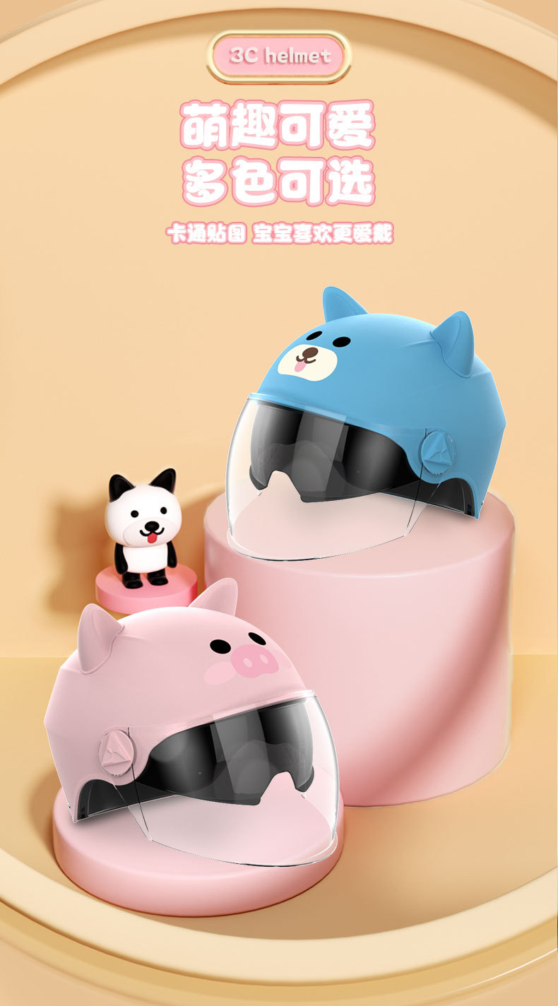 工厂直供3C认证摩托车头盔儿童卡通小孩可爱夏季防晒电动车安全盔