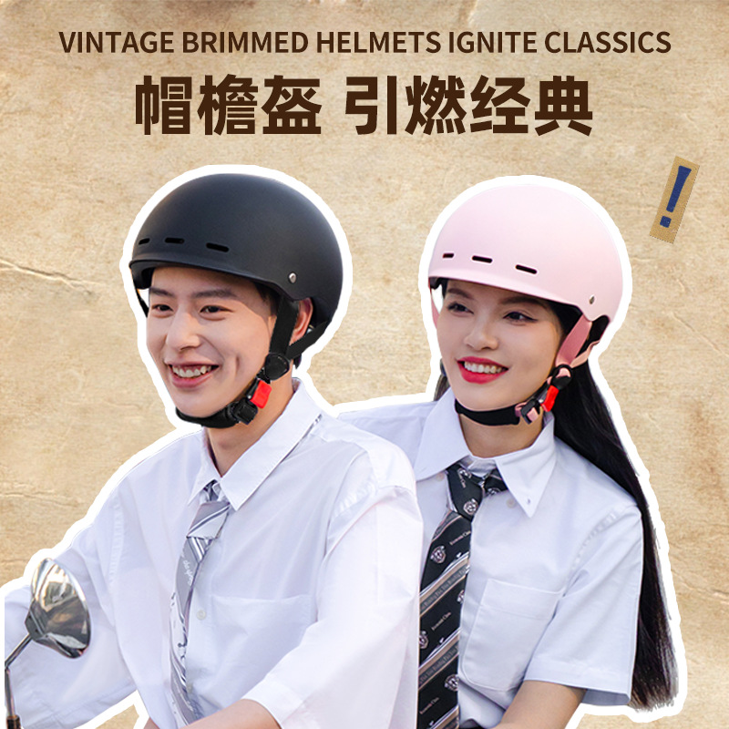 3C认证电动车头盔男女士夏季骑行半盔四季通用电瓶车帽檐款安全盔