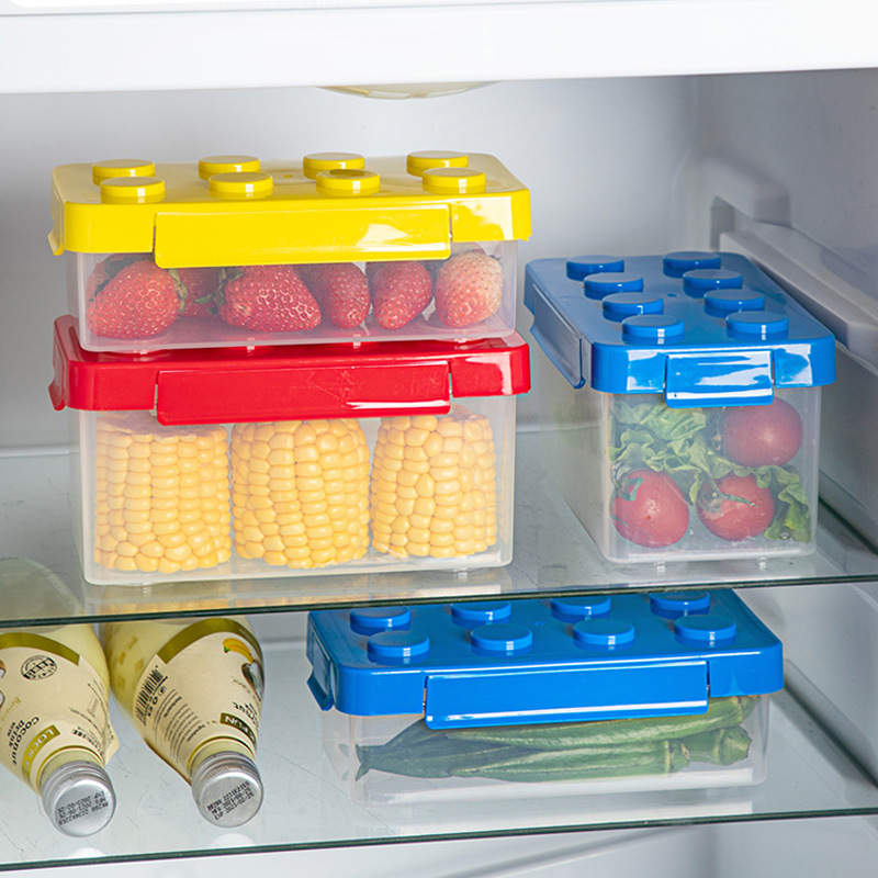 实用积木玩具可叠加收纳盒小物品储物盒冰箱收纳盒水果盒沙拉盒