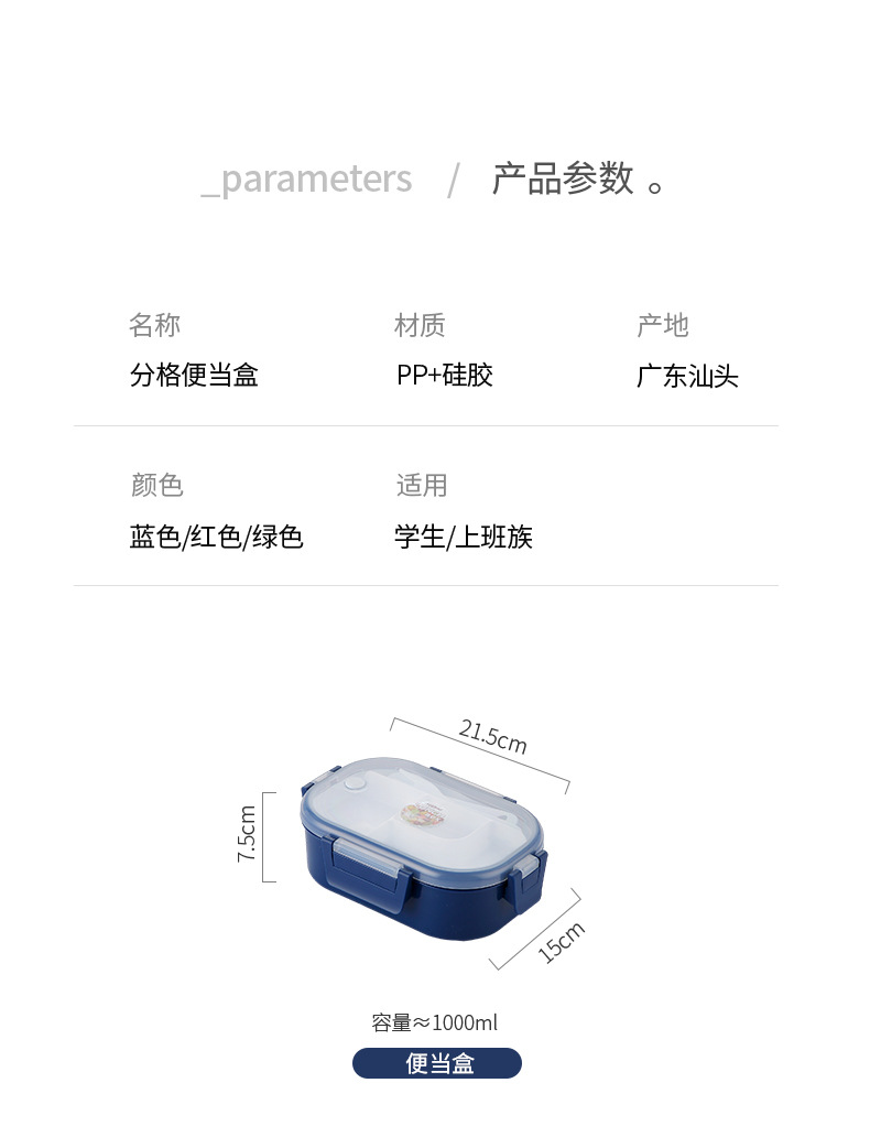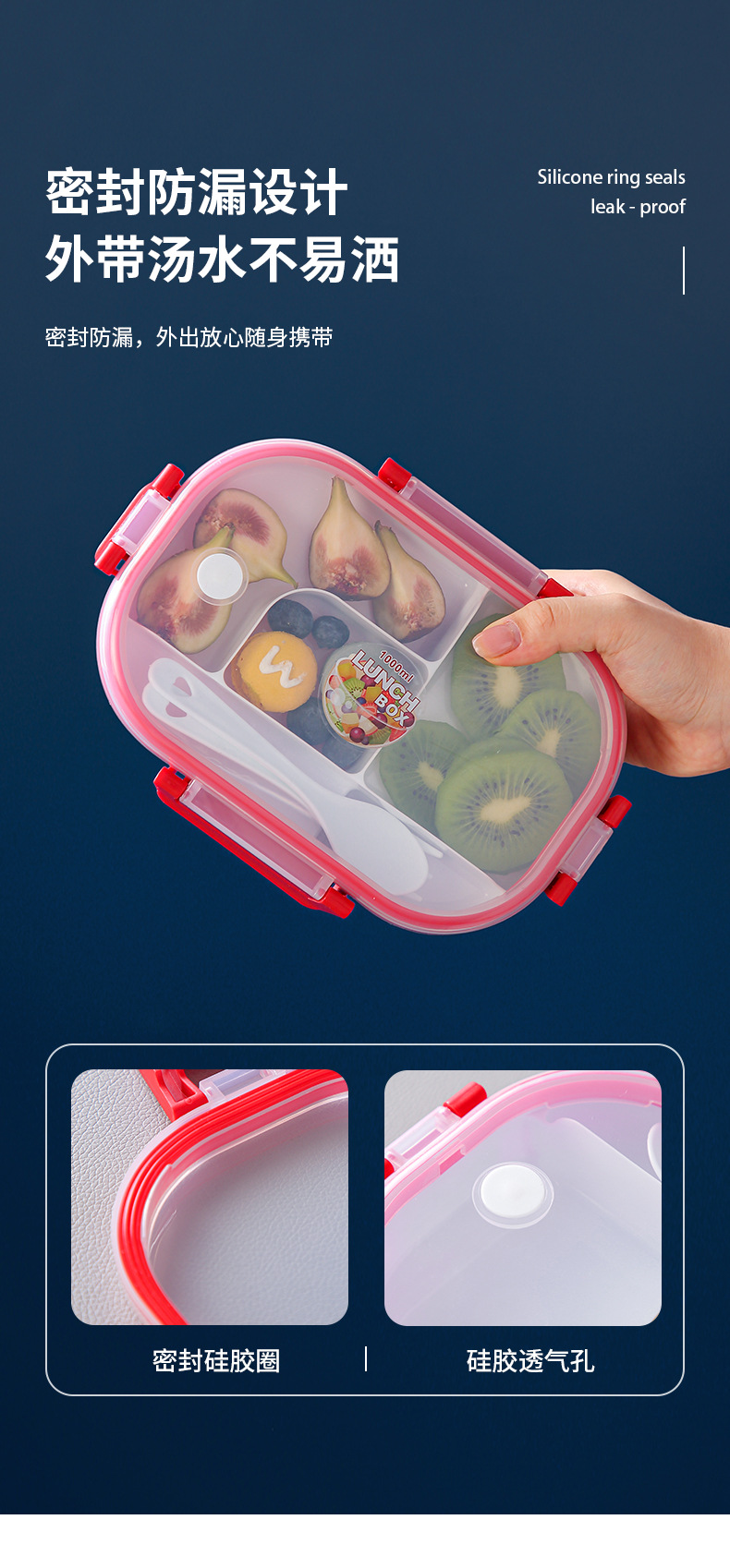 大容量分隔塑料密封饭盒餐盒学生上班族方形午餐盒微波炉可用