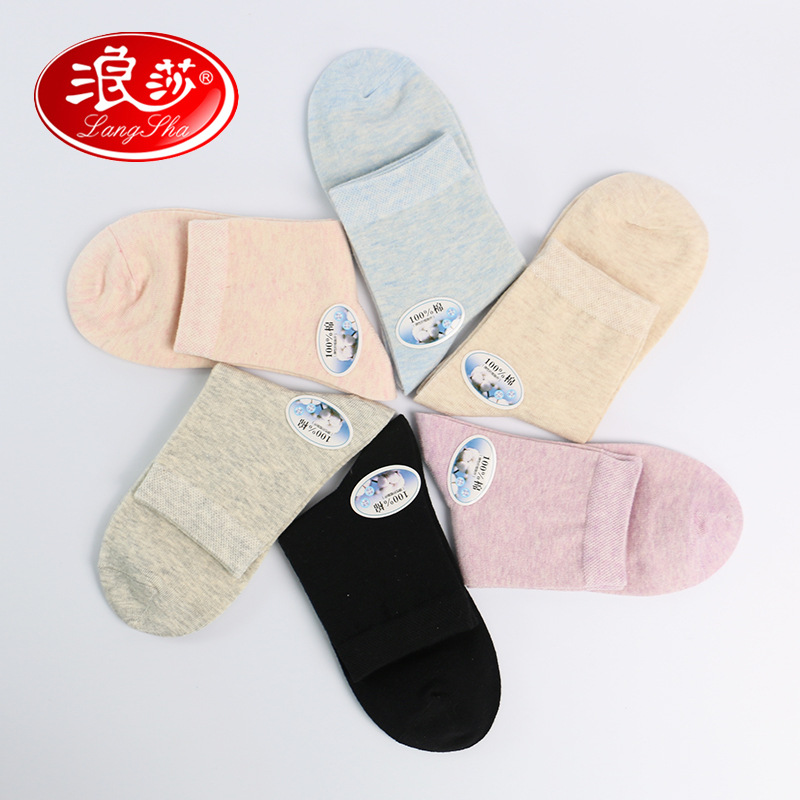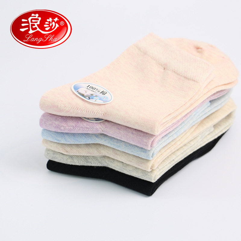 浪莎袜子女纯棉中筒袜春秋吸湿排汗纯色女士防臭透气四季薄款棉袜