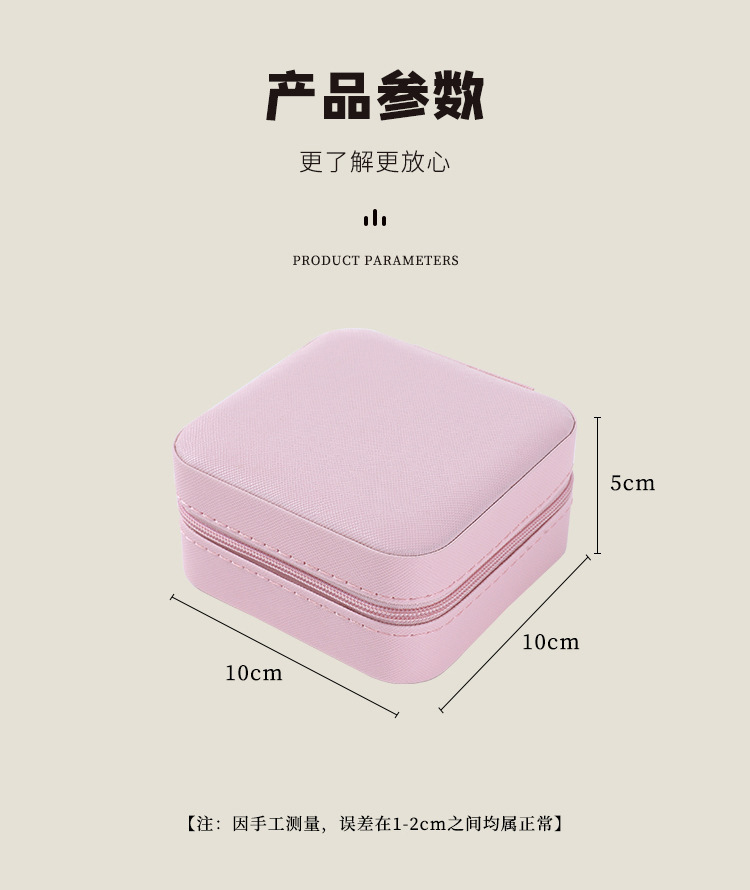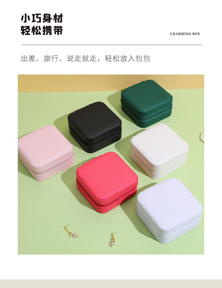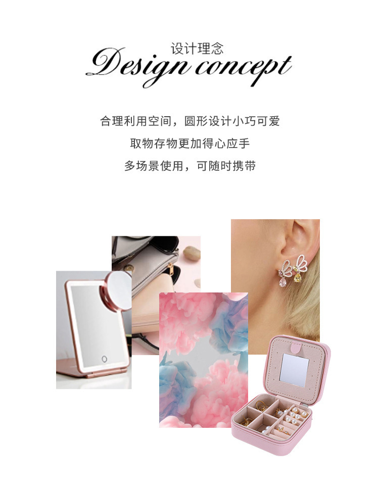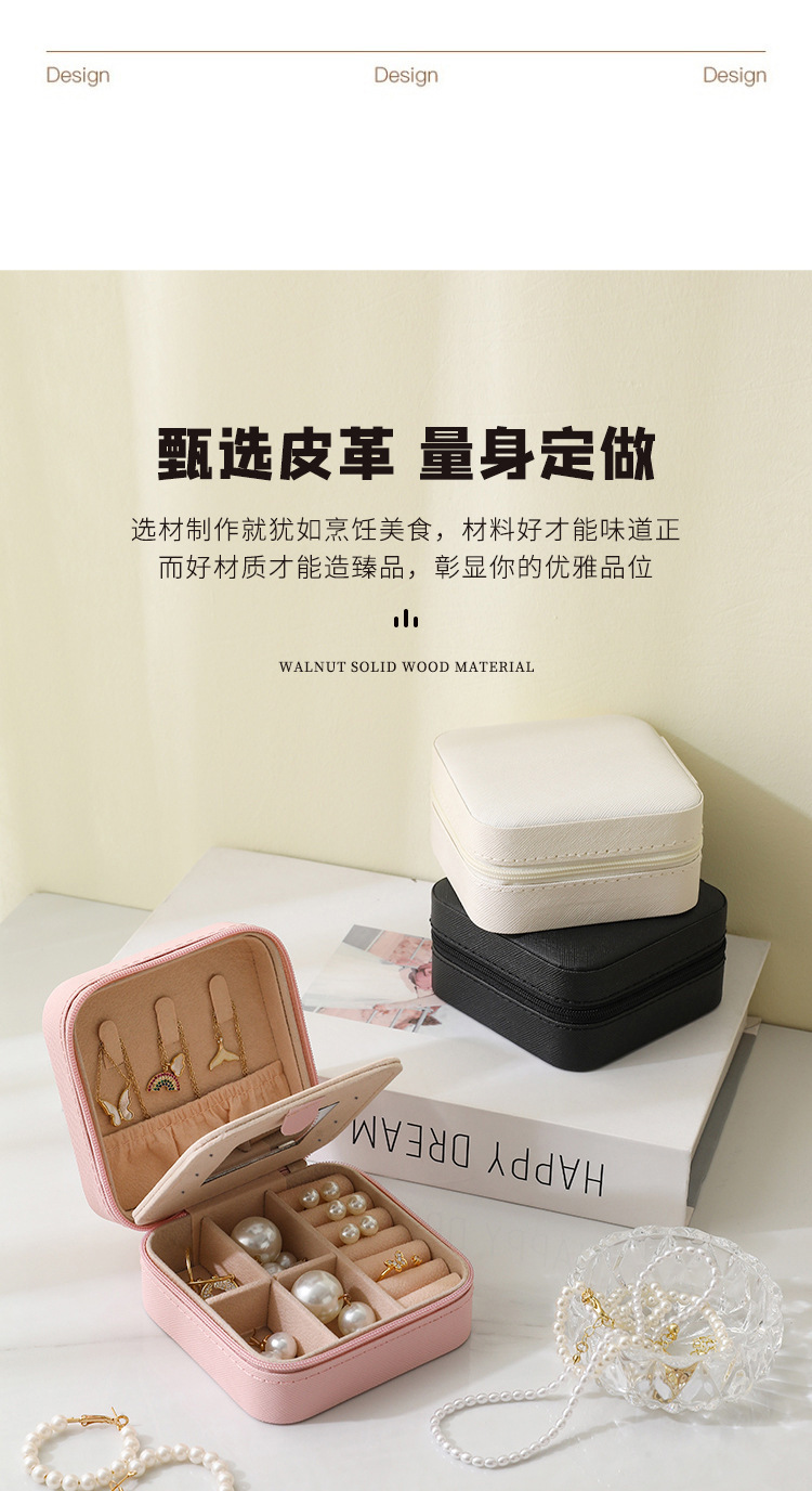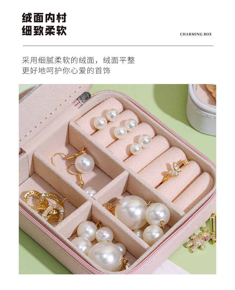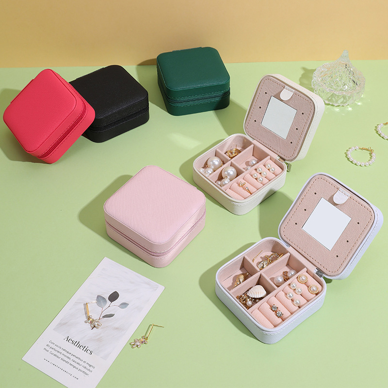 简约高档十字纹镜子收纳耳钉项链分格收纳盒子便携式珠宝首饰盒